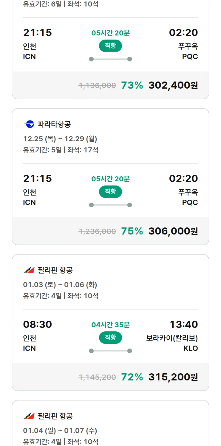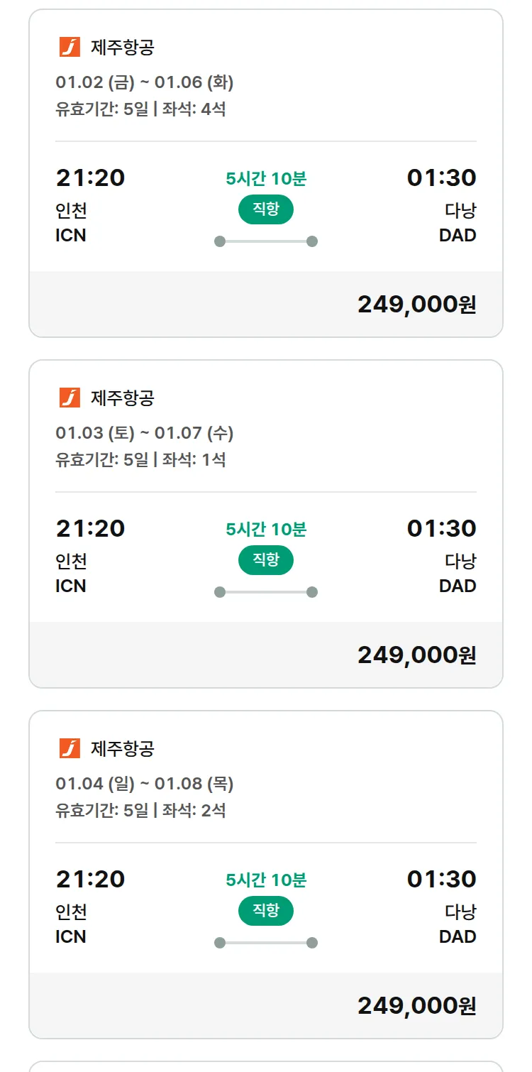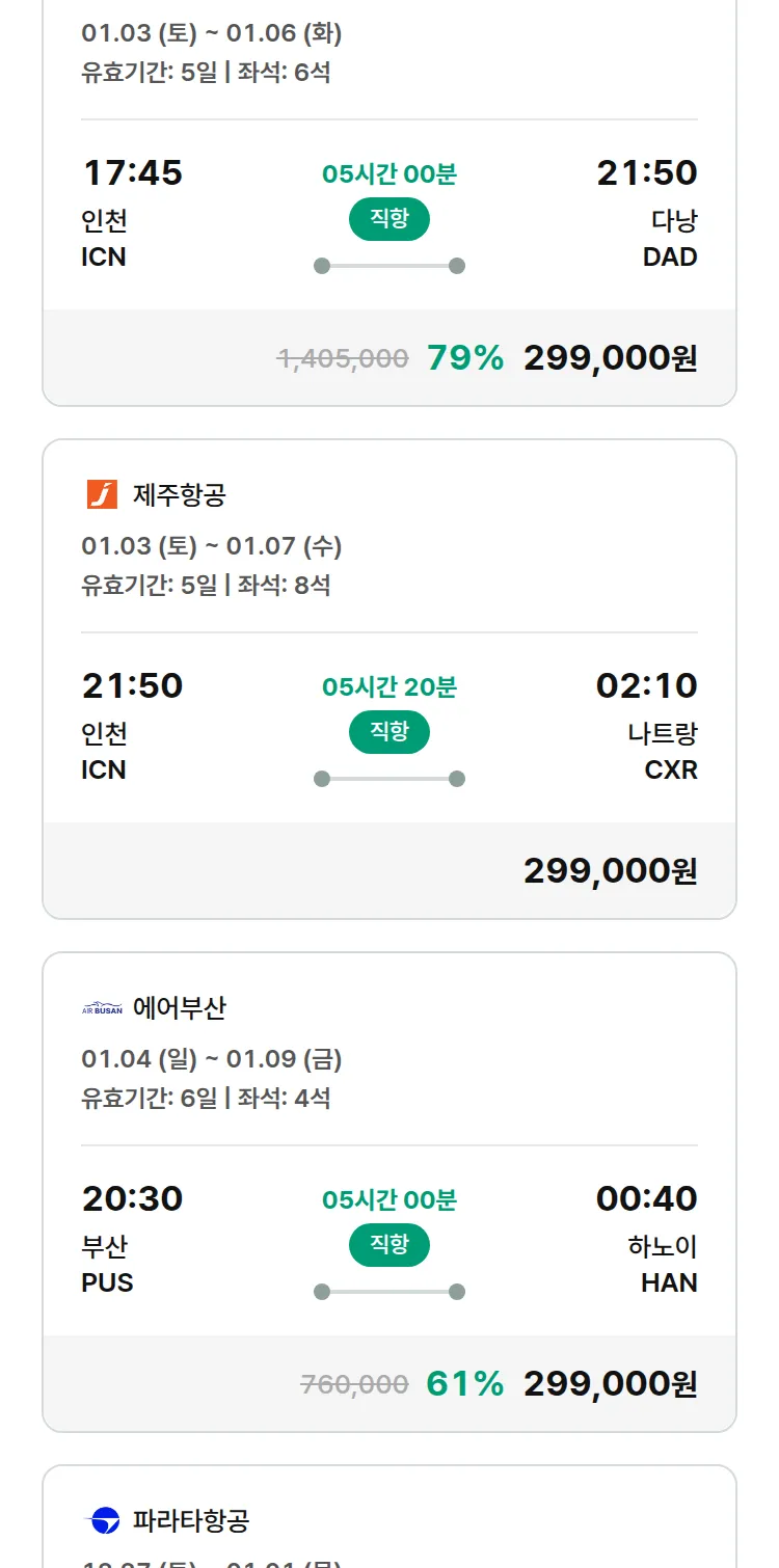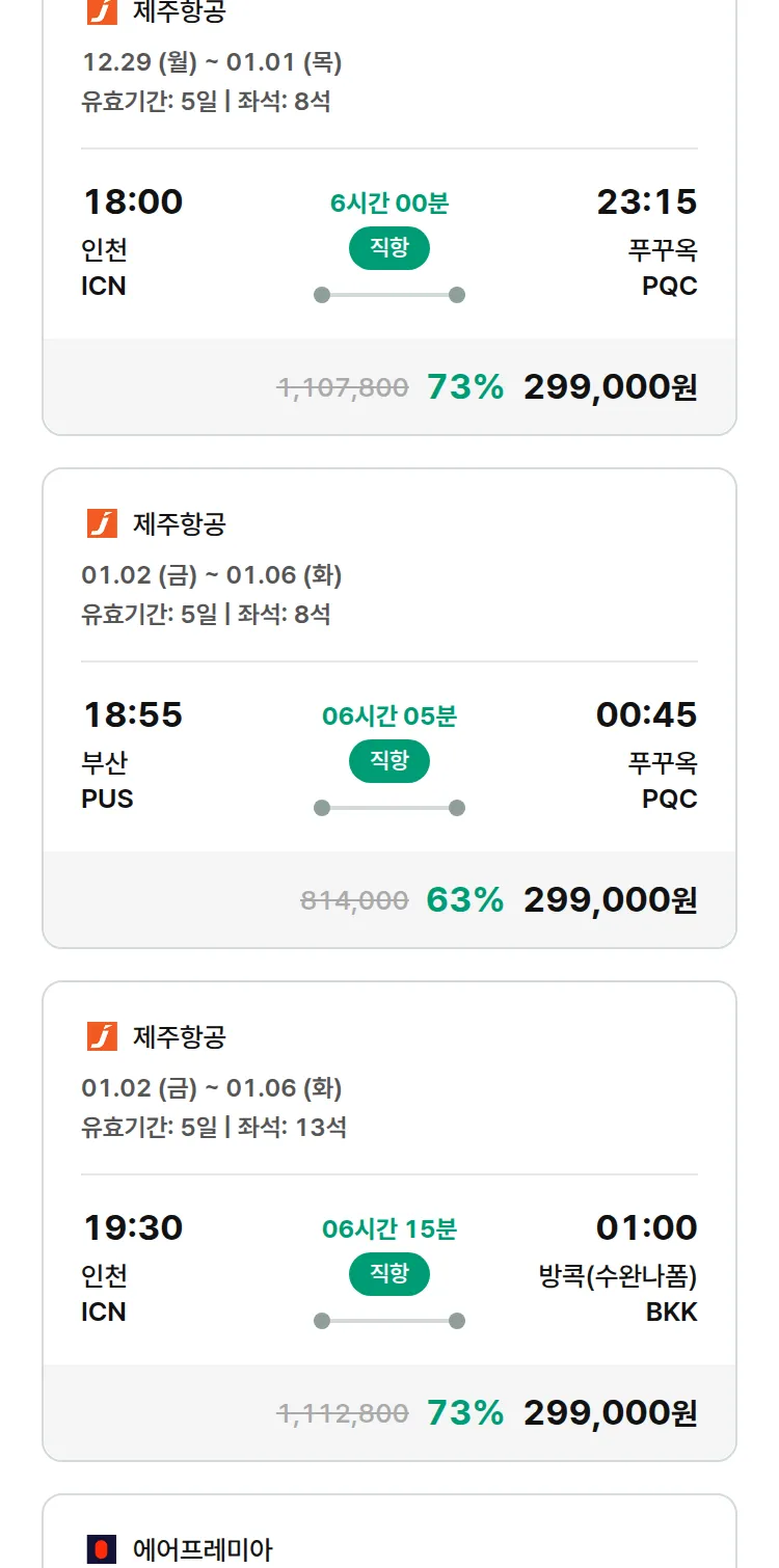 (12월 21일(일)) 땡처리 특가 항공권