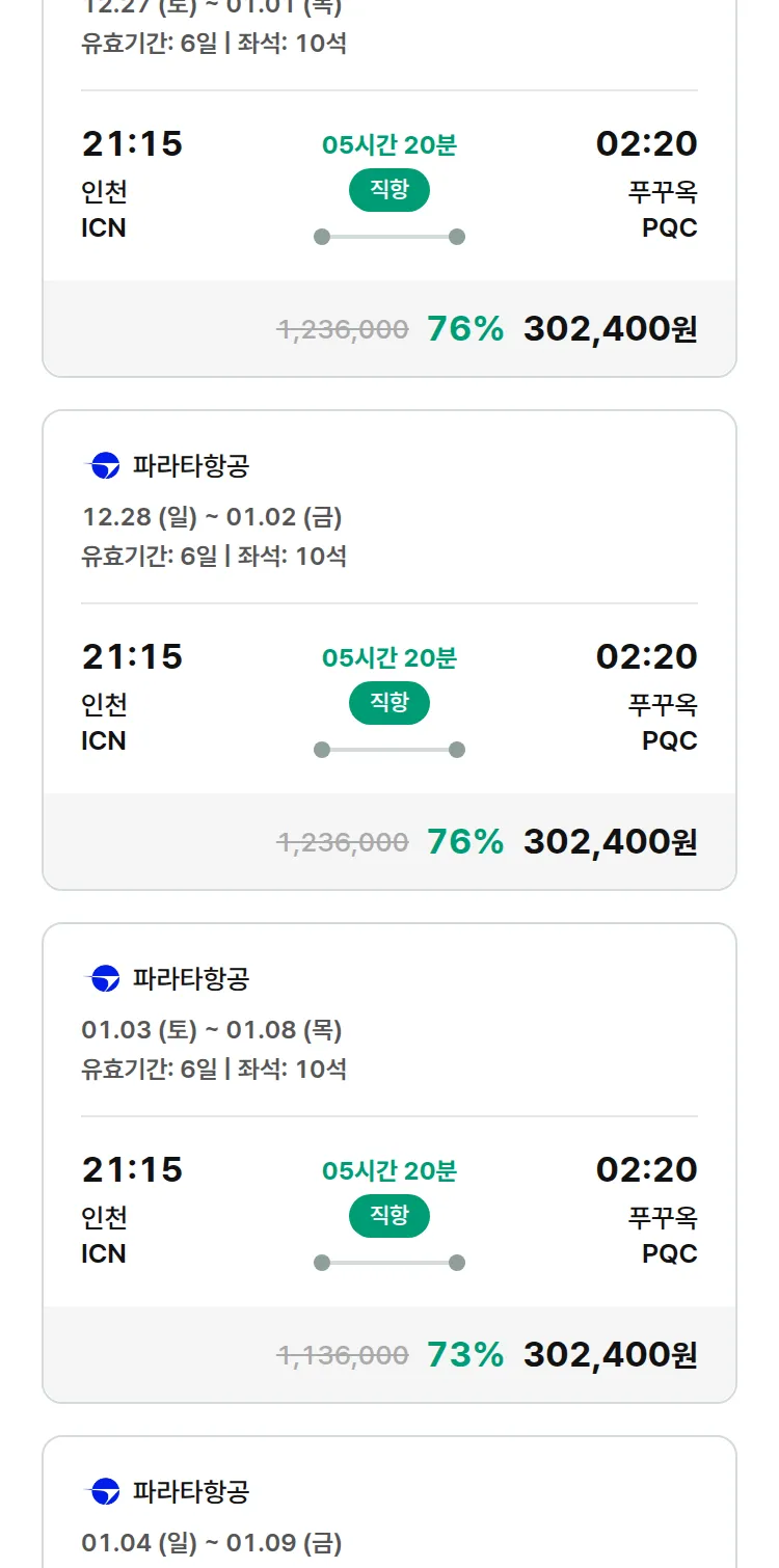 (12월 21일(일)) 땡처리 99.9% 확정 패키지