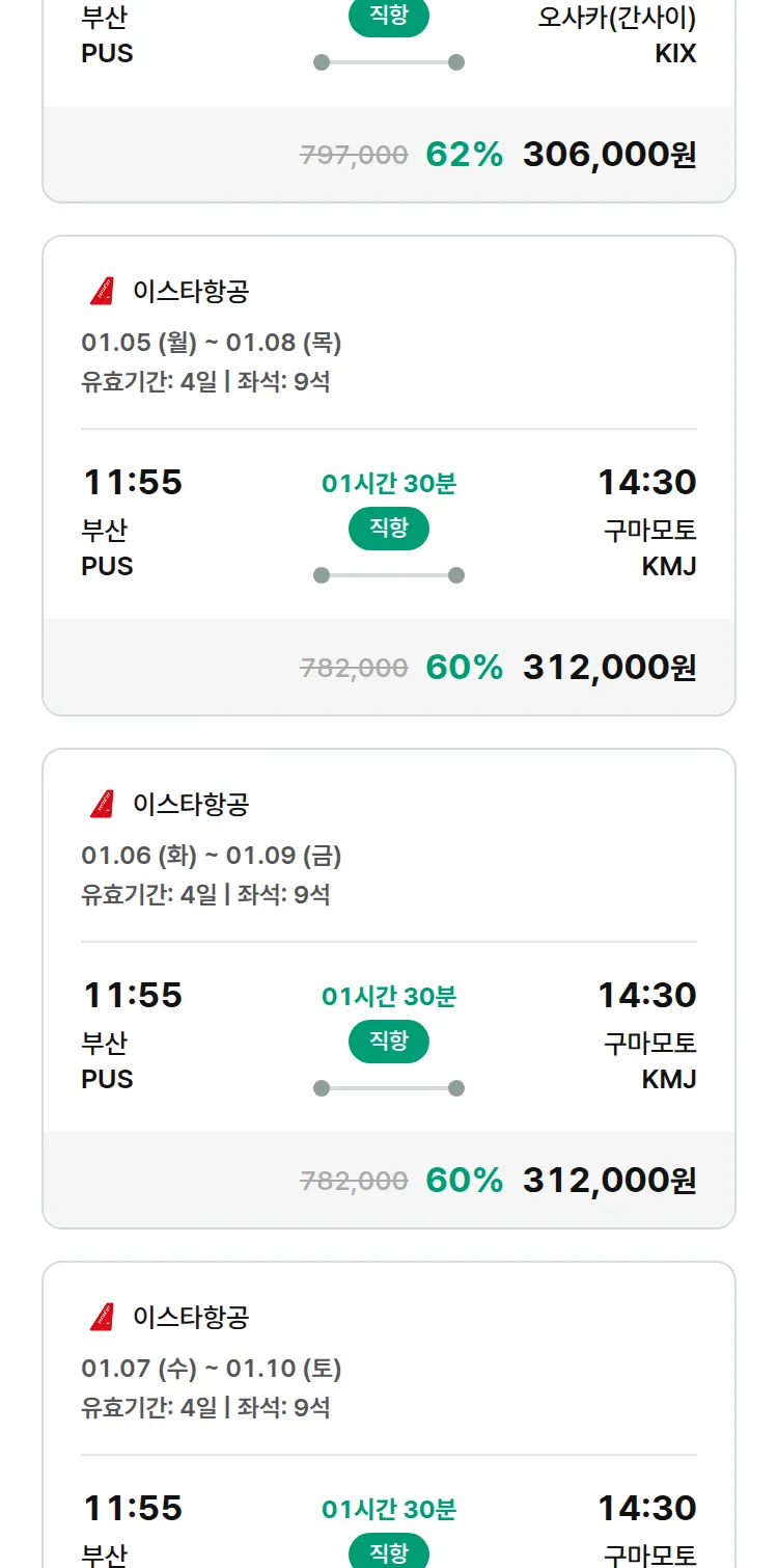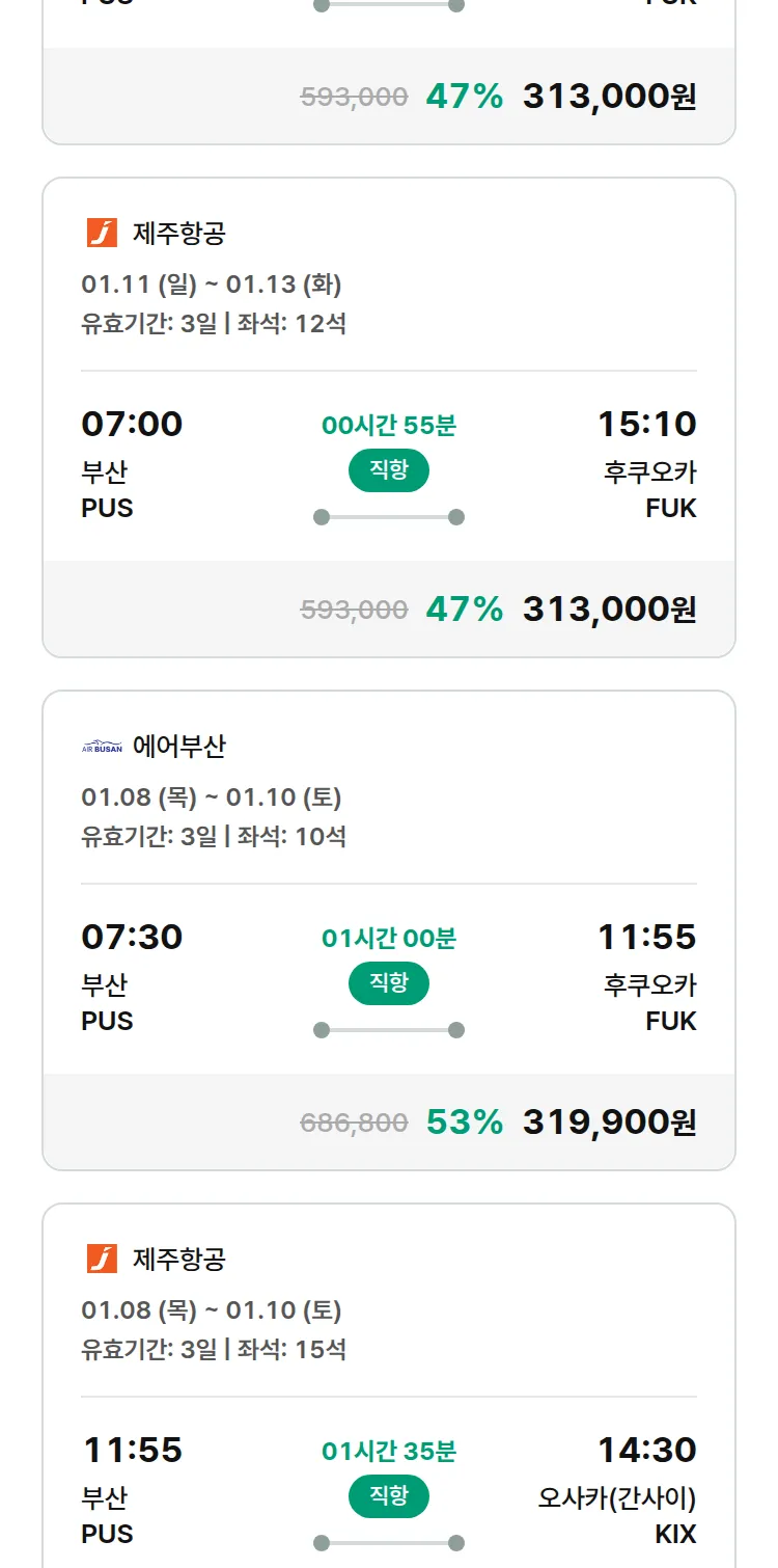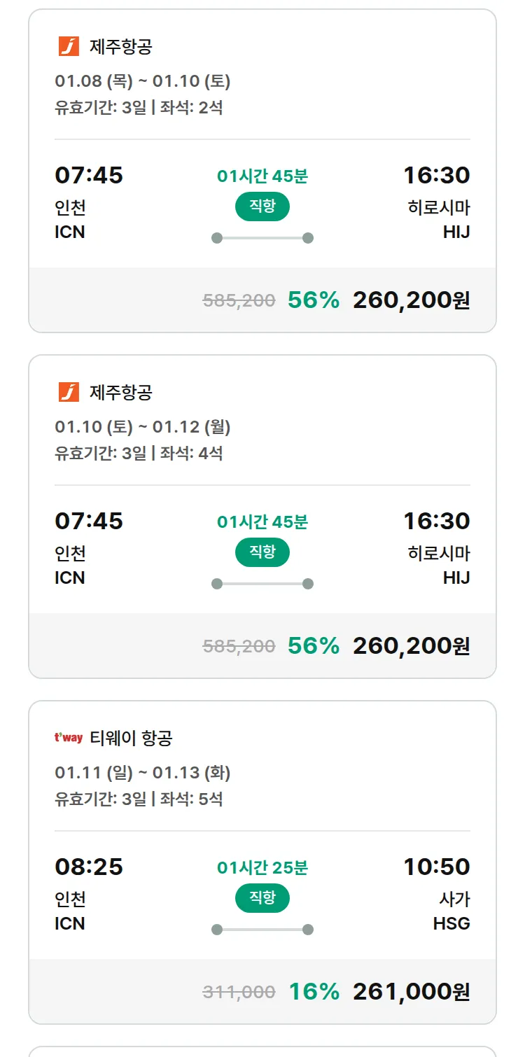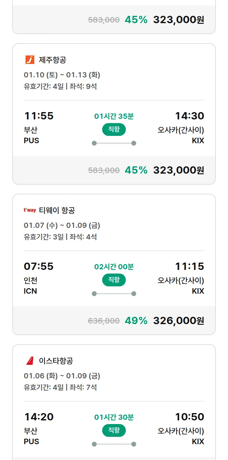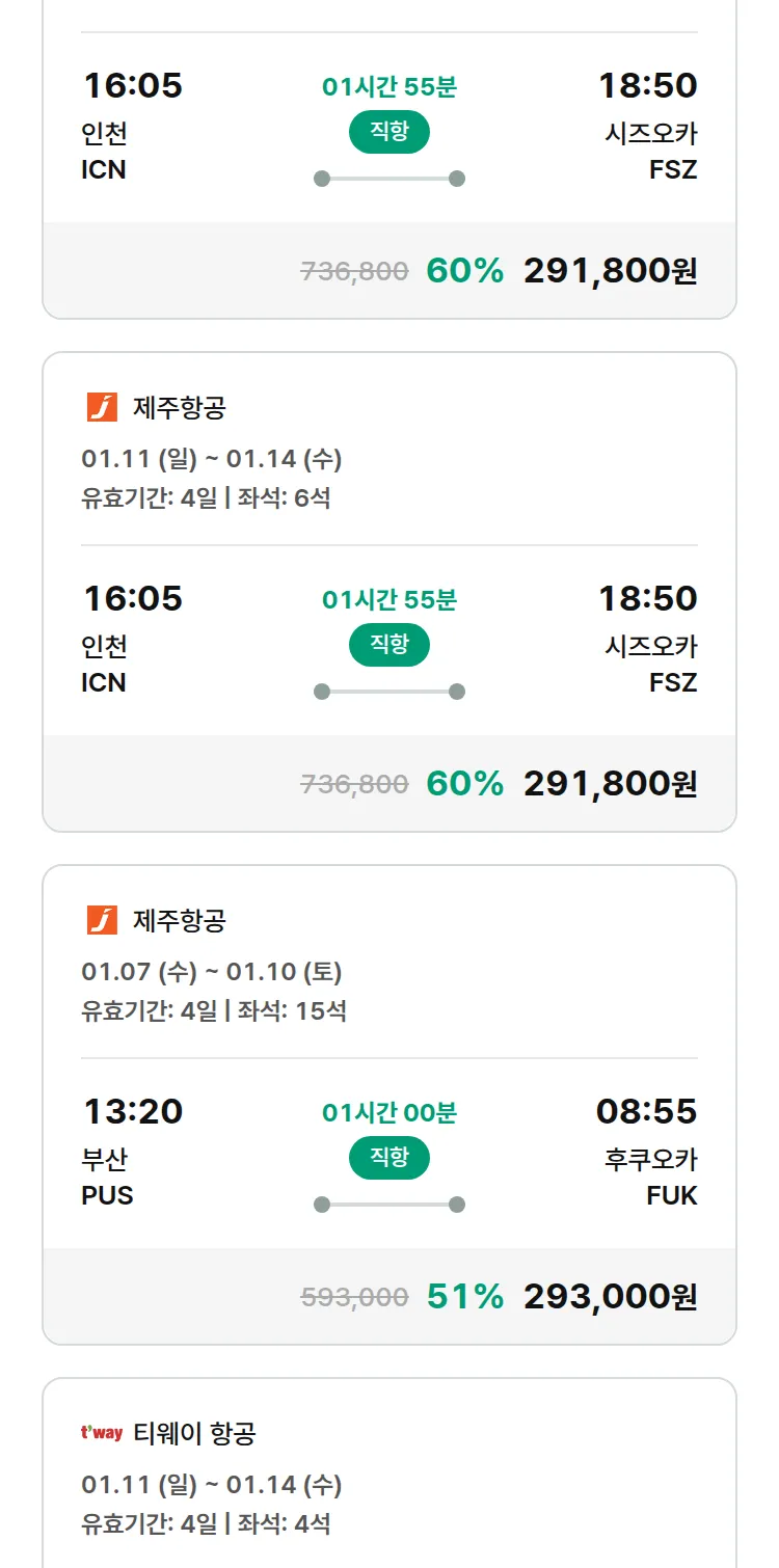 (12월 22일(월)) 모두투어 일본 특가 항공권