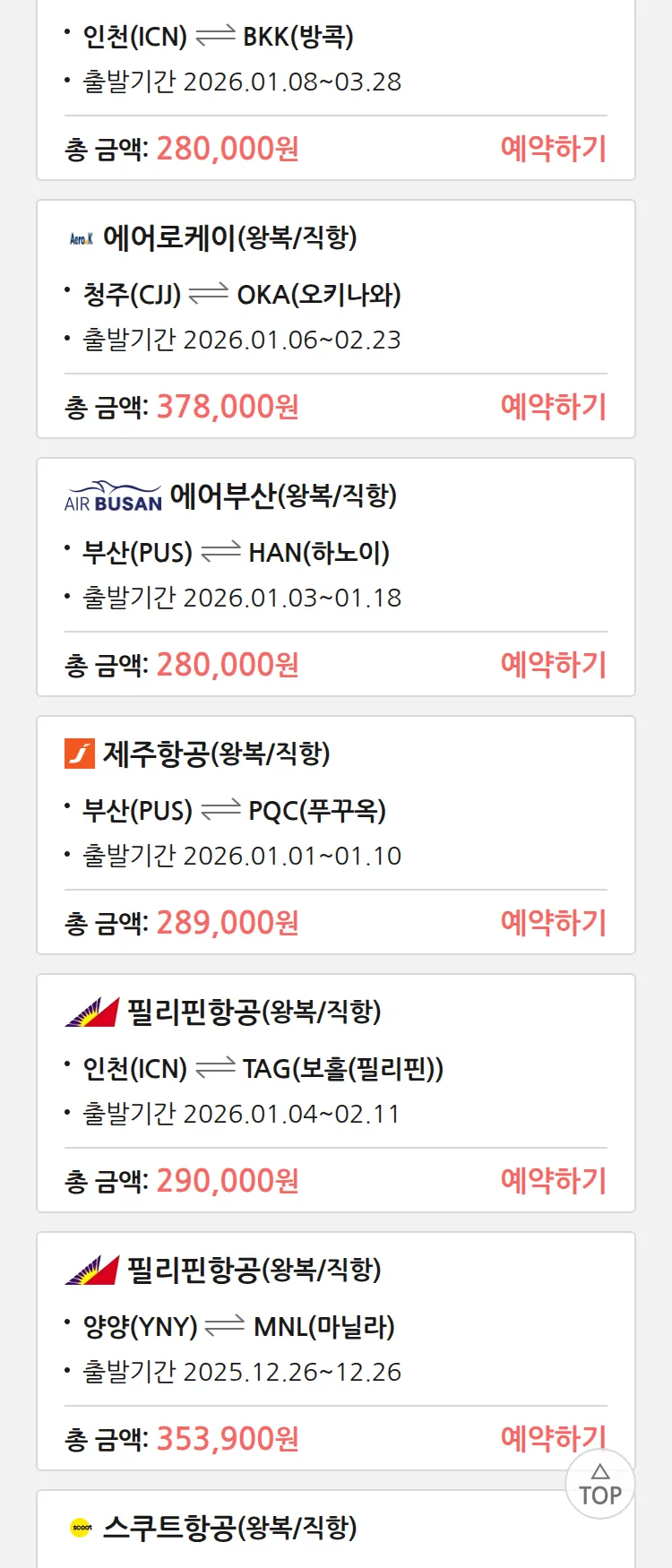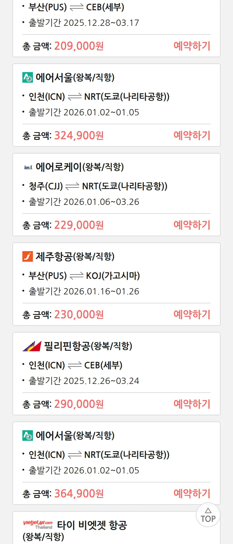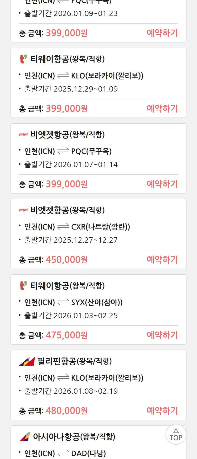 (12월 22일(월)) 땡처리 특가 항공권