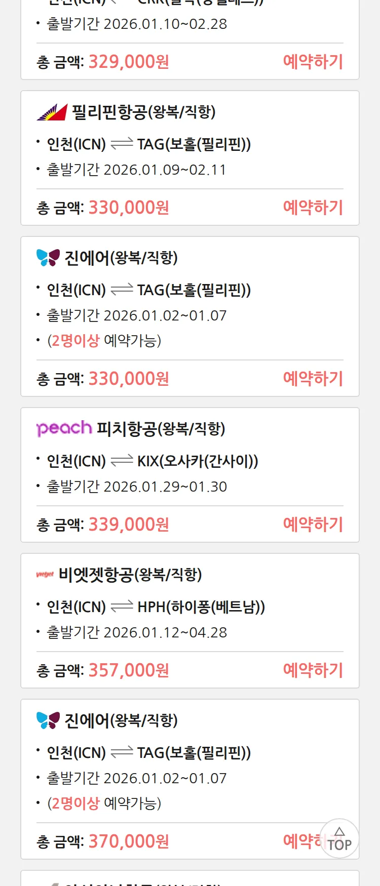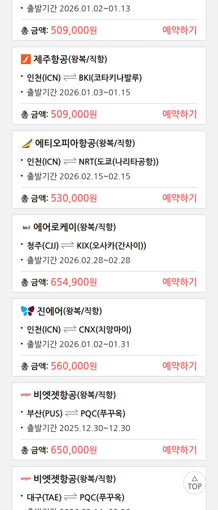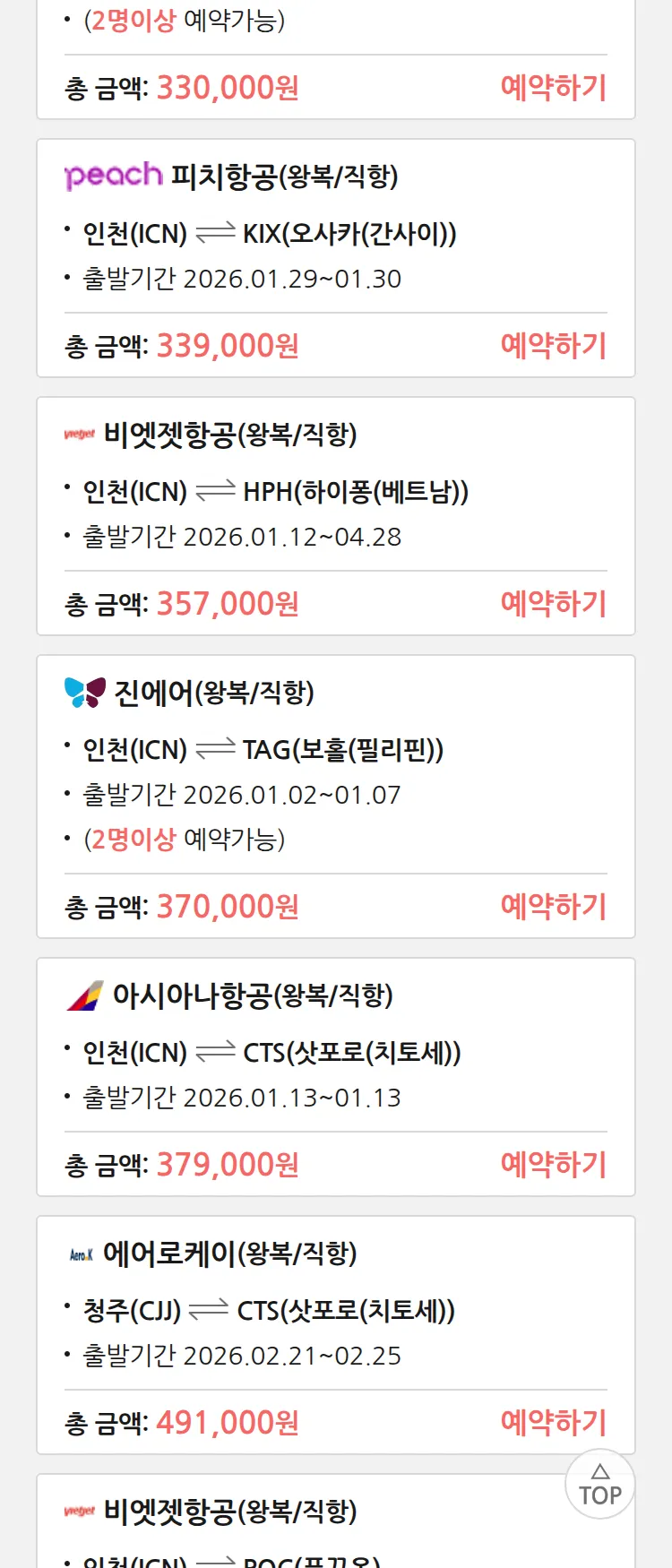 (12월 22일(월)) 땡처리 특가 항공권