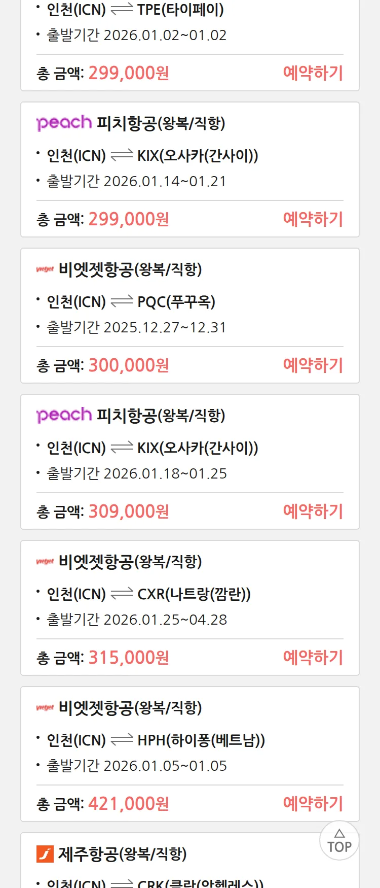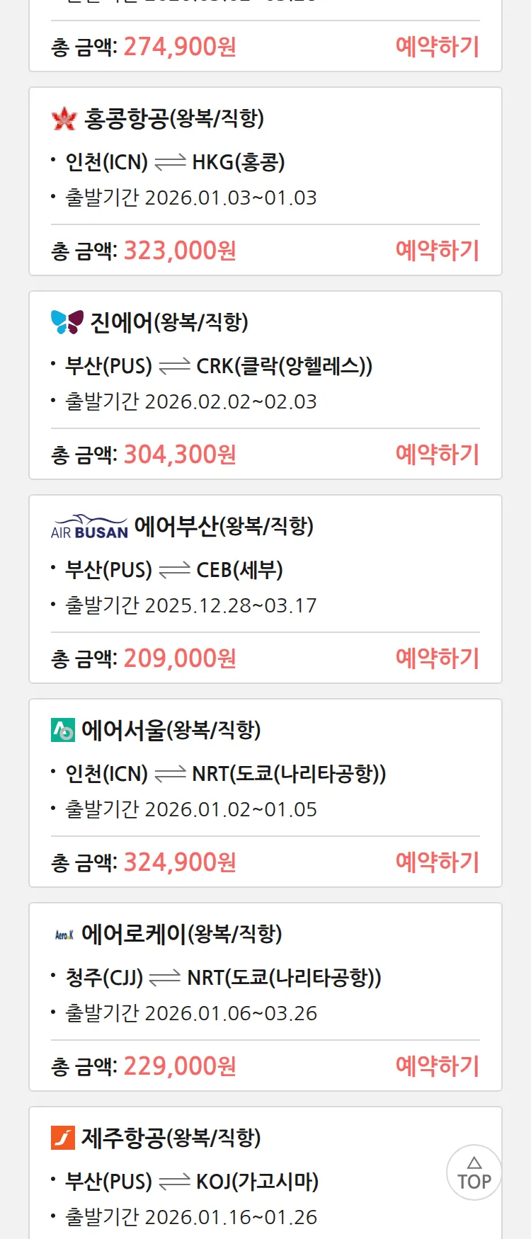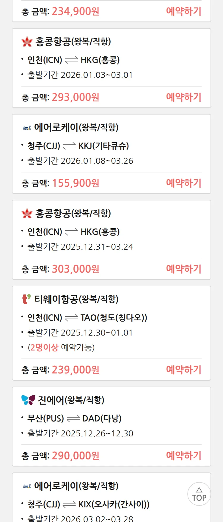 (12월 21일(일)) 땡처리 특가 항공권