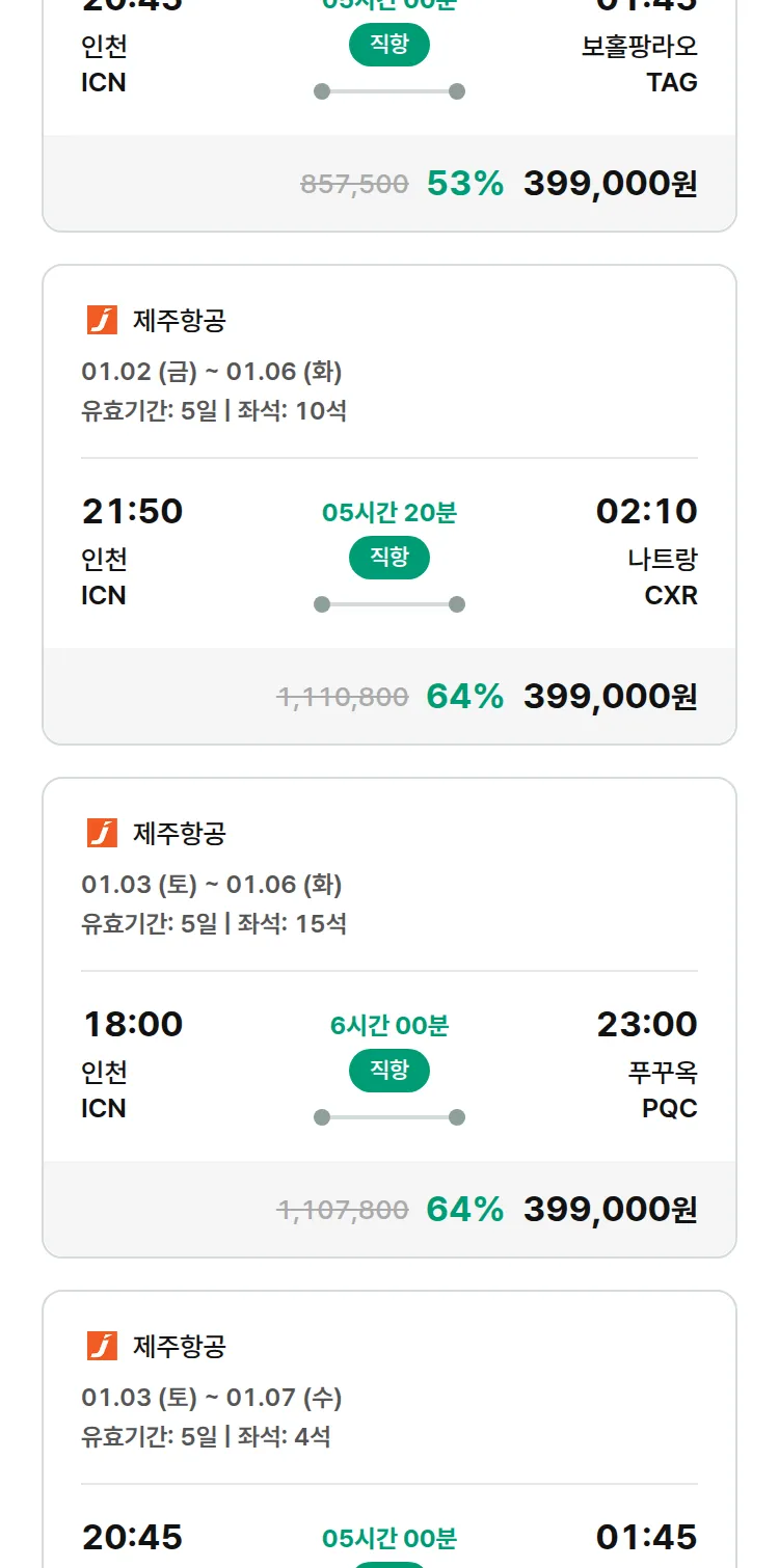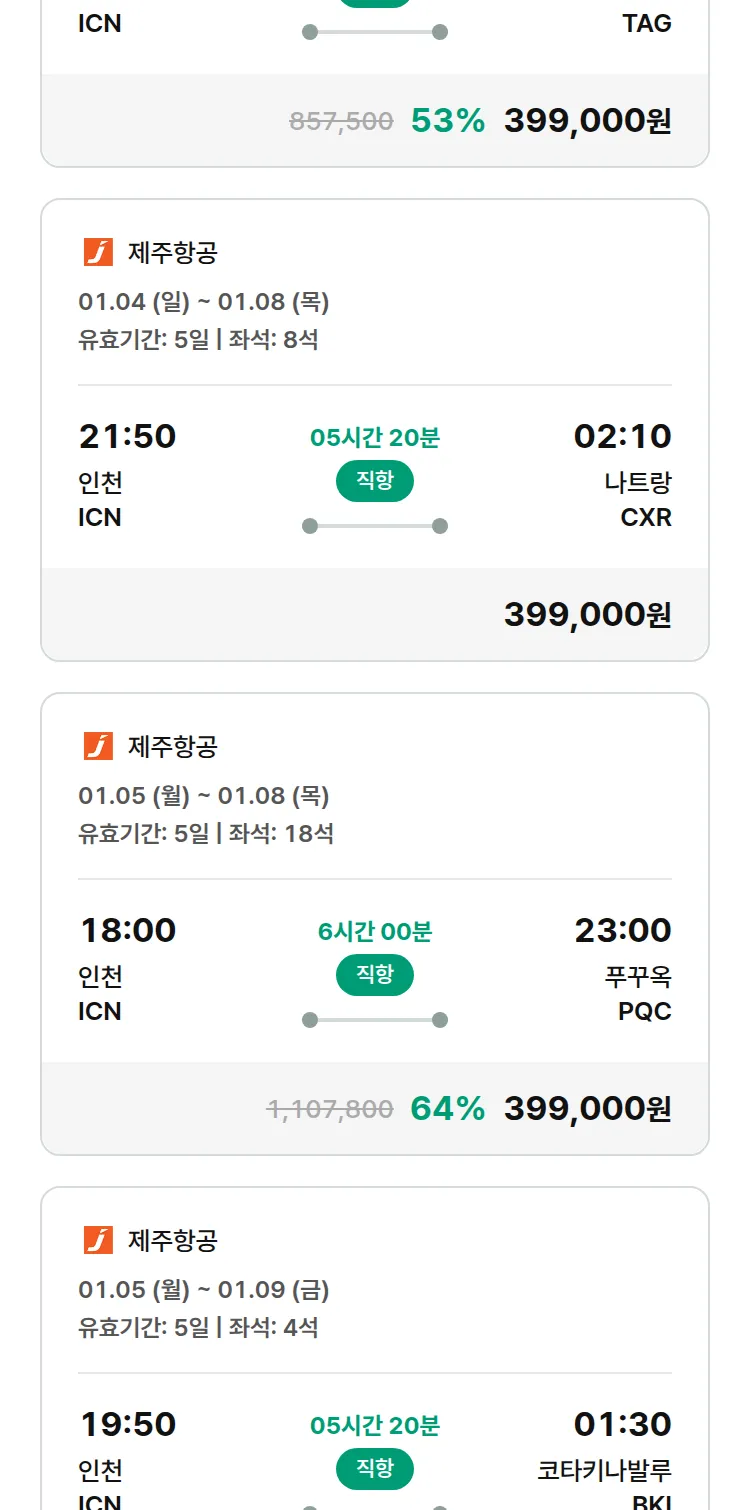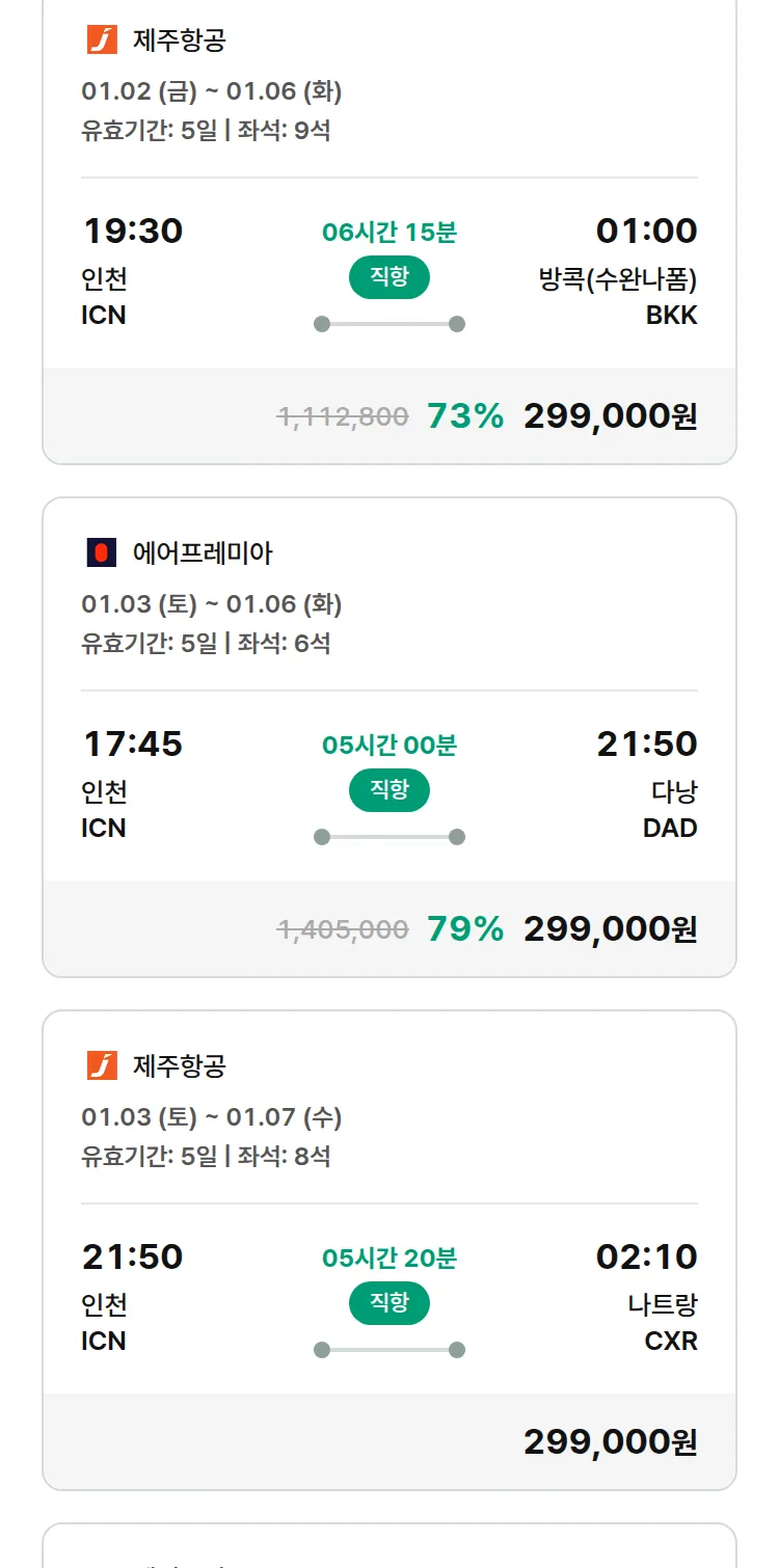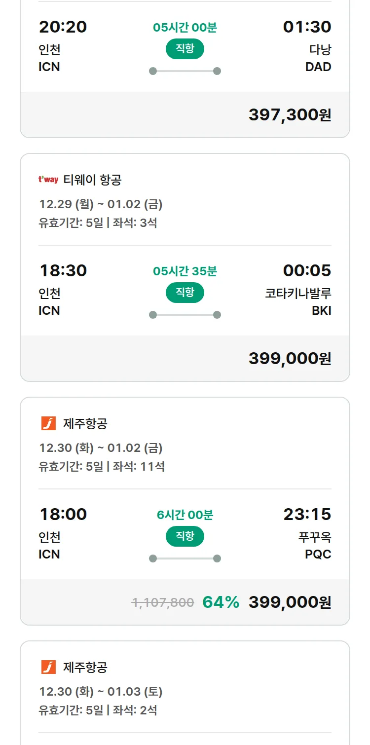 (12월 22일(월)) 땡처리 99.9% 확정 패키지