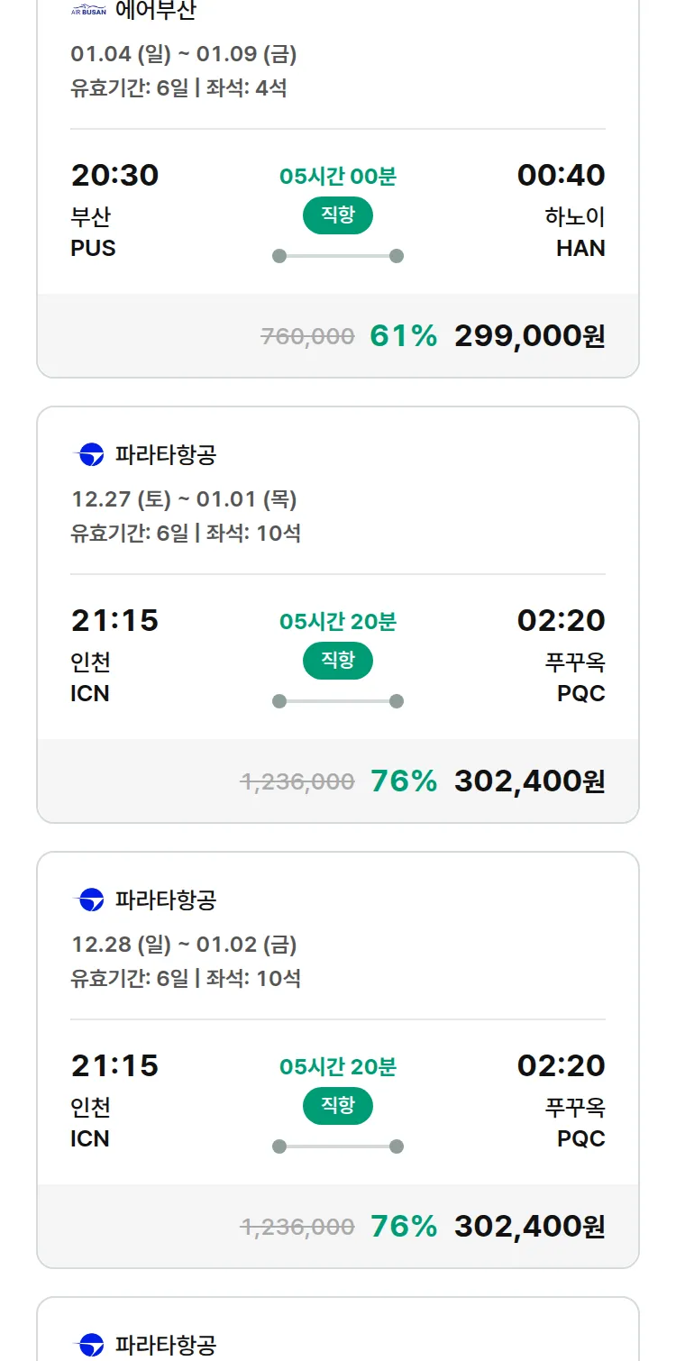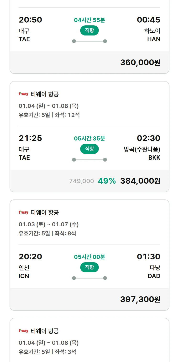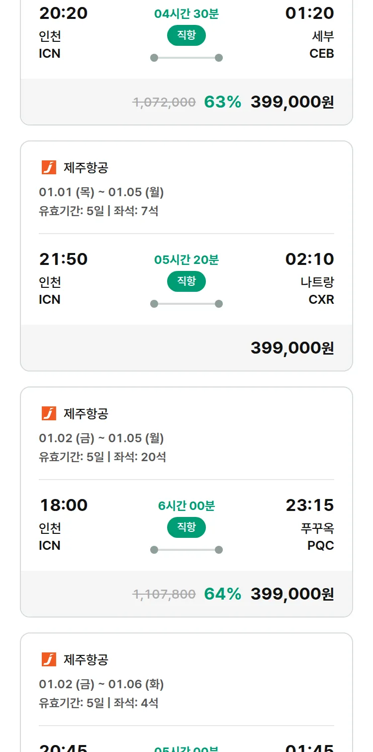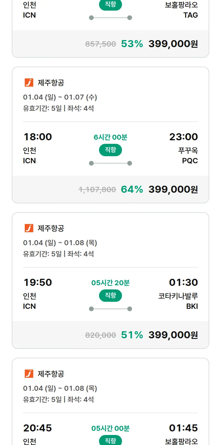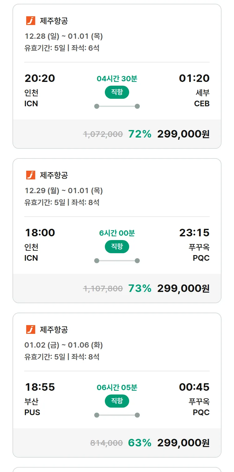 (12월 22일(월)) 땡처리 99.9% 확정 패키지