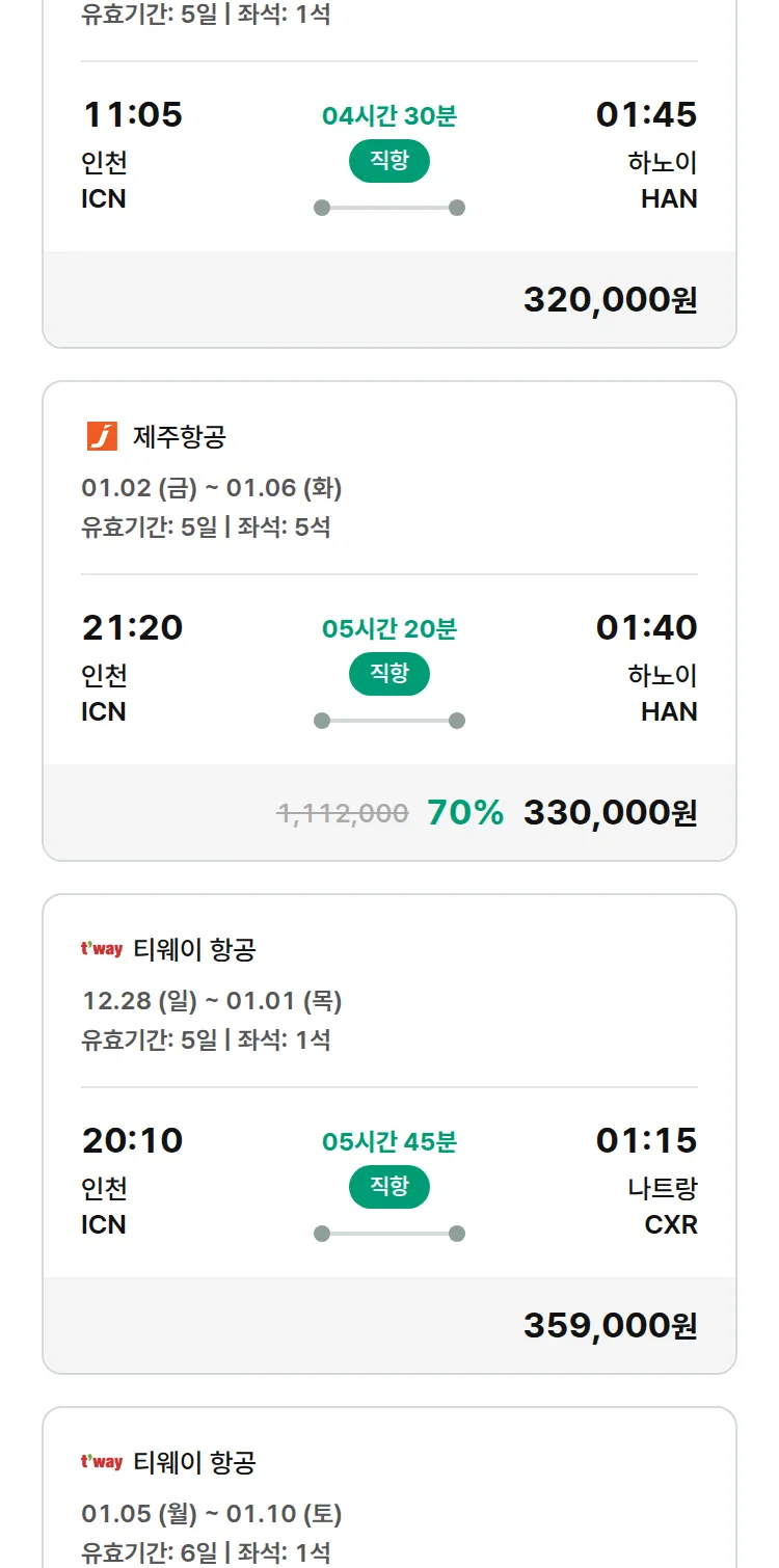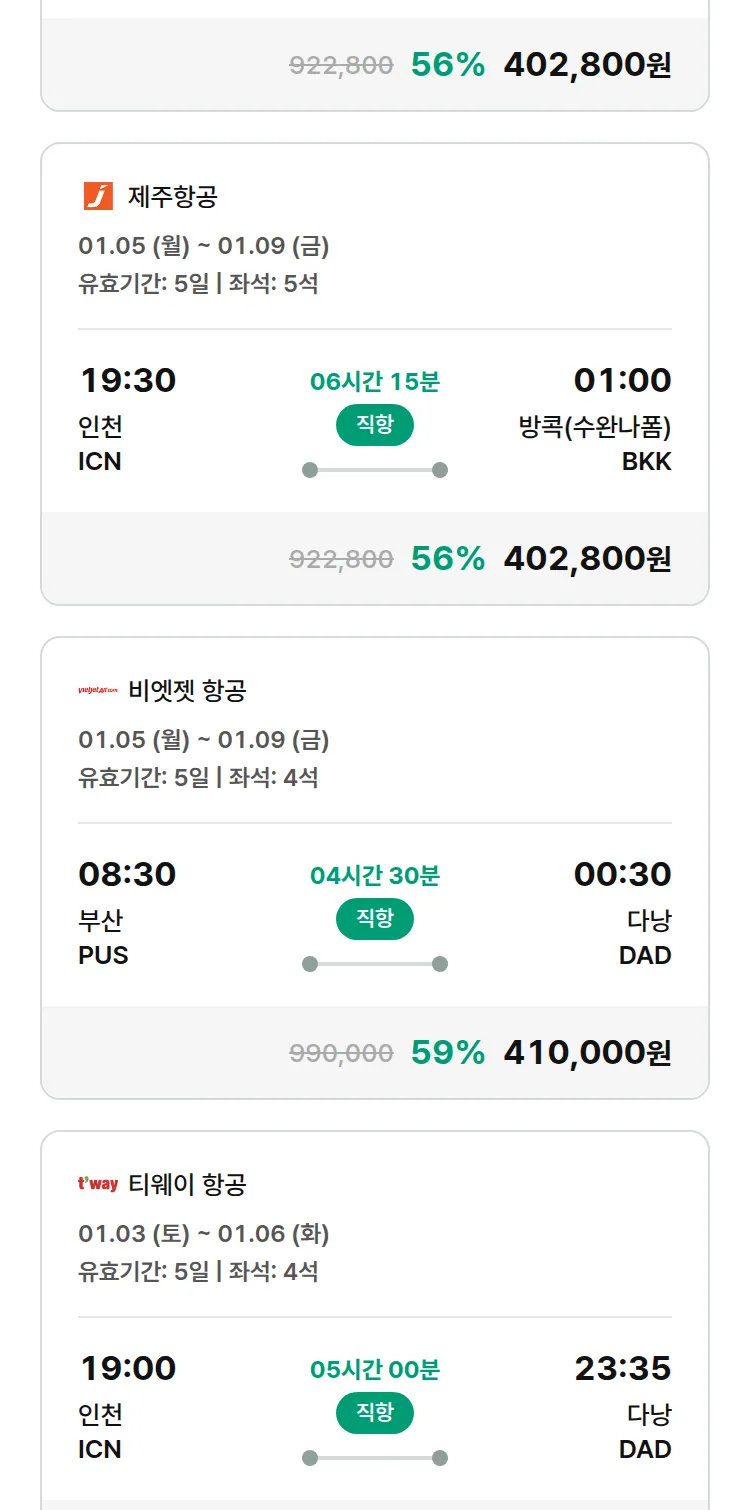 (12월 22일(월)) 모두투어 동남아 특가 항공권