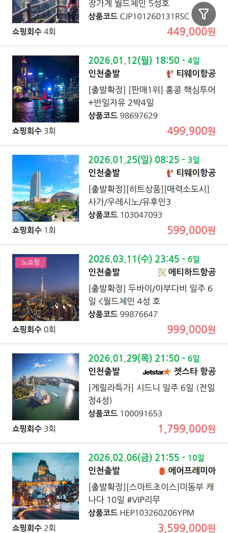(12월 23일(화)) 땡처리 99.9% 확정 패키지