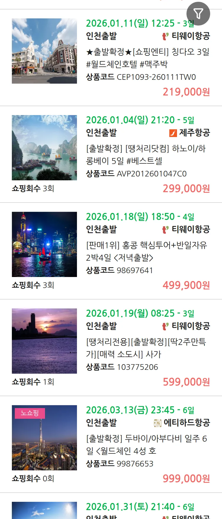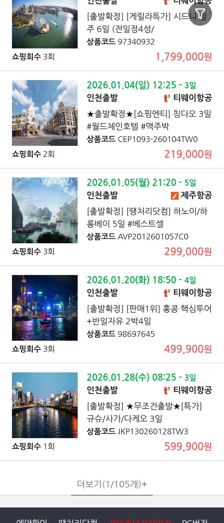 (12월 24일(수)) 땡처리 99.9% 확정 패키지