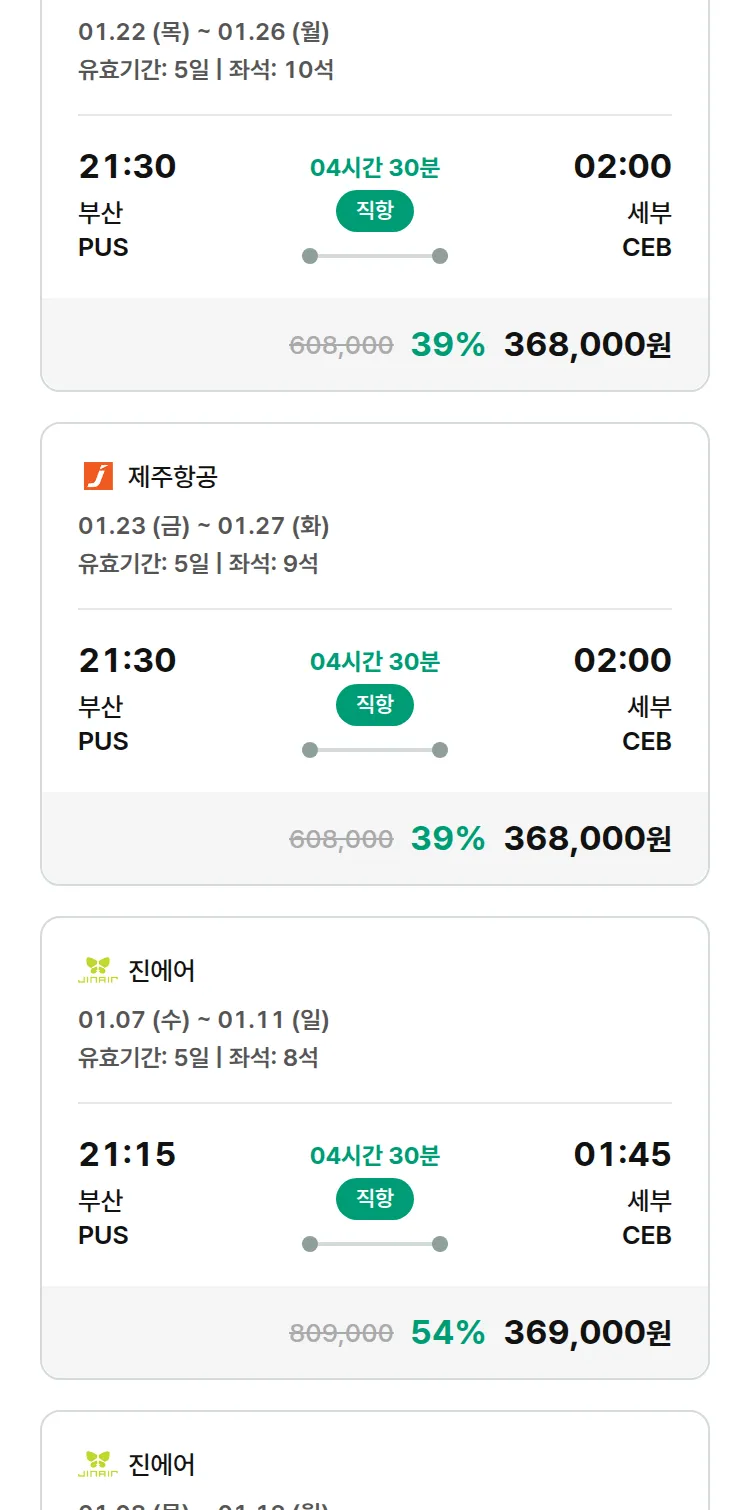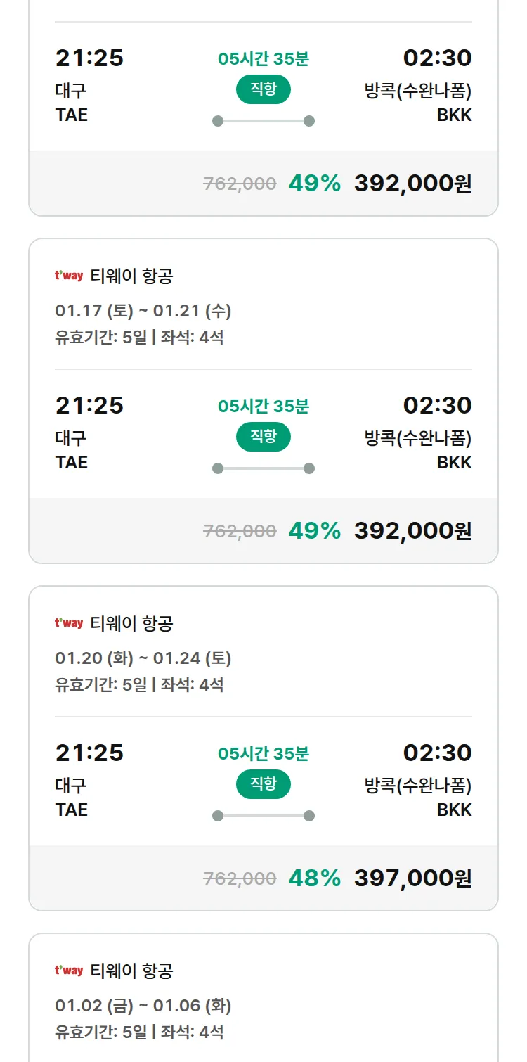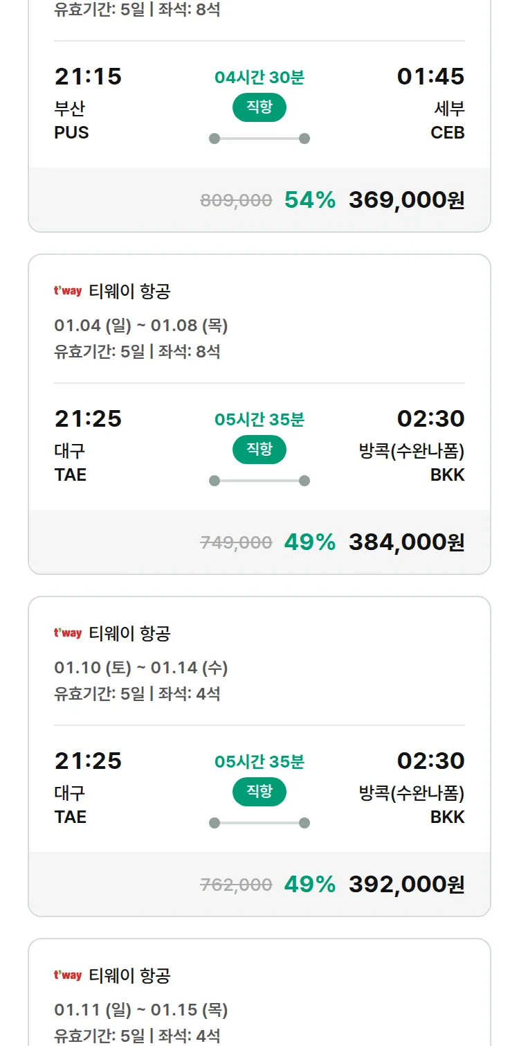 (12월 23일(화)) 땡처리 특가 항공권