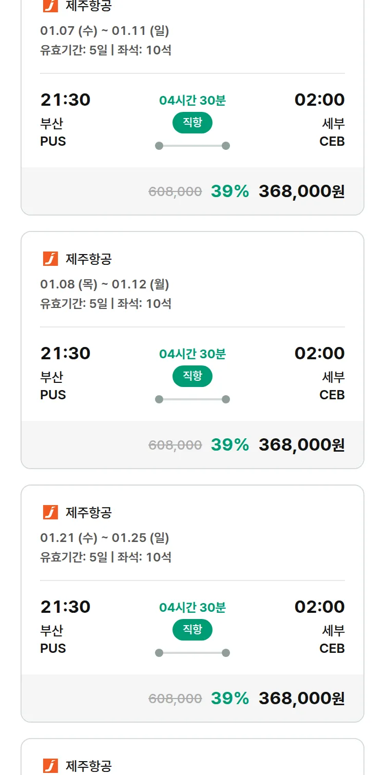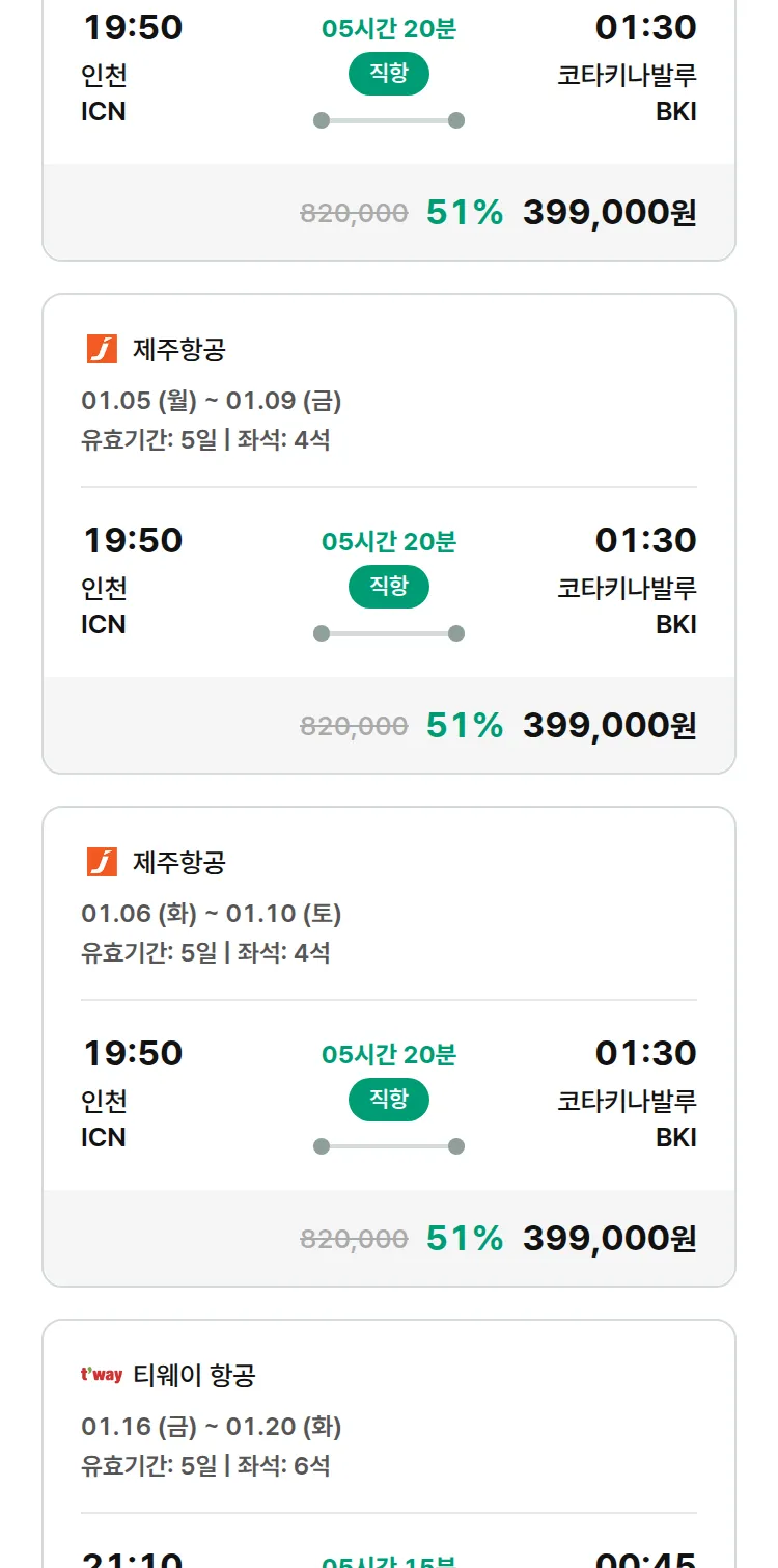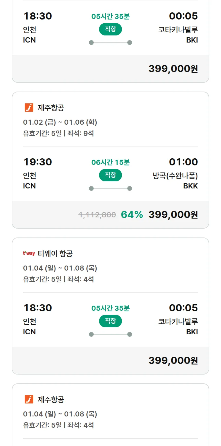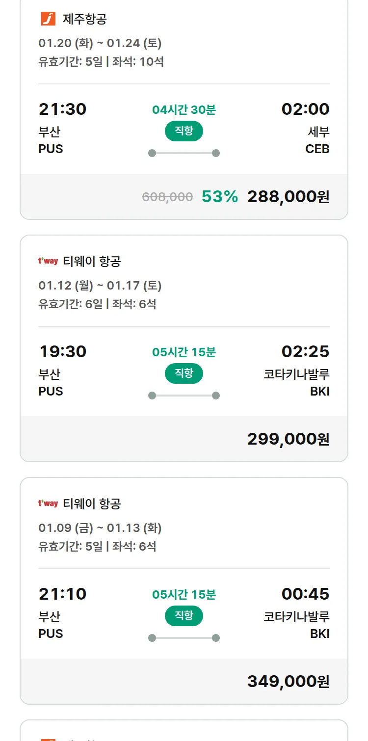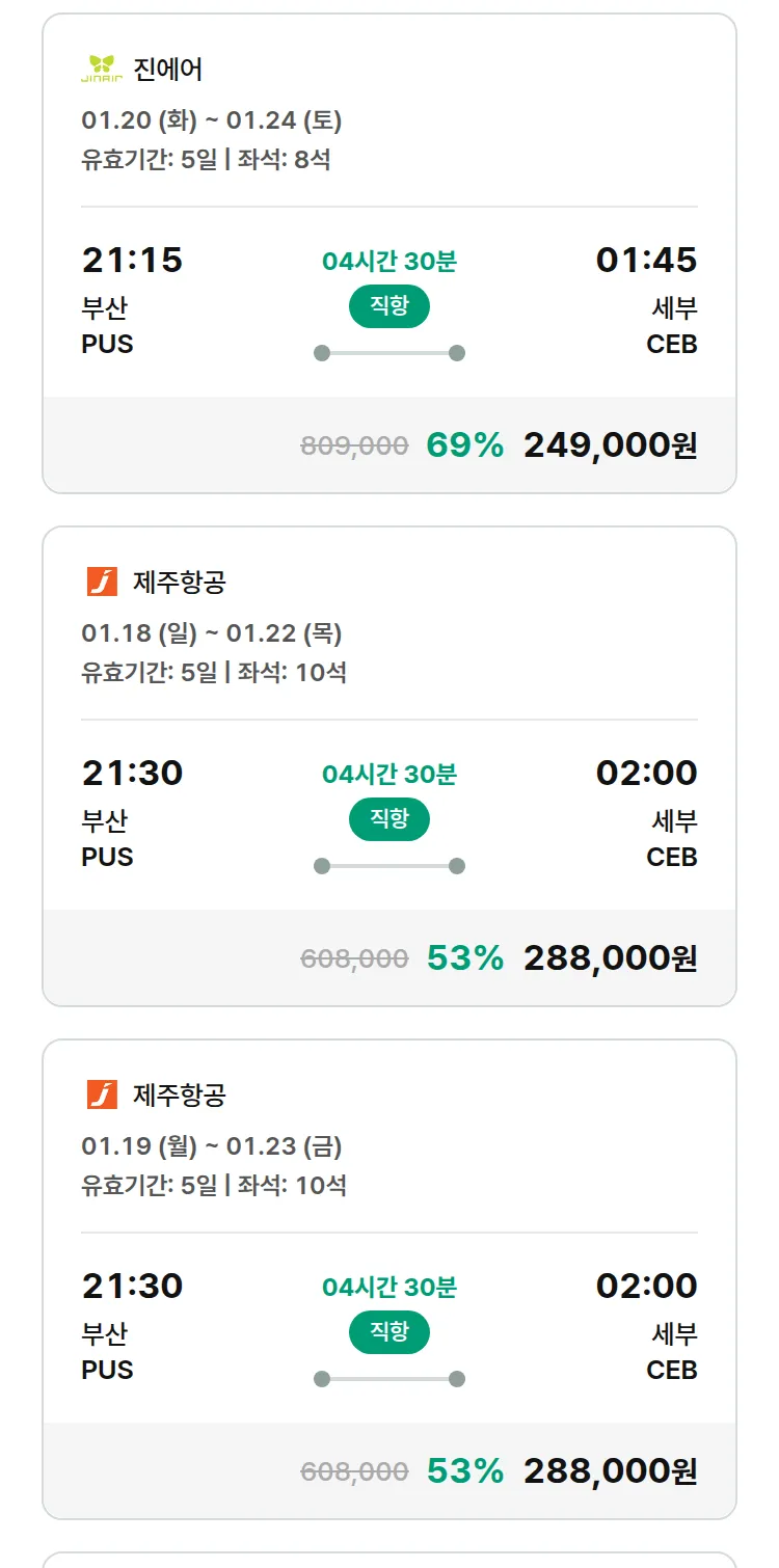 (12월 24일(수)) 땡처리 특가 항공권