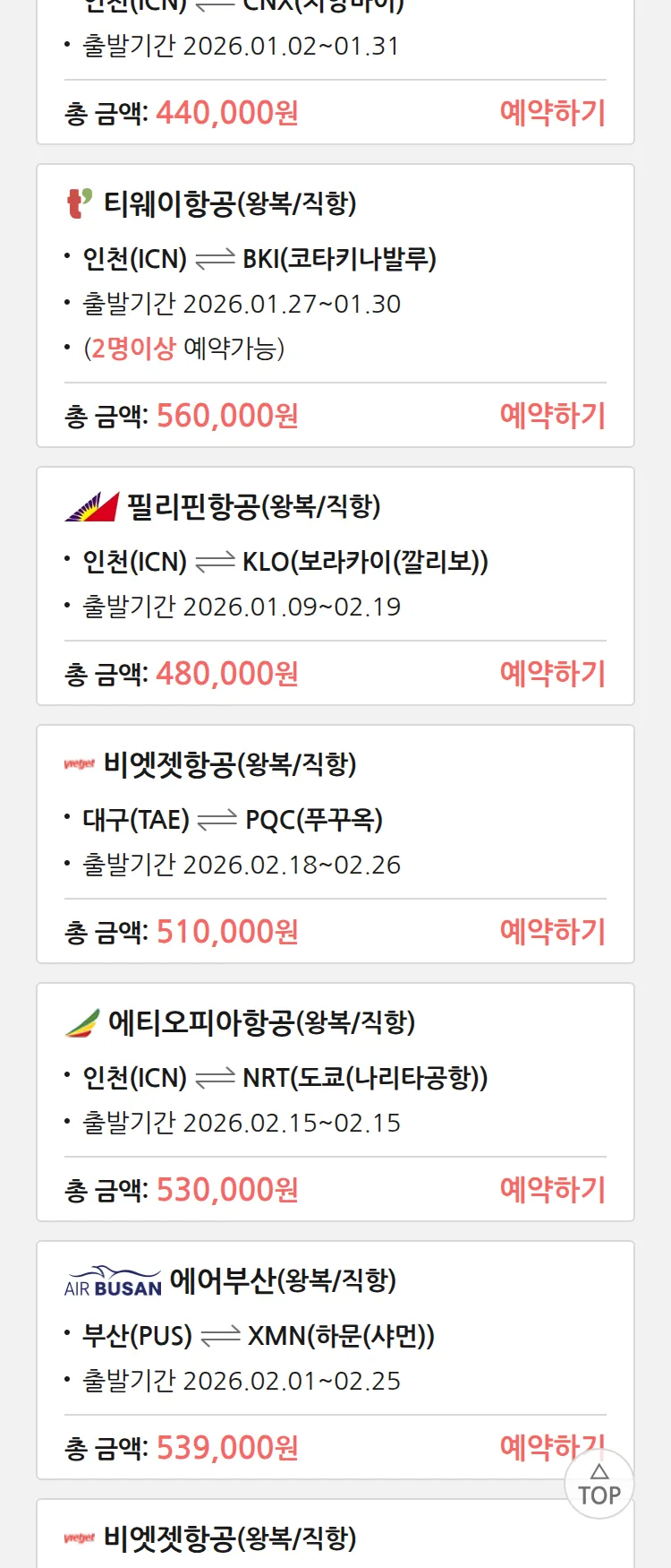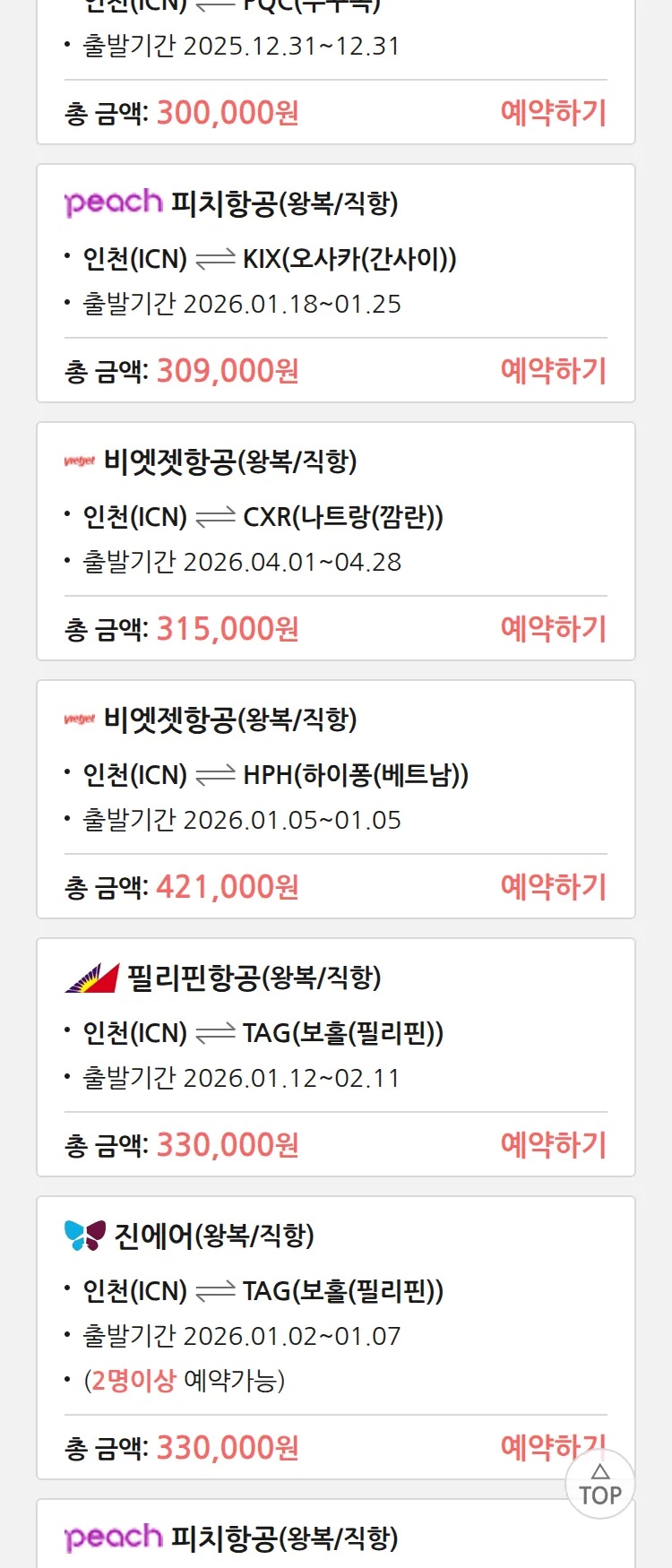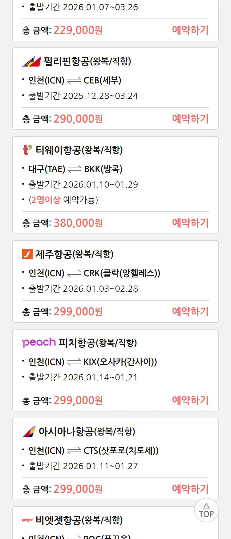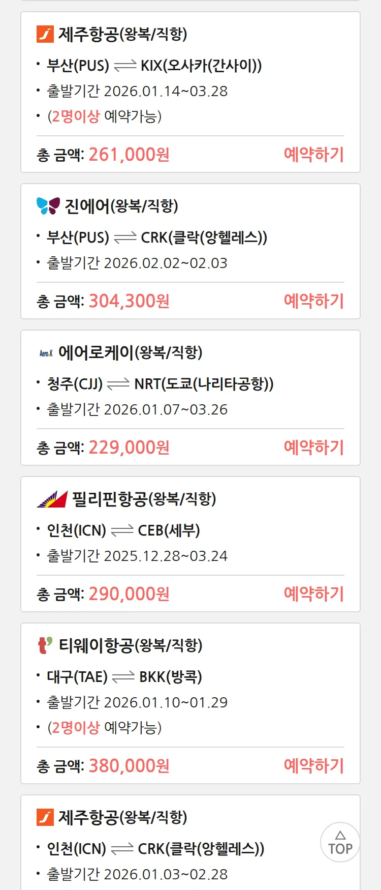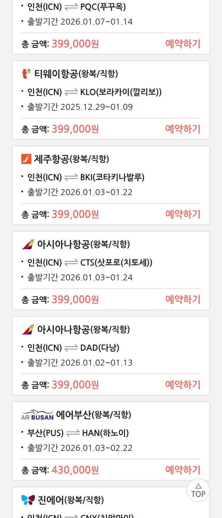 (12월 25일(목)) 땡처리 특가 항공권