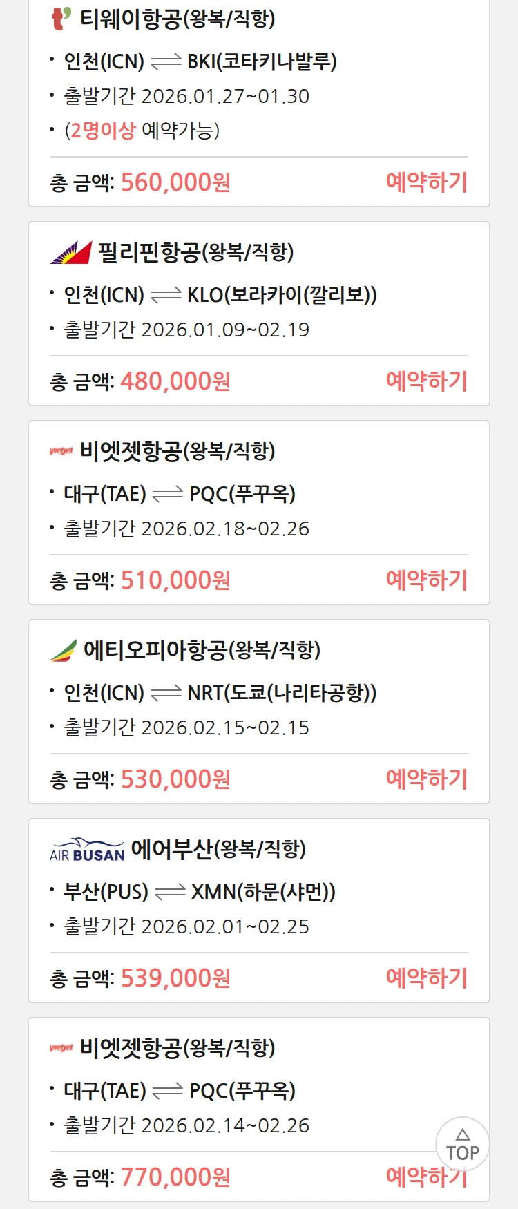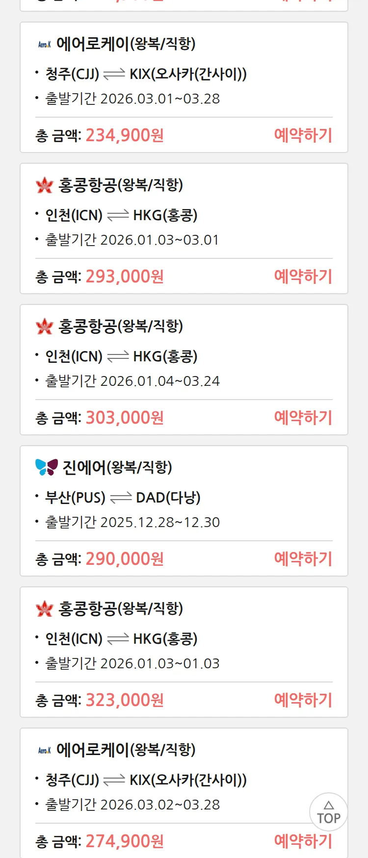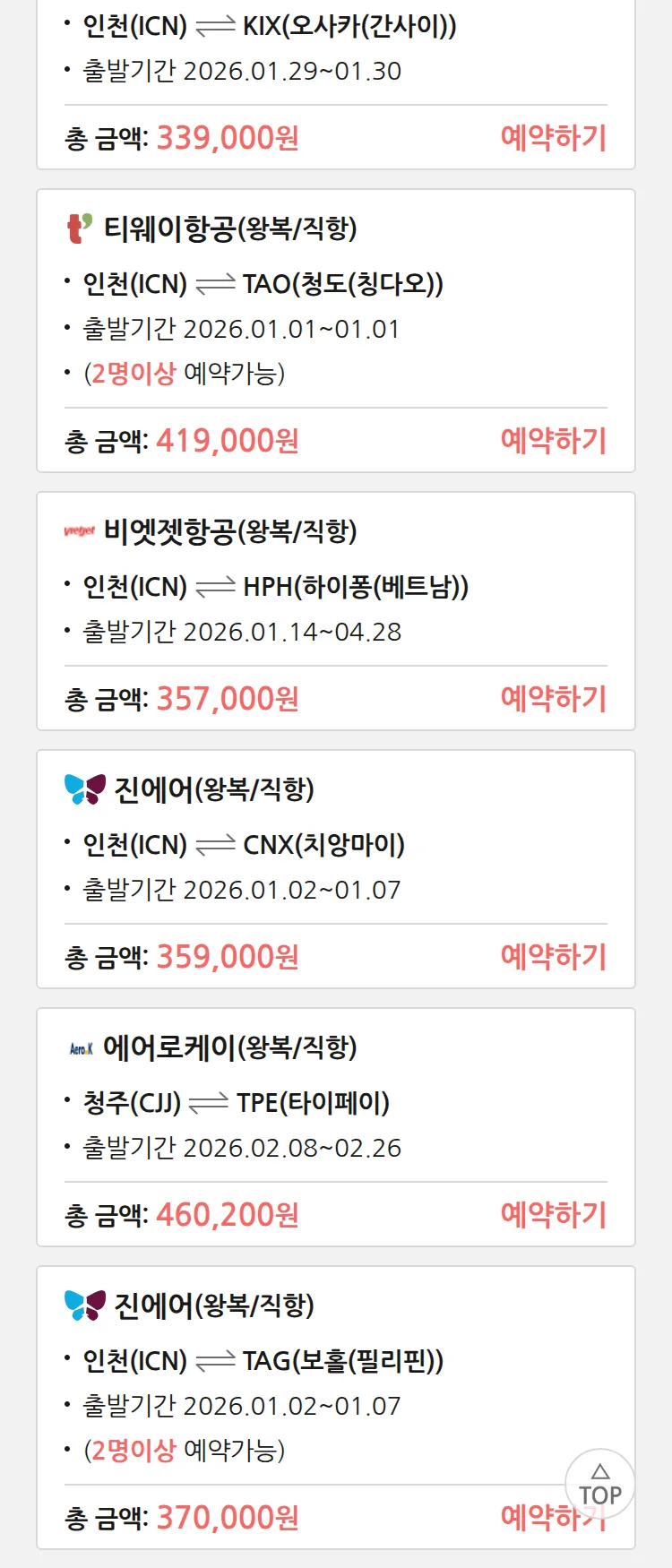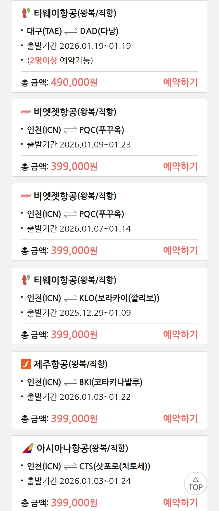 (12월 24일(수)) 땡처리 특가 항공권