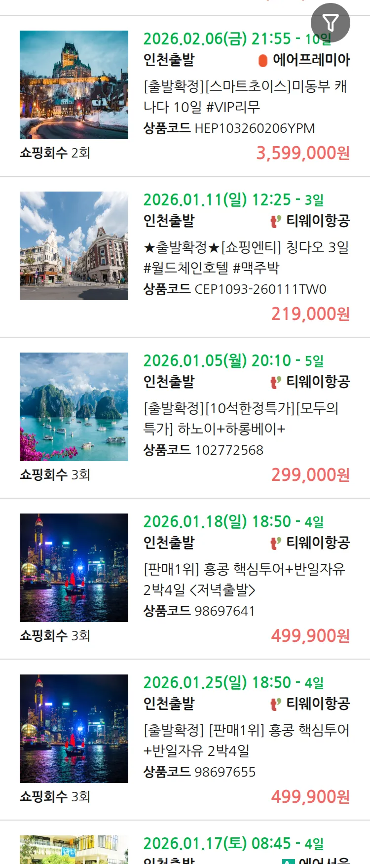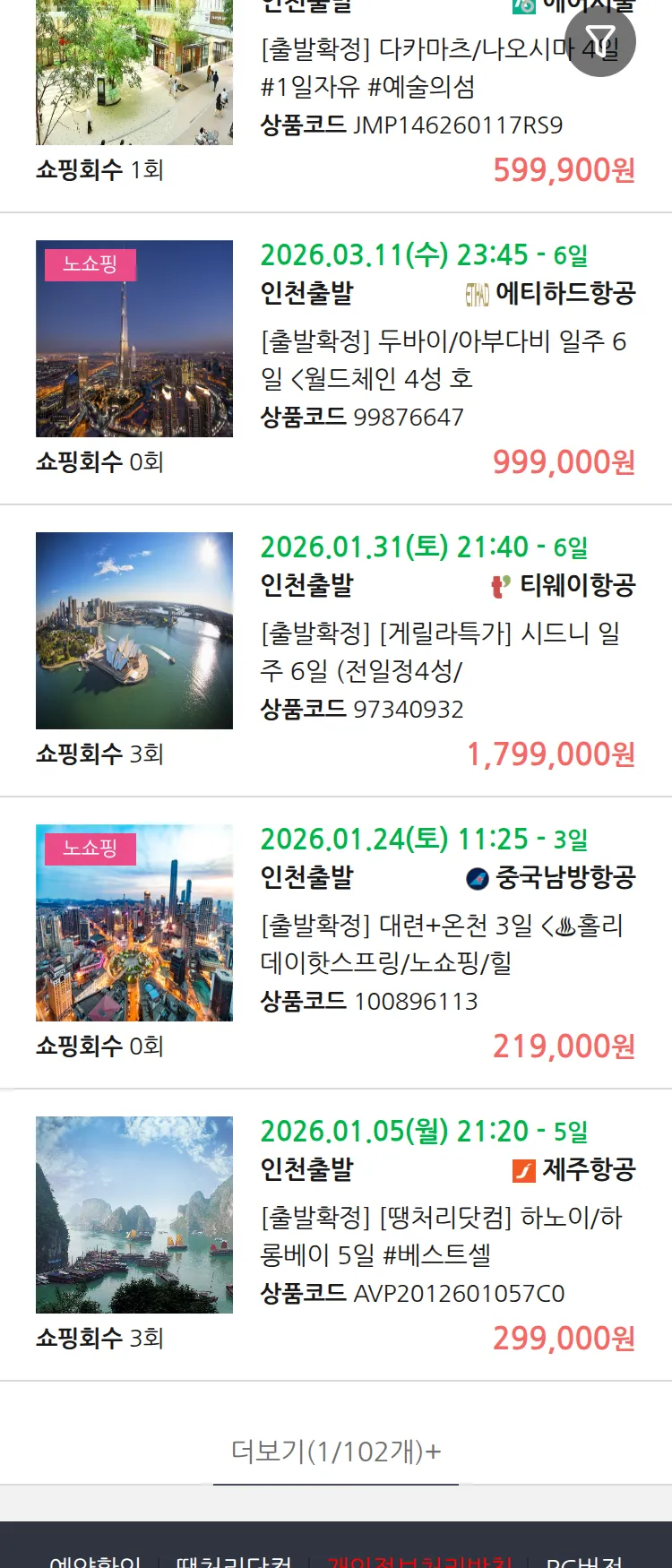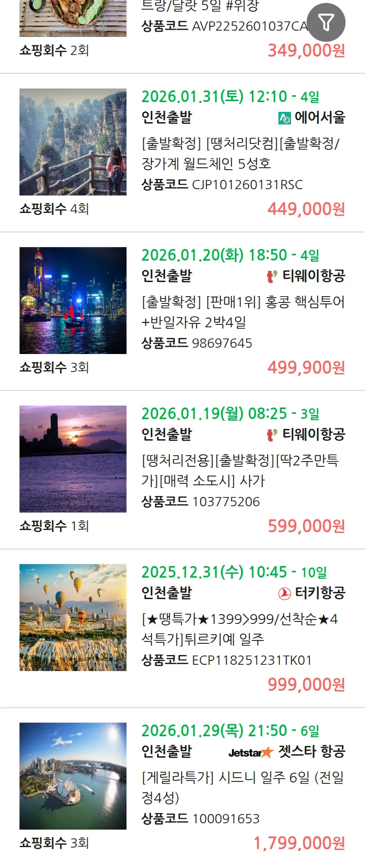 (12월 23일(화)) 땡처리 99.9% 확정 패키지