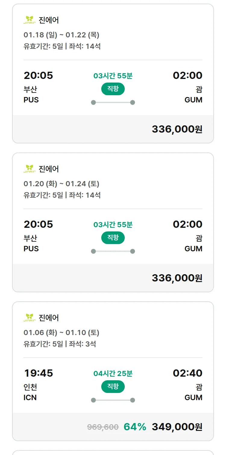 (12월 25일(목)) 모두투어 남태평양 특가 항공권