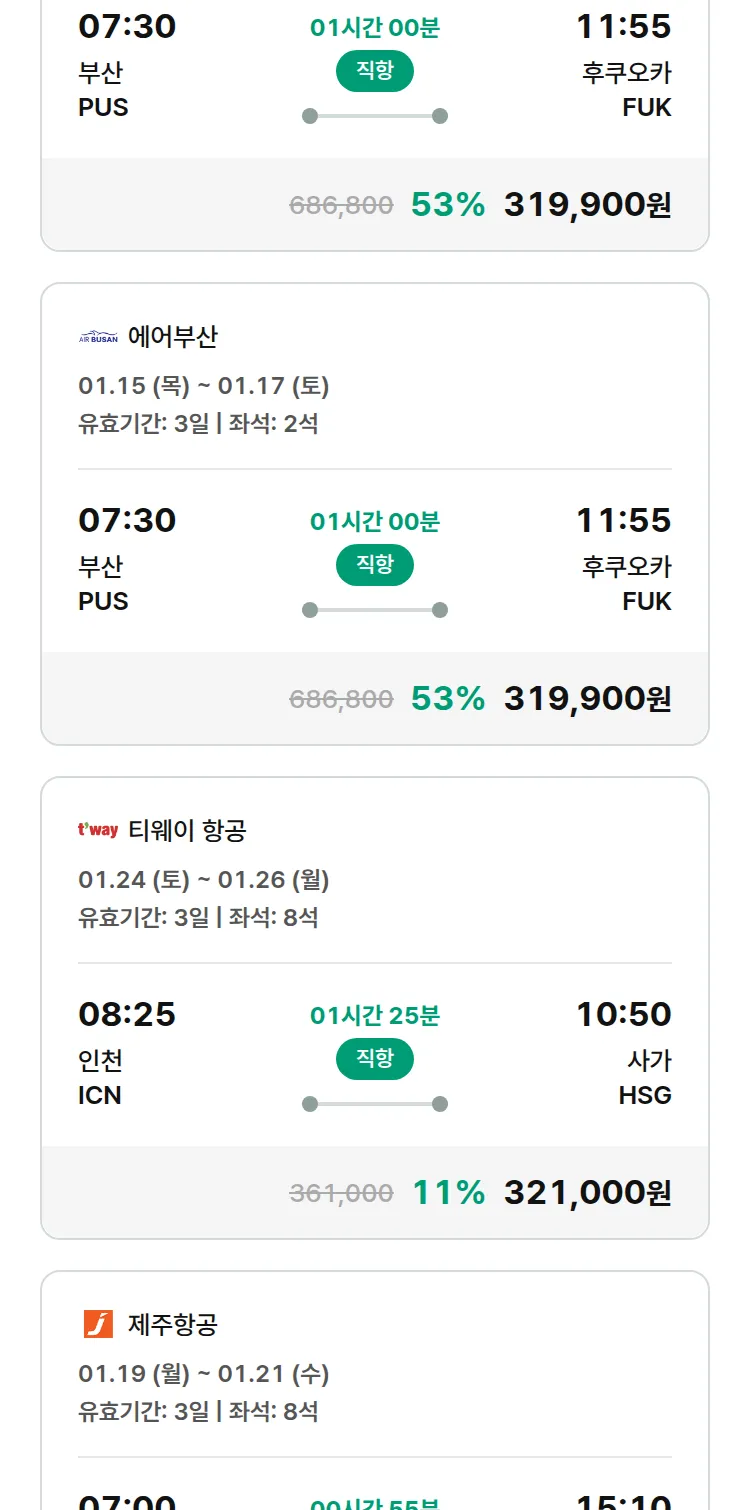 (12월 25일(목)) 모두투어 일본 특가 항공권