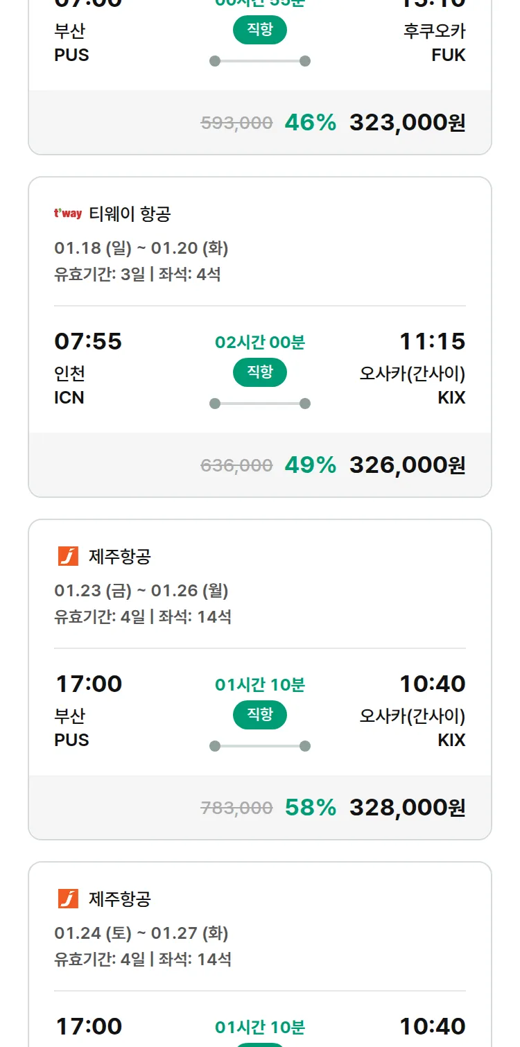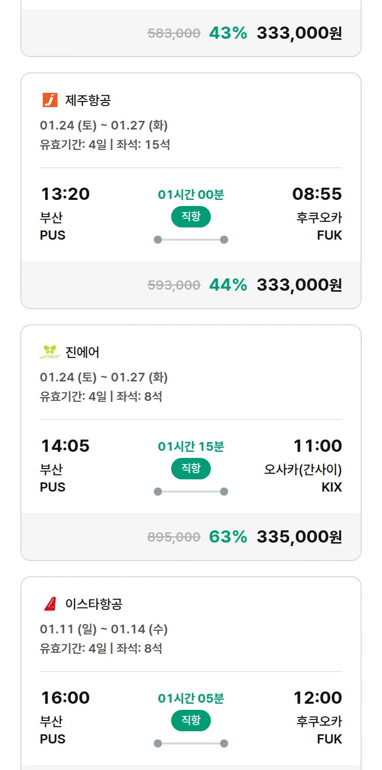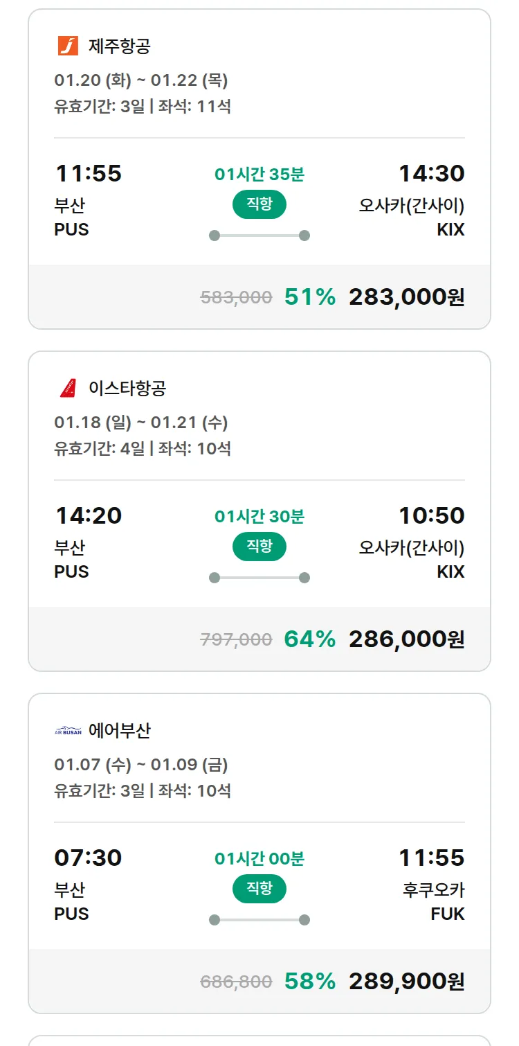 (12월 24일(수)) 모두투어 일본 특가 항공권