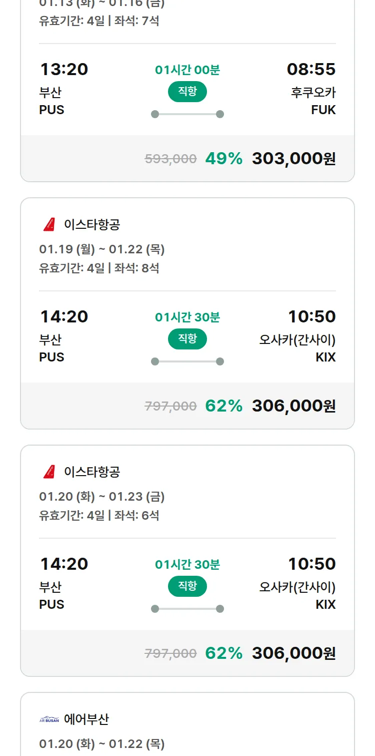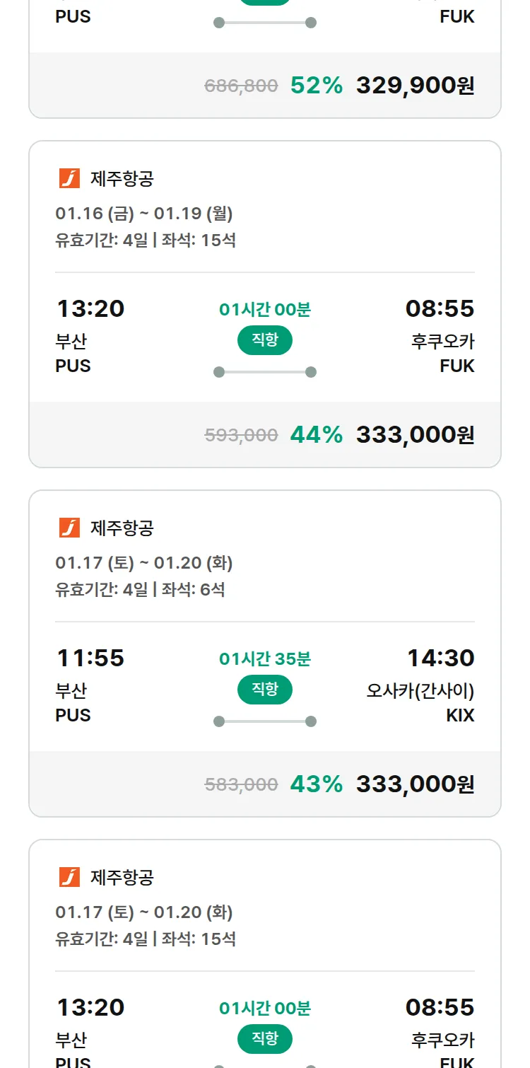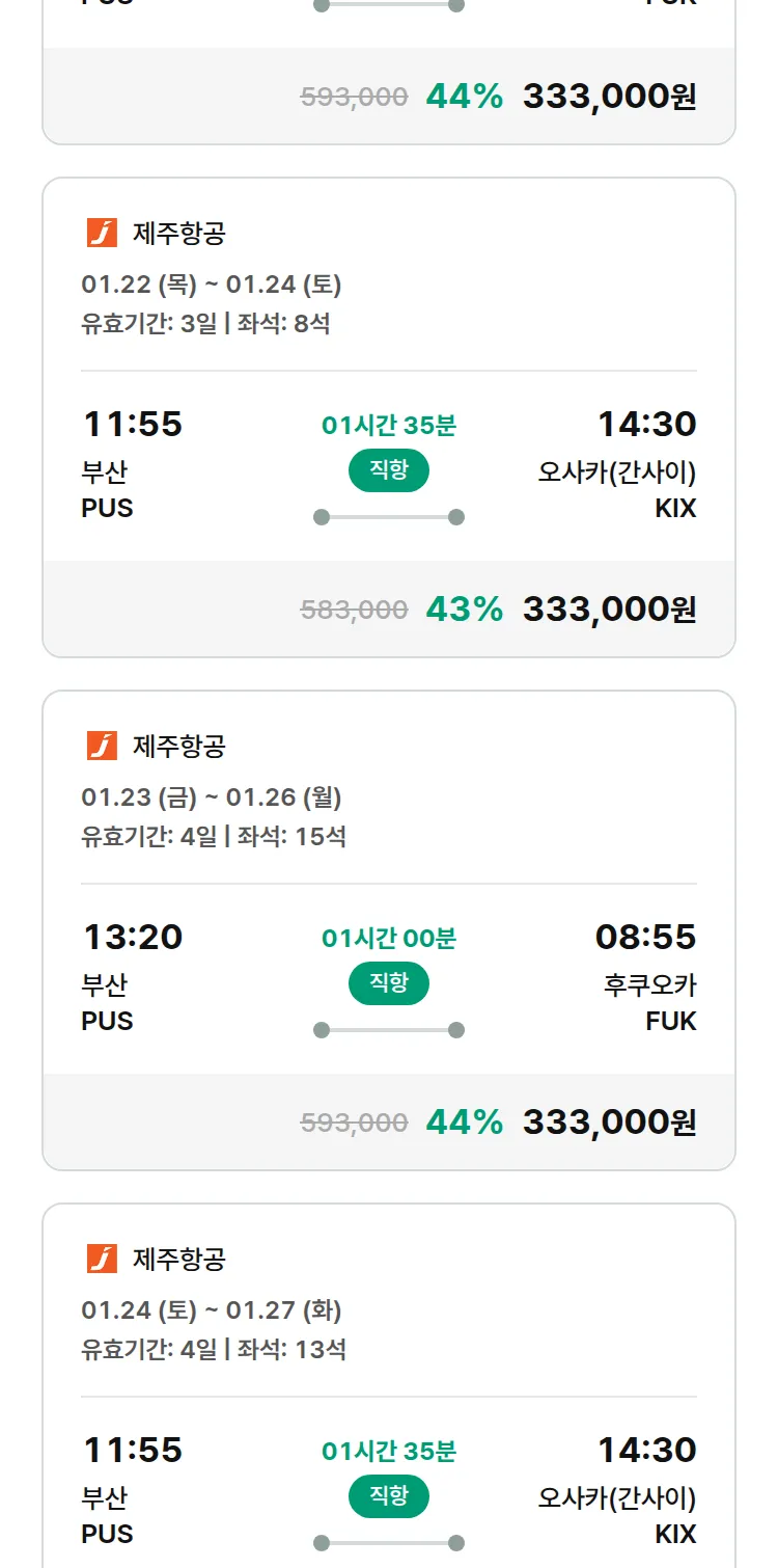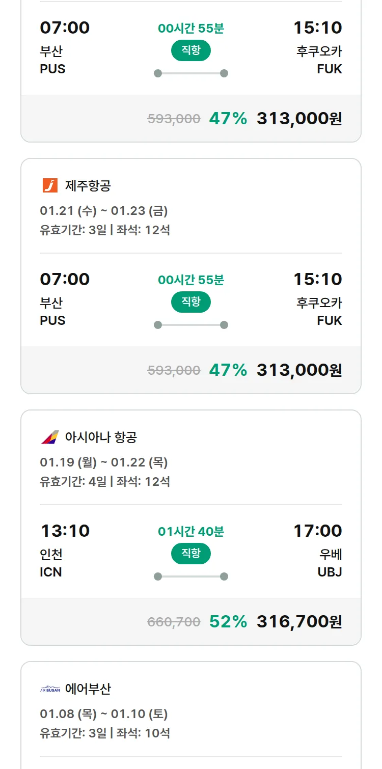 (12월 24일(수)) 모두투어 일본 특가 항공권