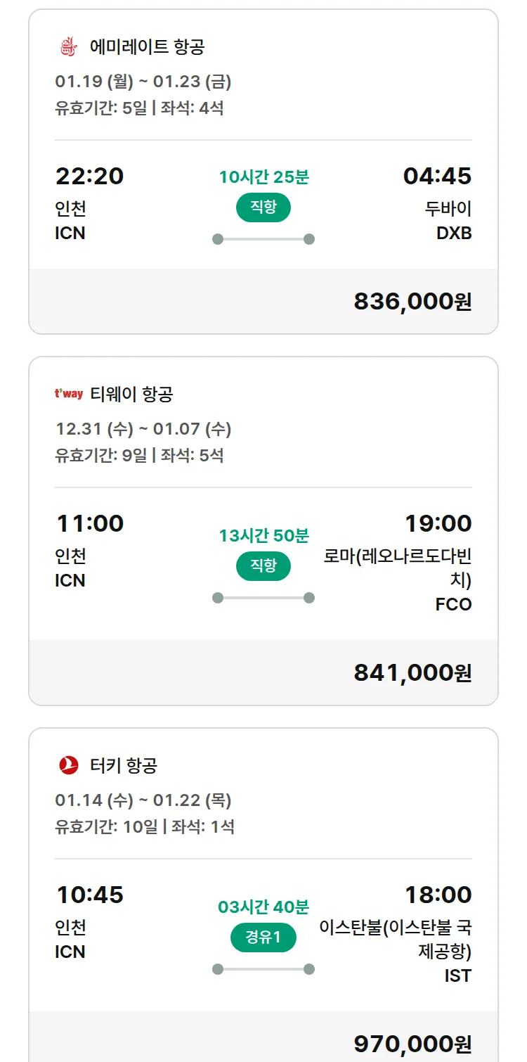 (12월 26일(금)) 모두투어 유럽 특가 항공권