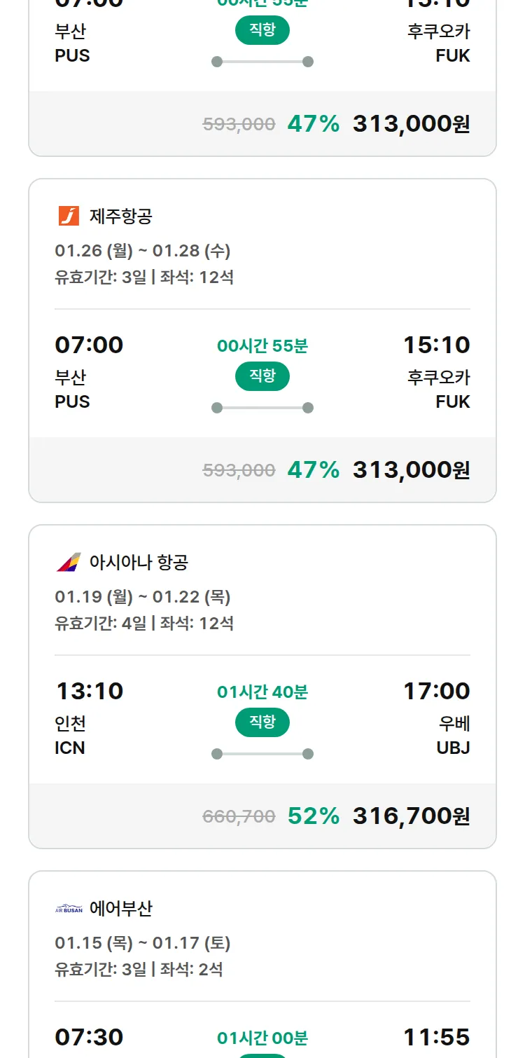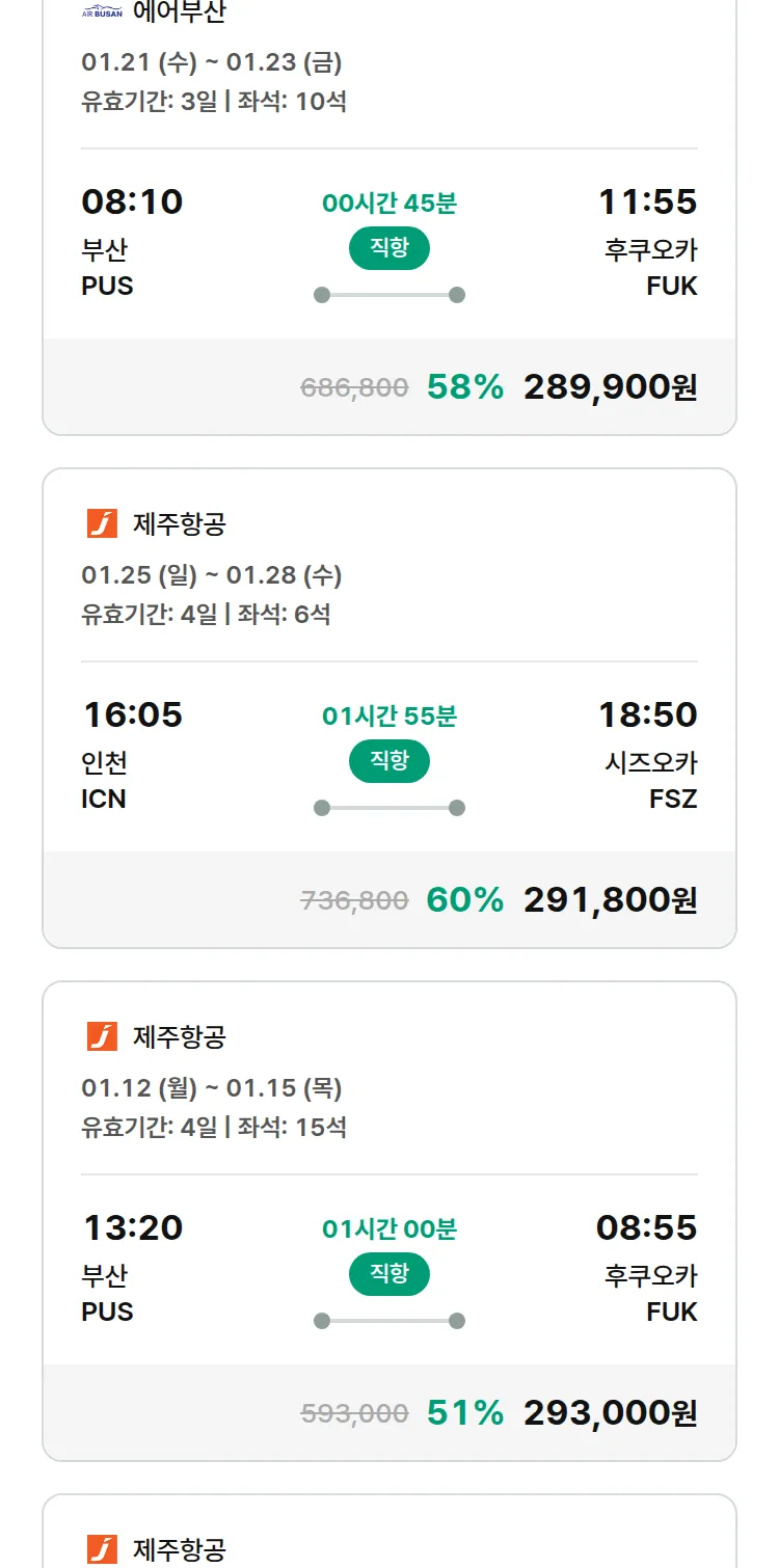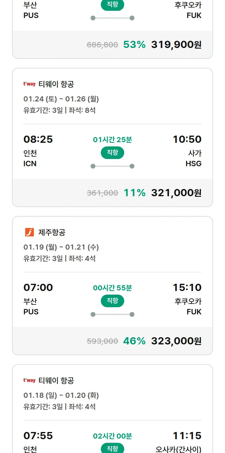 (12월 26일(금)) 땡처리 특가 항공권