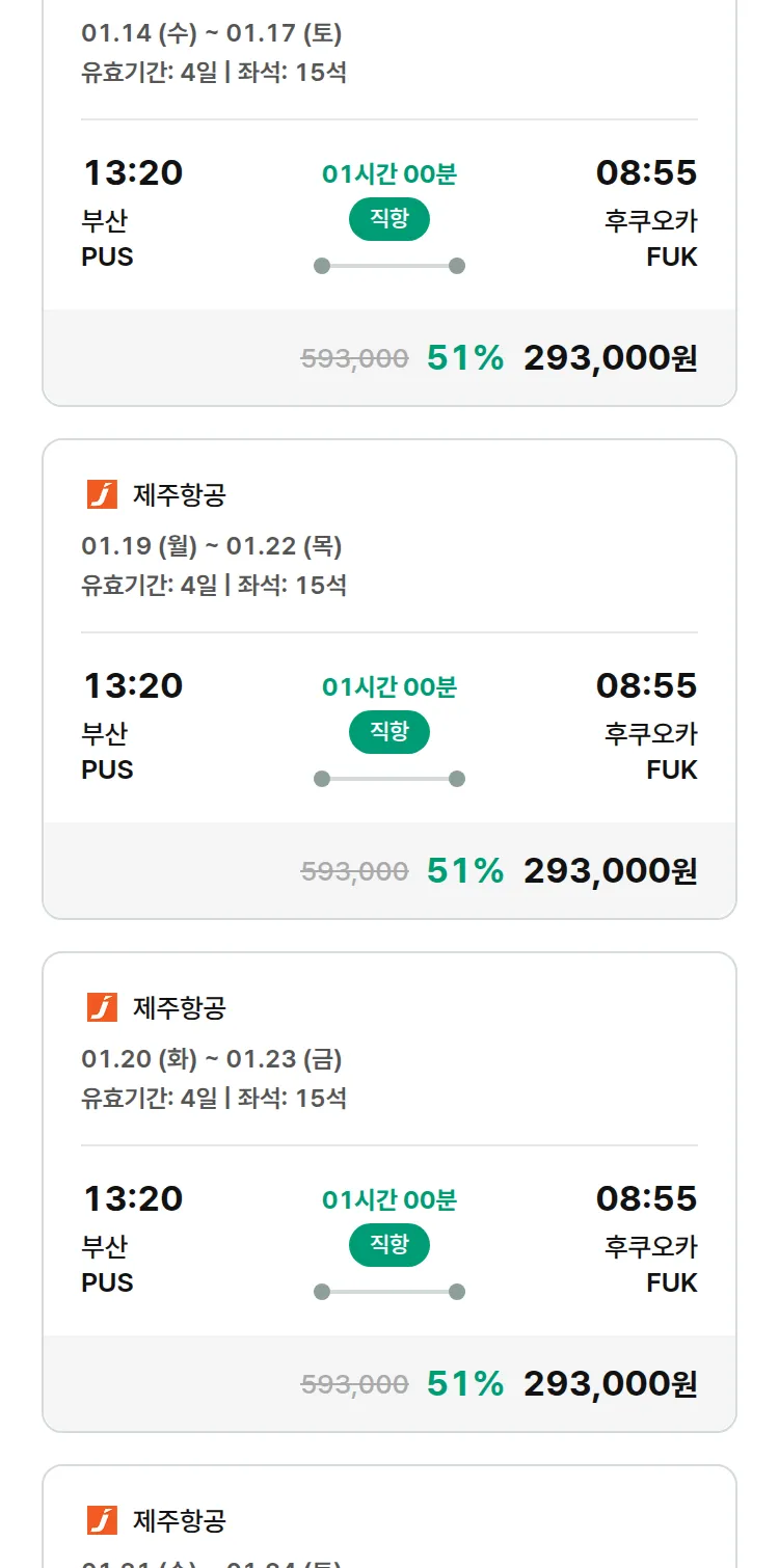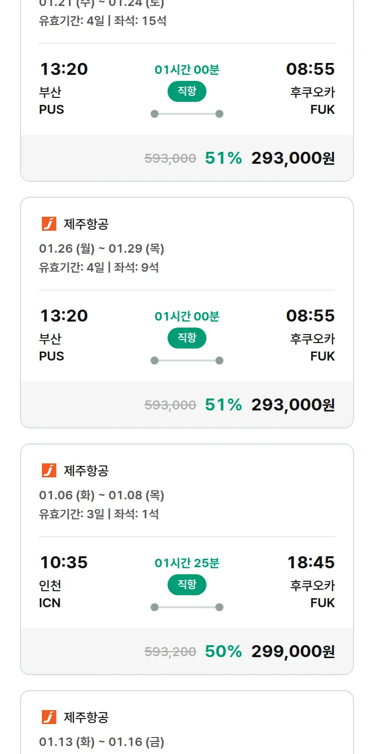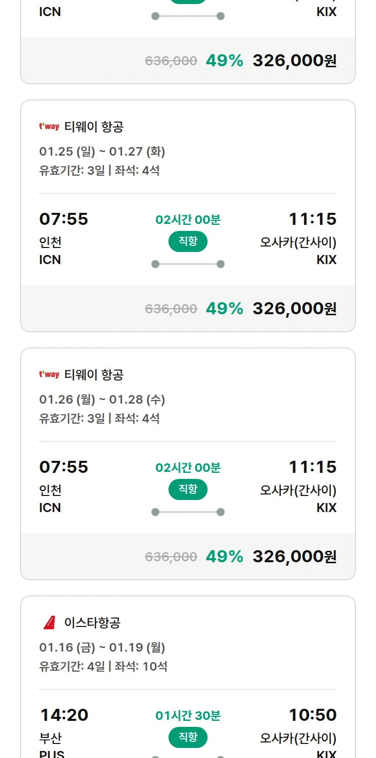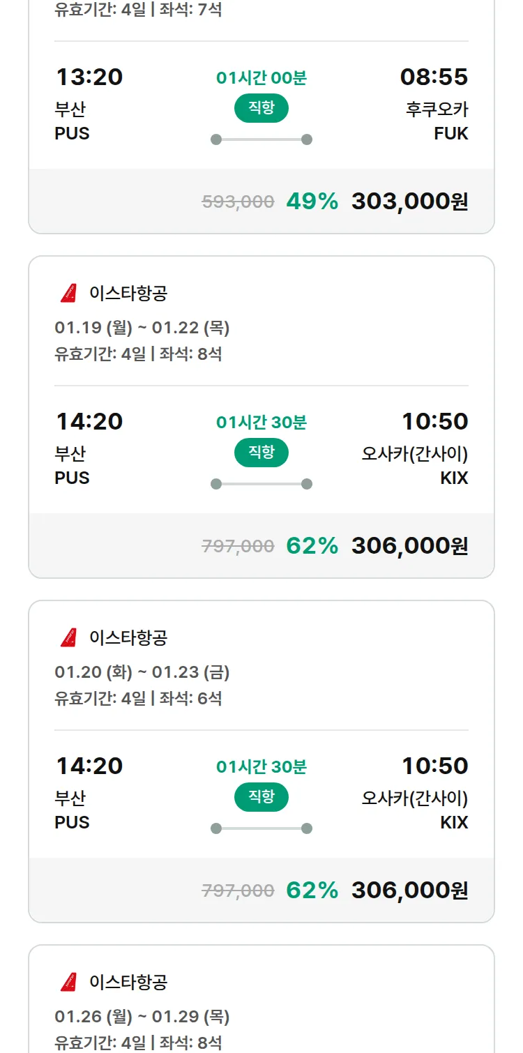 (12월 26일(금)) 땡처리 특가 항공권