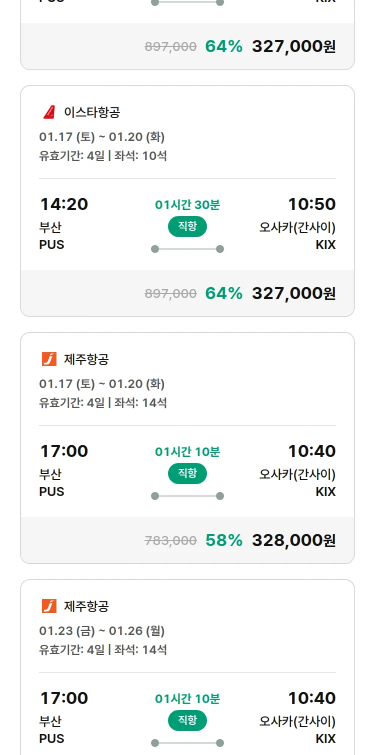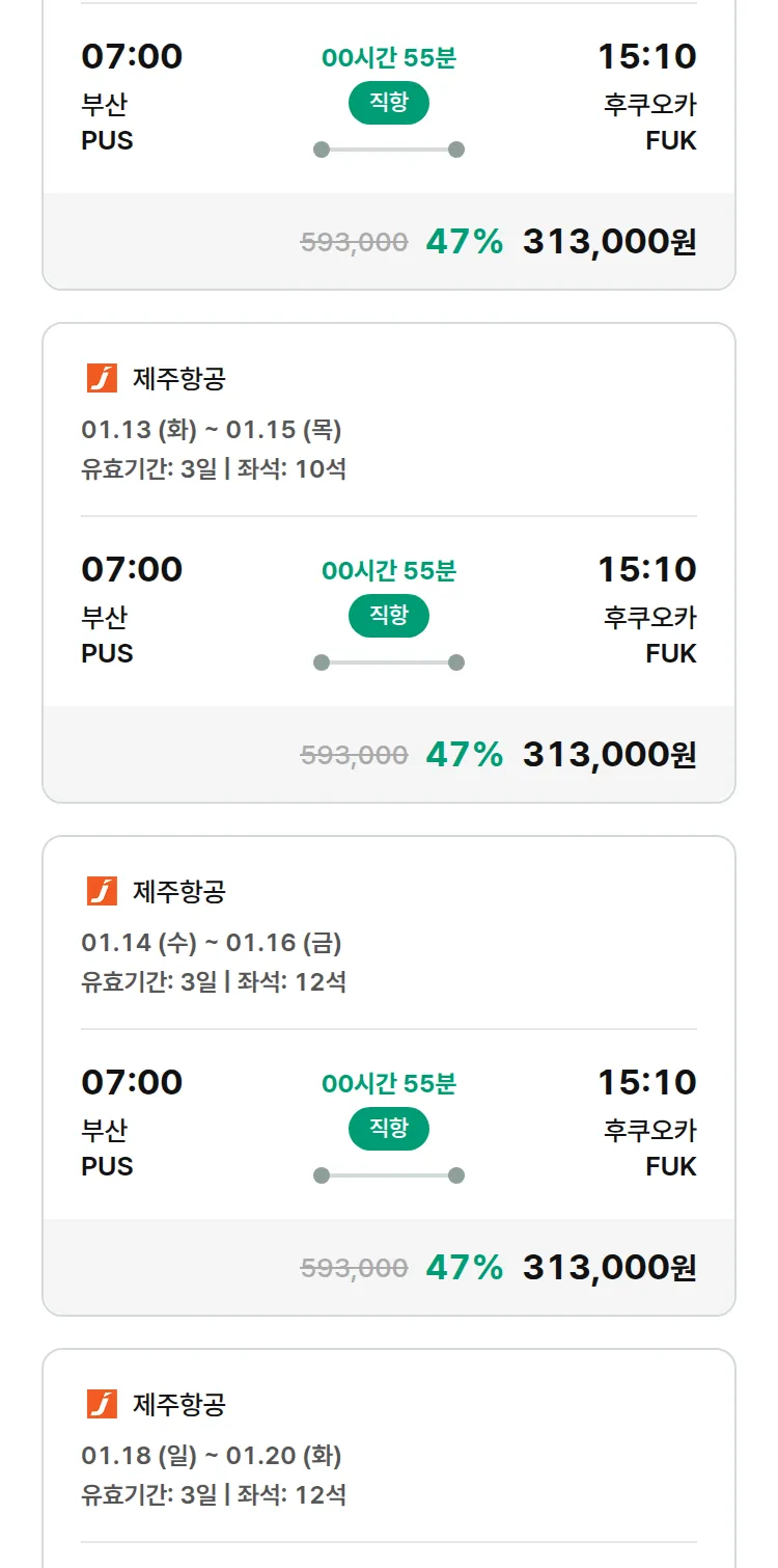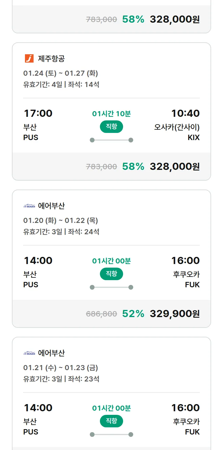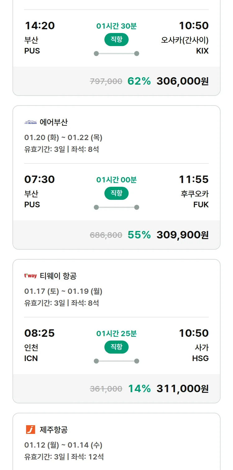 (12월 26일(금)) 모두투어 일본 특가 항공권