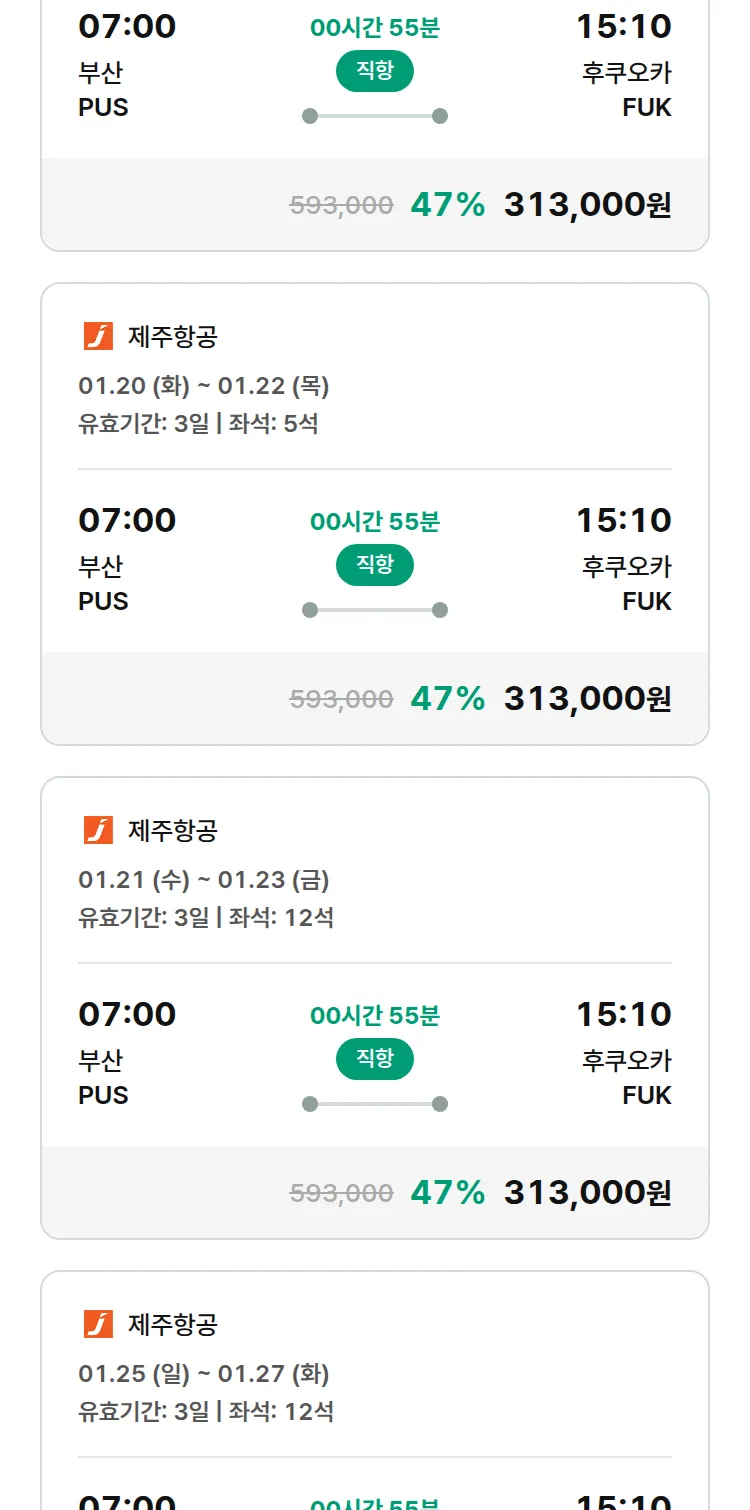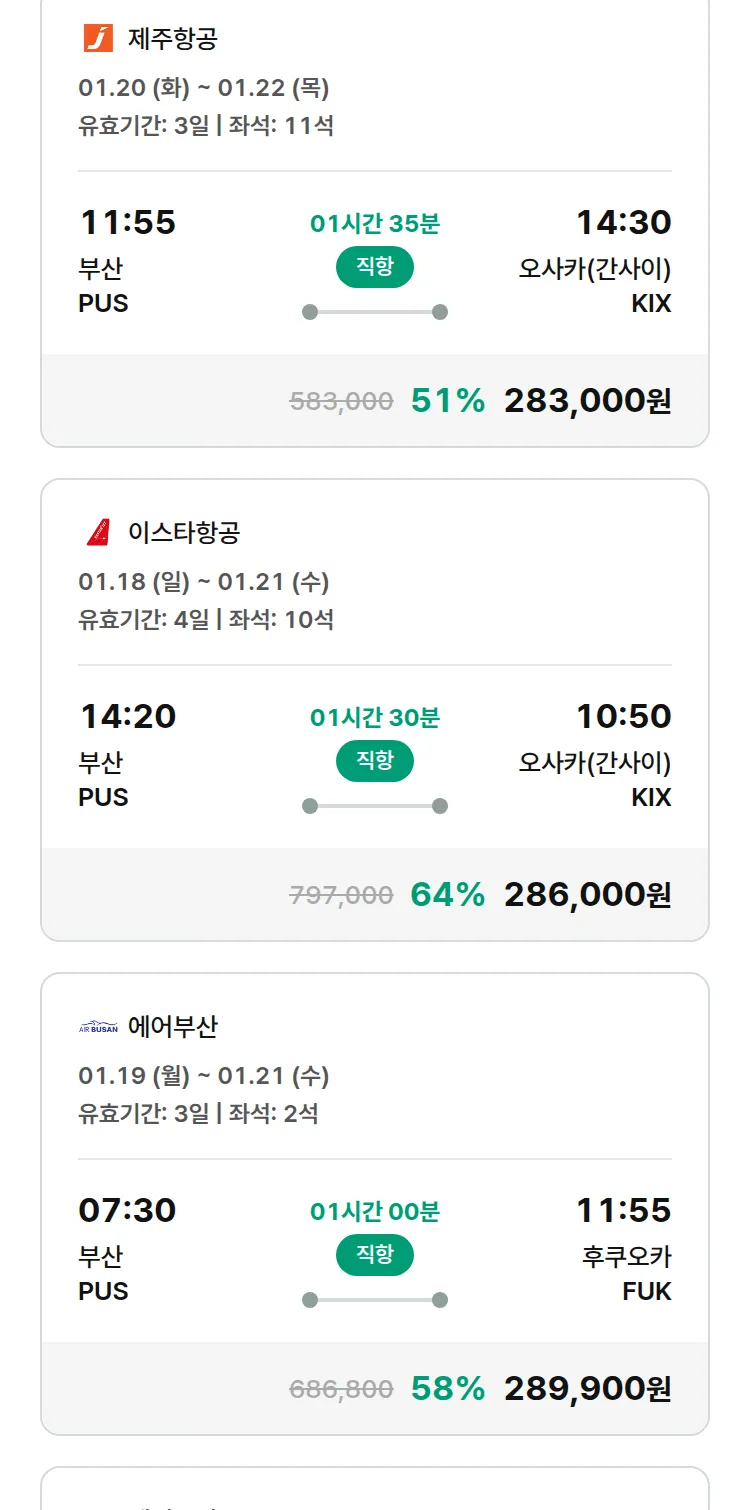 (12월 27일(토)) 땡처리 특가 항공권