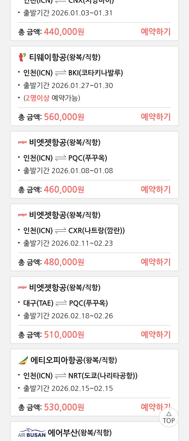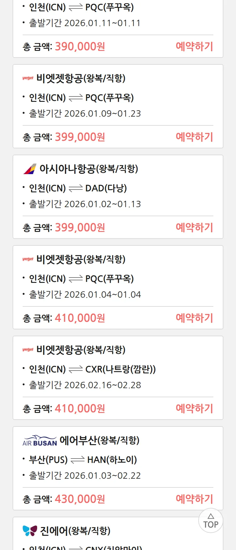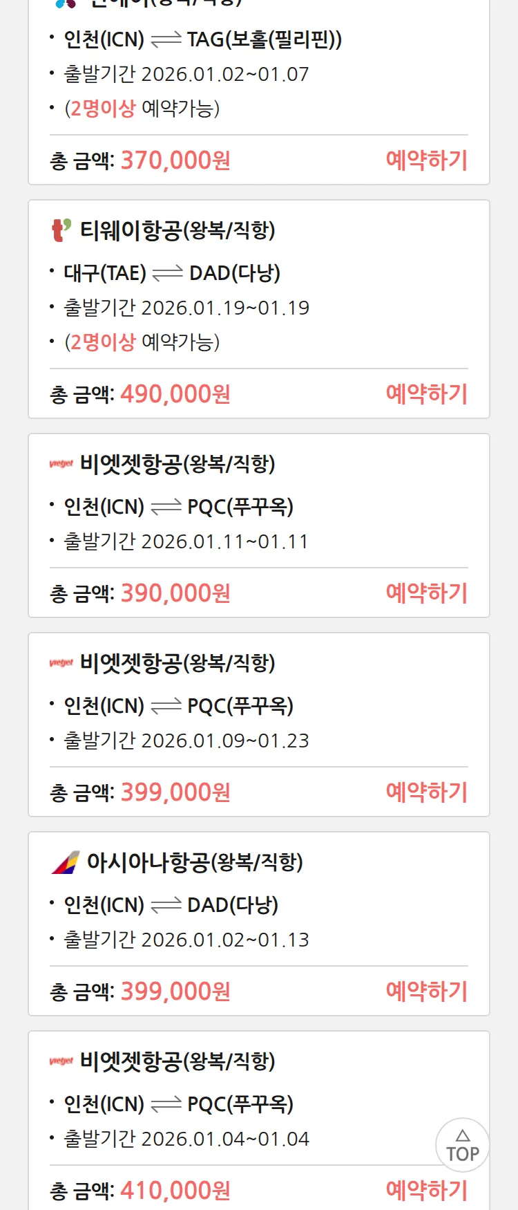 (12월 28일(일)) 모두투어 동남아 특가 항공권
