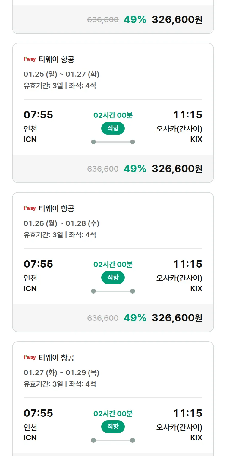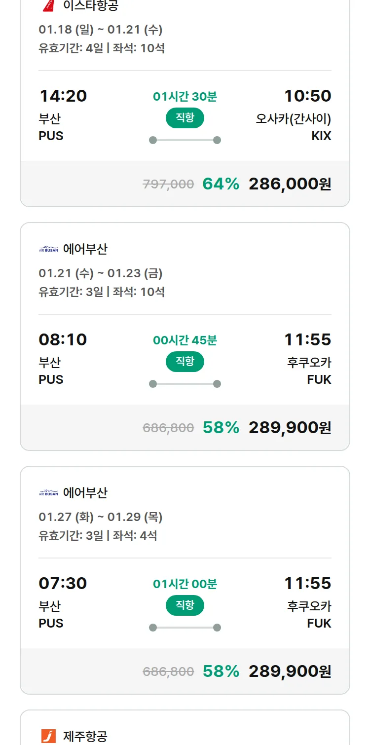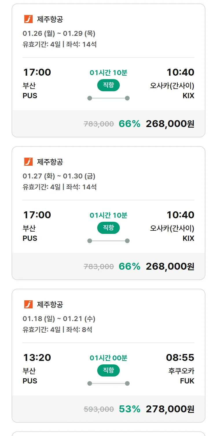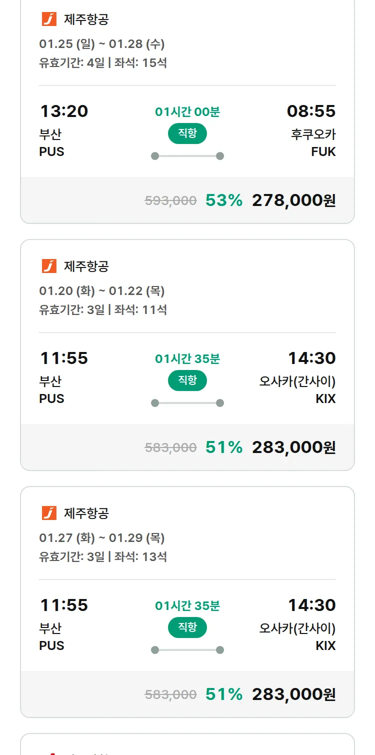 (12월 27일(토)) 모두투어 일본 특가 항공권
