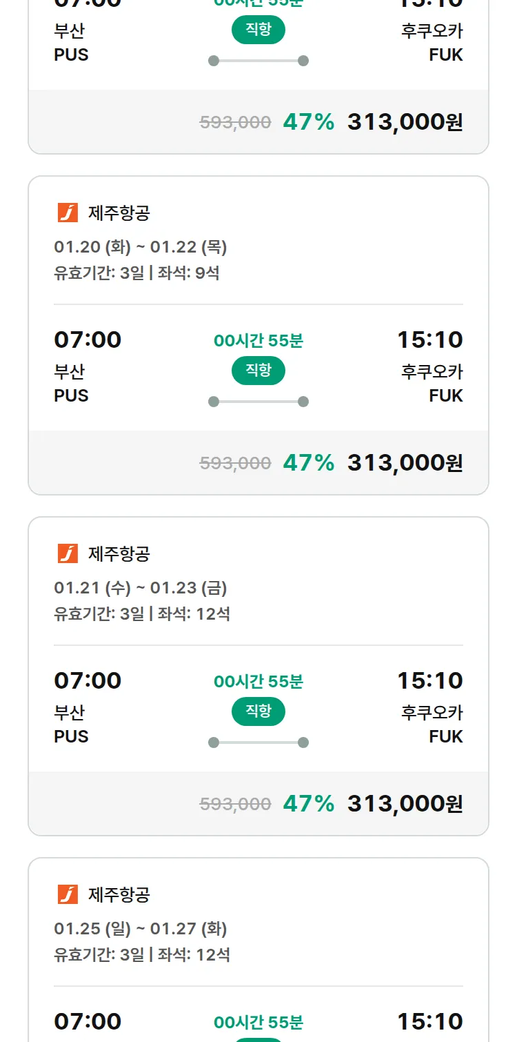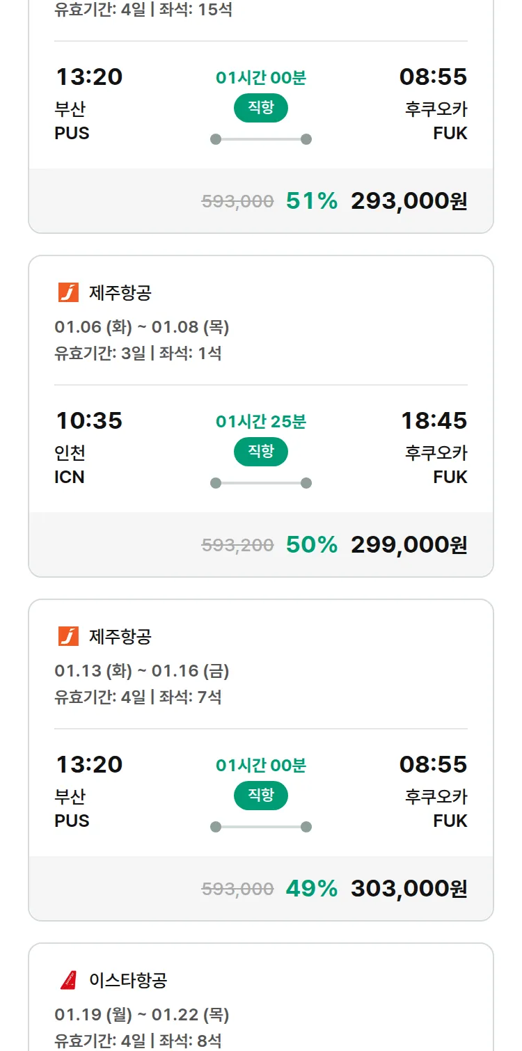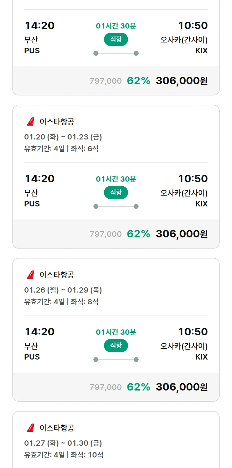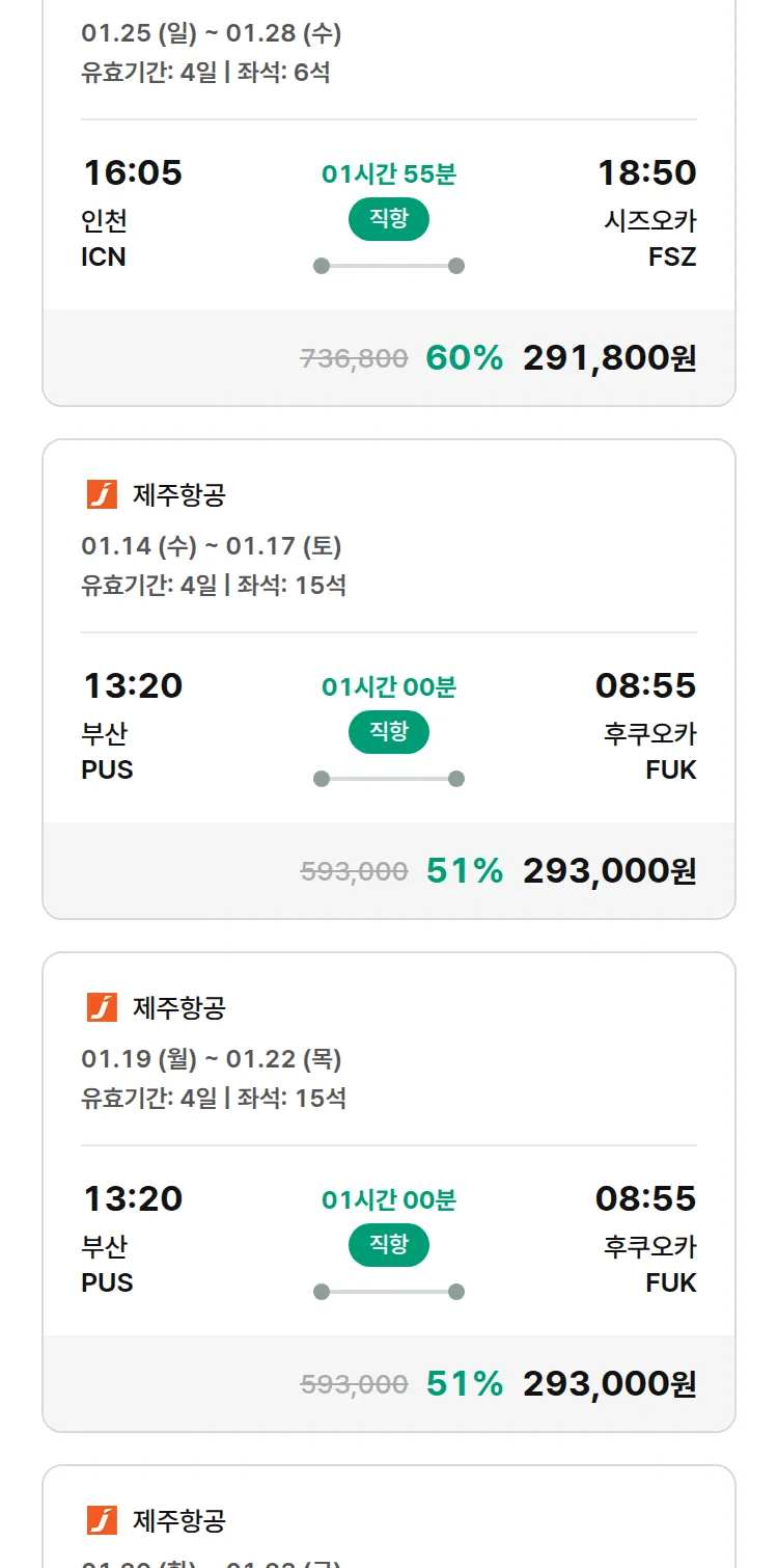 (12월 27일(토)) 모두투어 일본 특가 항공권