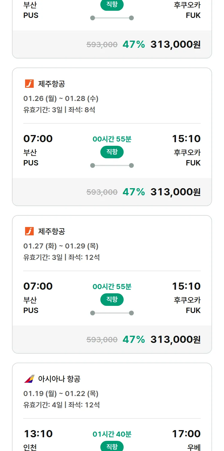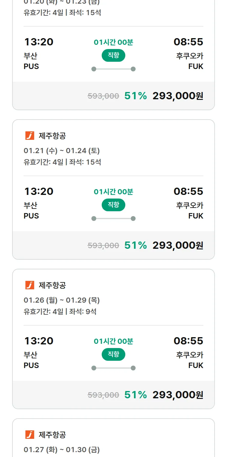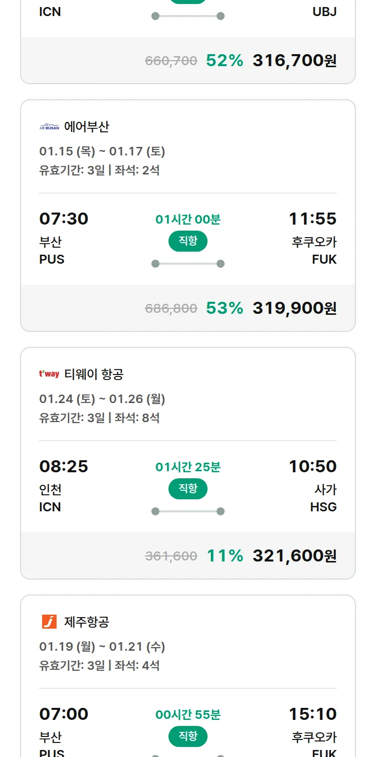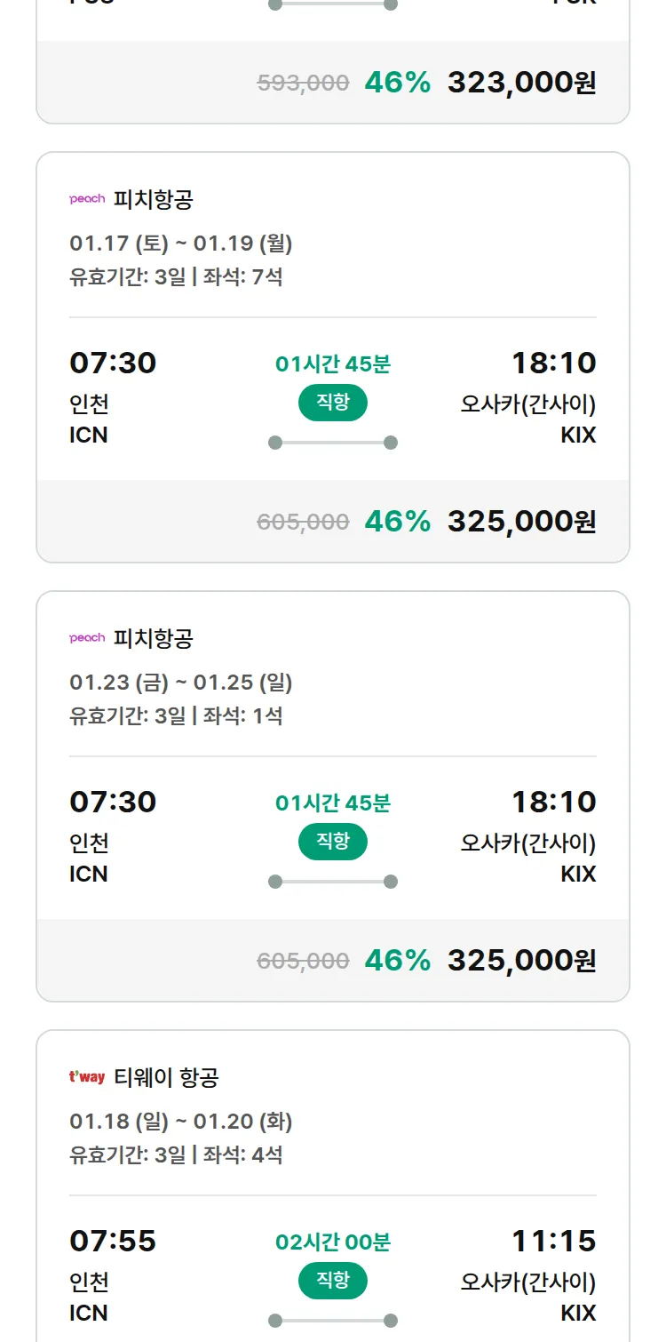 (12월 27일(토)) 모두투어 일본 특가 항공권