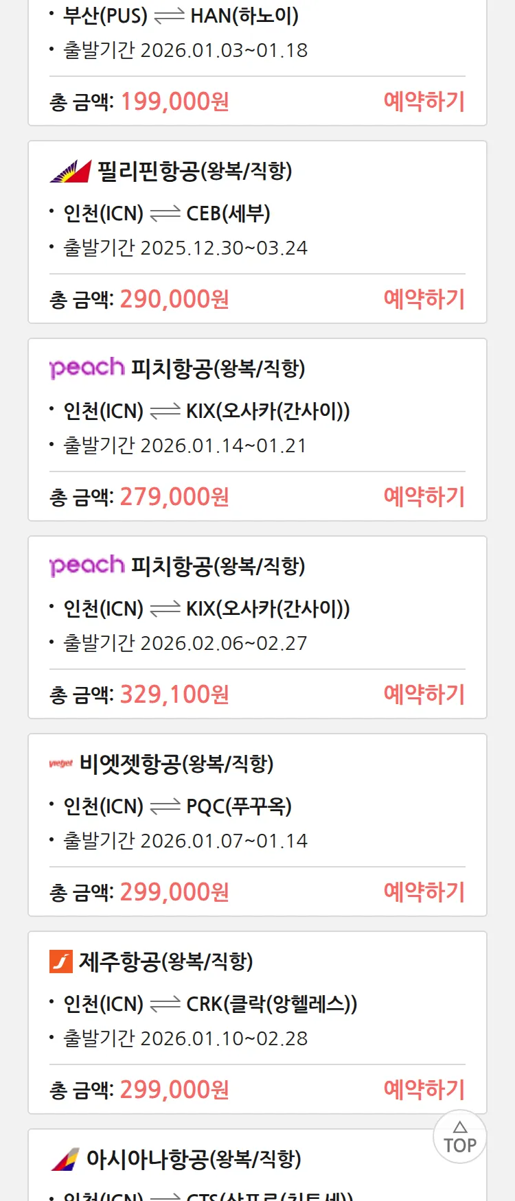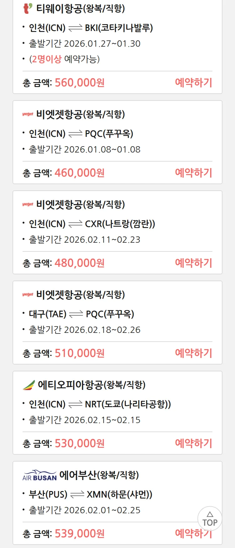 (12월 28일(일)) 모두투어 동남아 특가 항공권