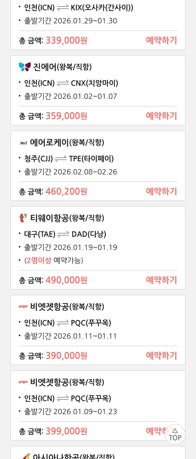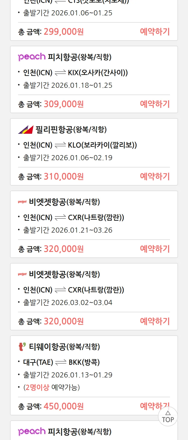 (12월 27일(토)) 땡처리 연휴 패키지 패키지