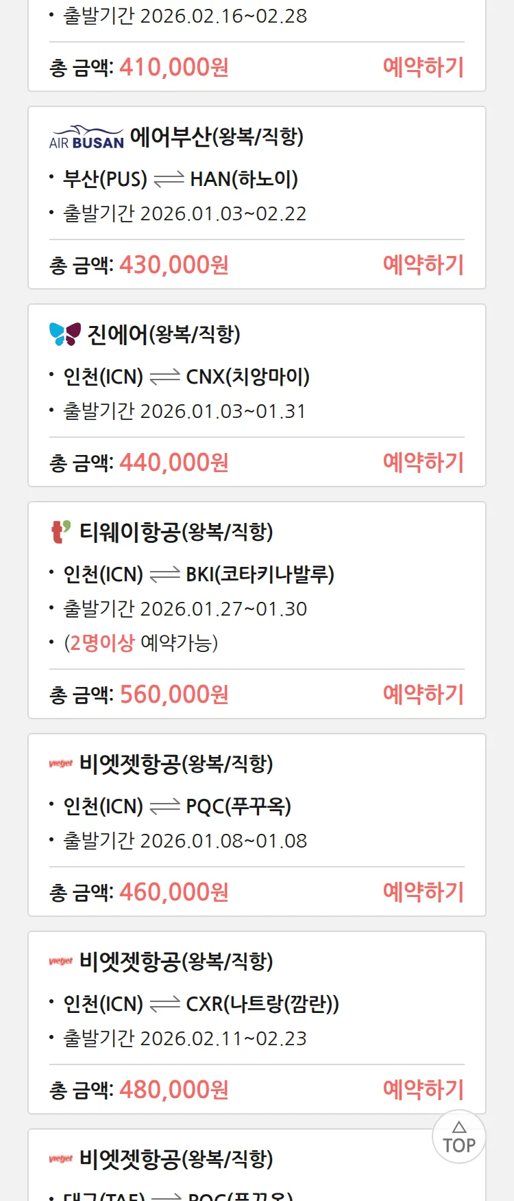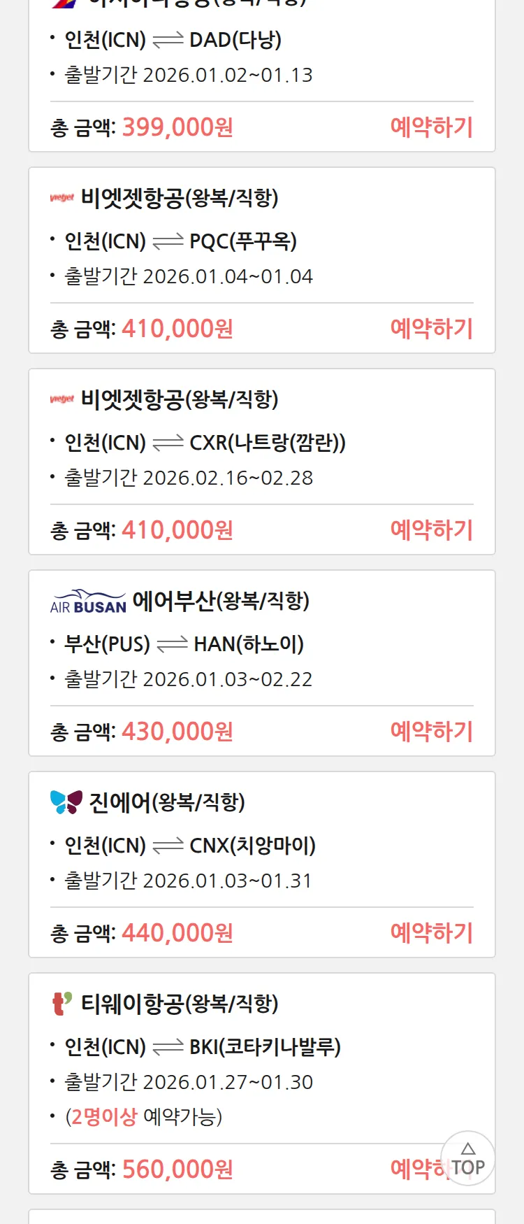 (12월 28일(일)) 모두투어 동남아 특가 항공권
