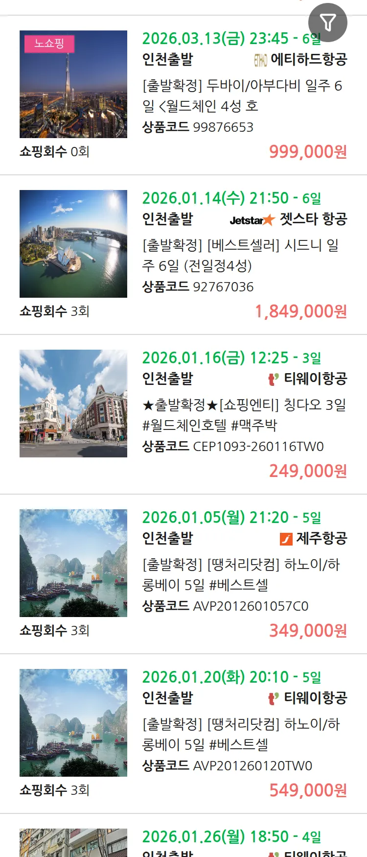 (12월 28일(일)) 땡처리 99.9% 확정 패키지