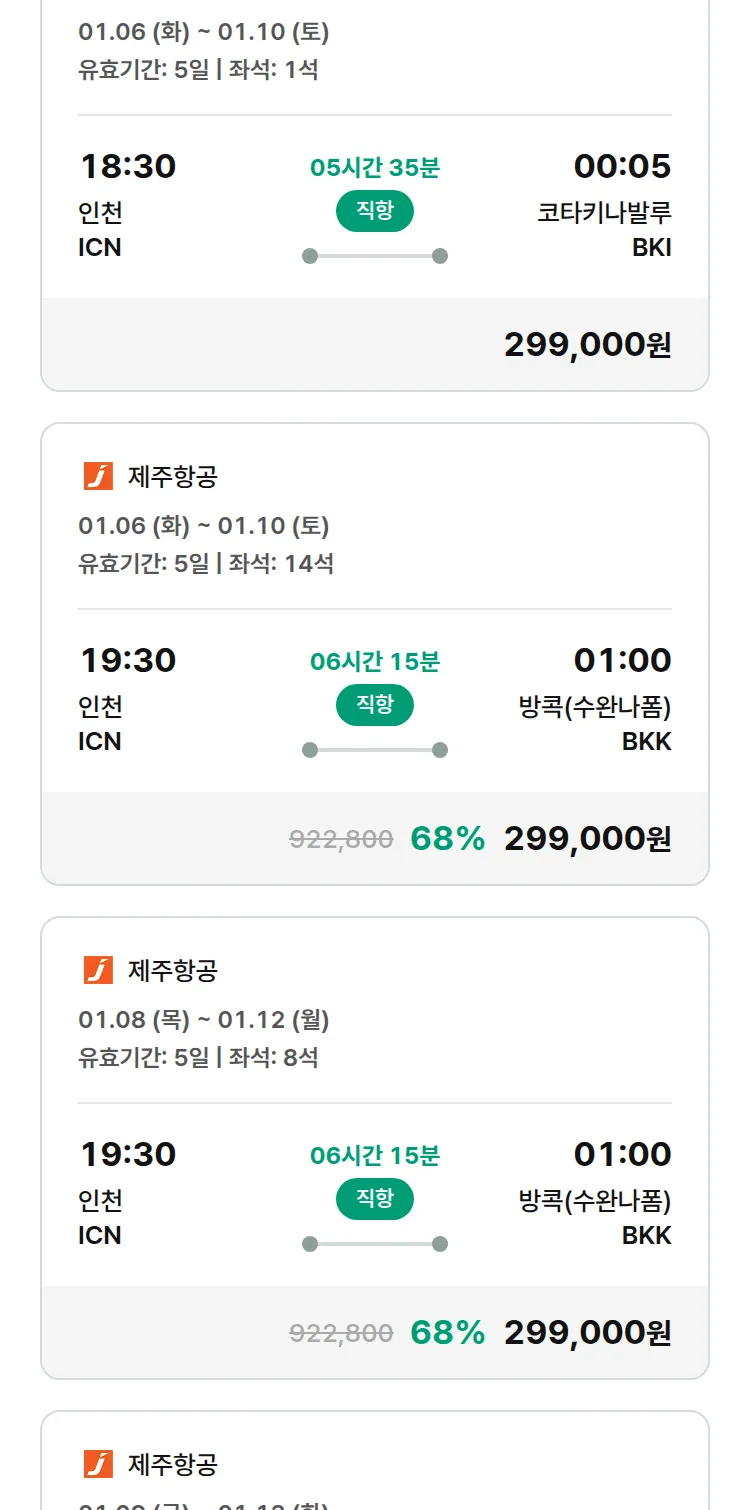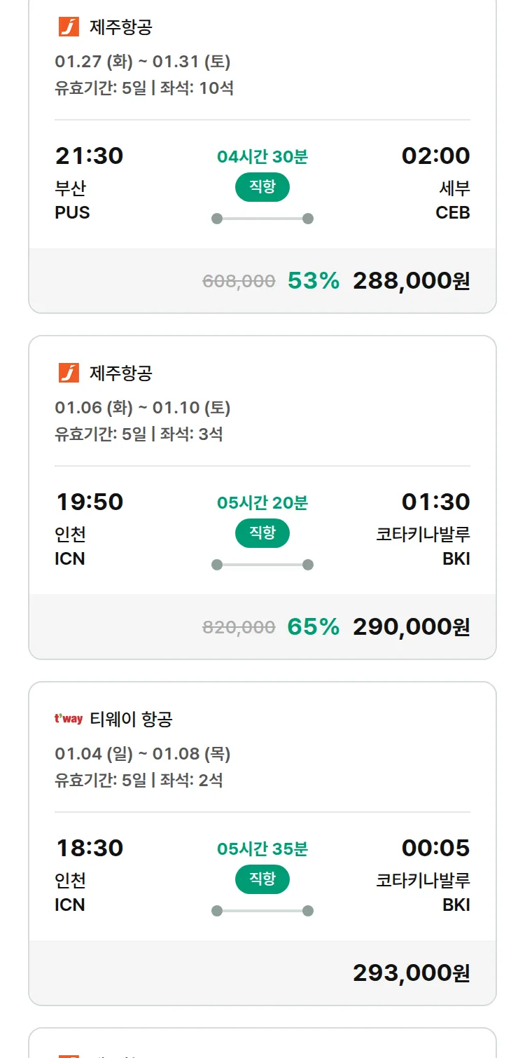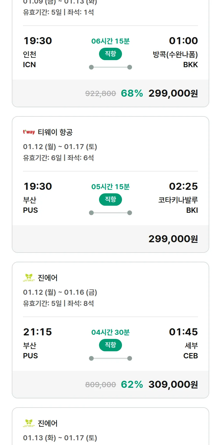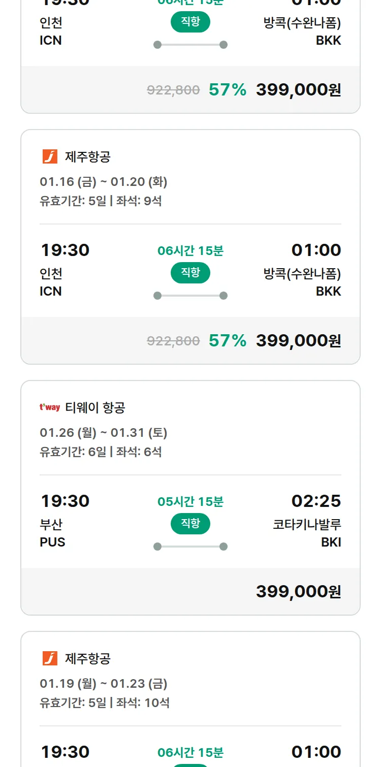(12월 28일(일)) 모두투어 동남아 특가 항공권