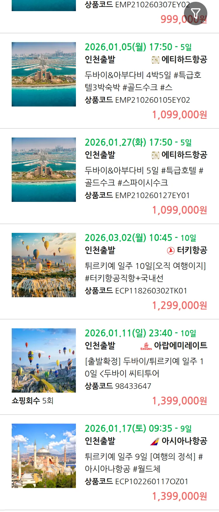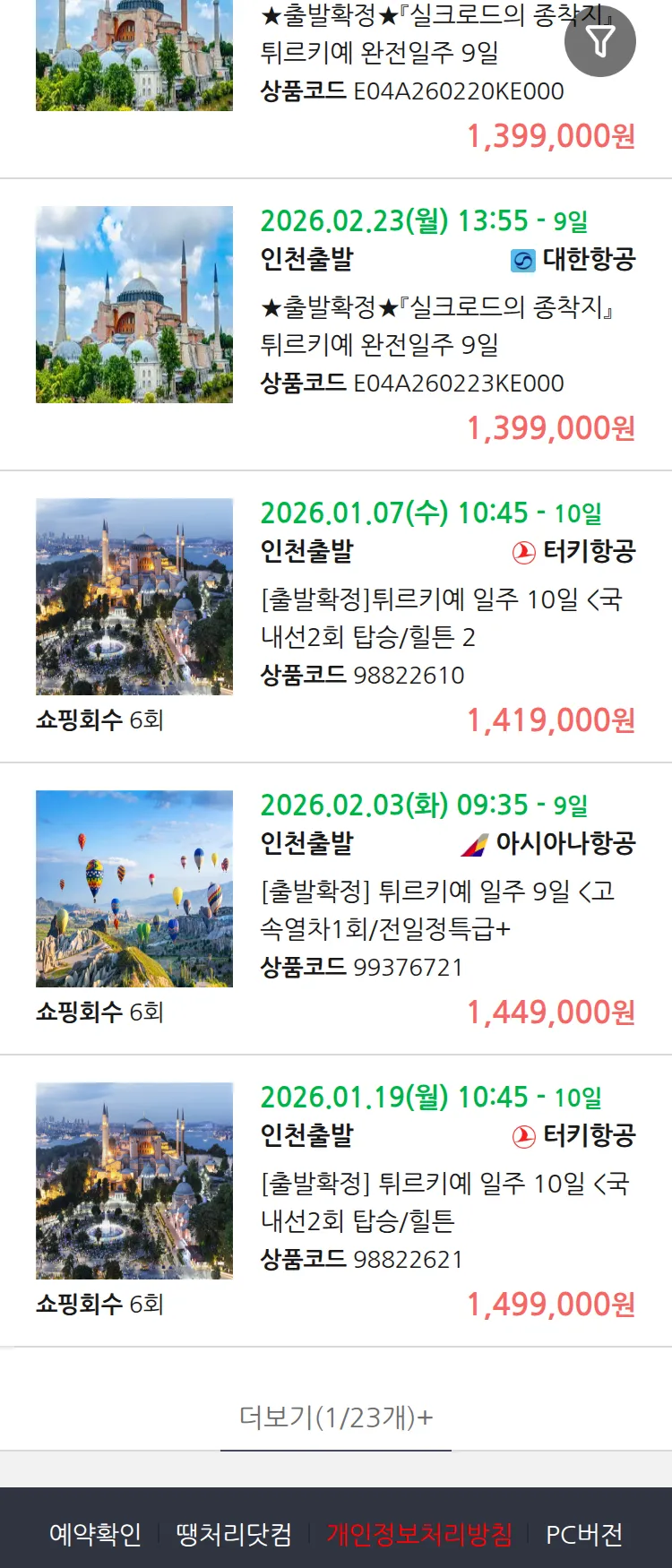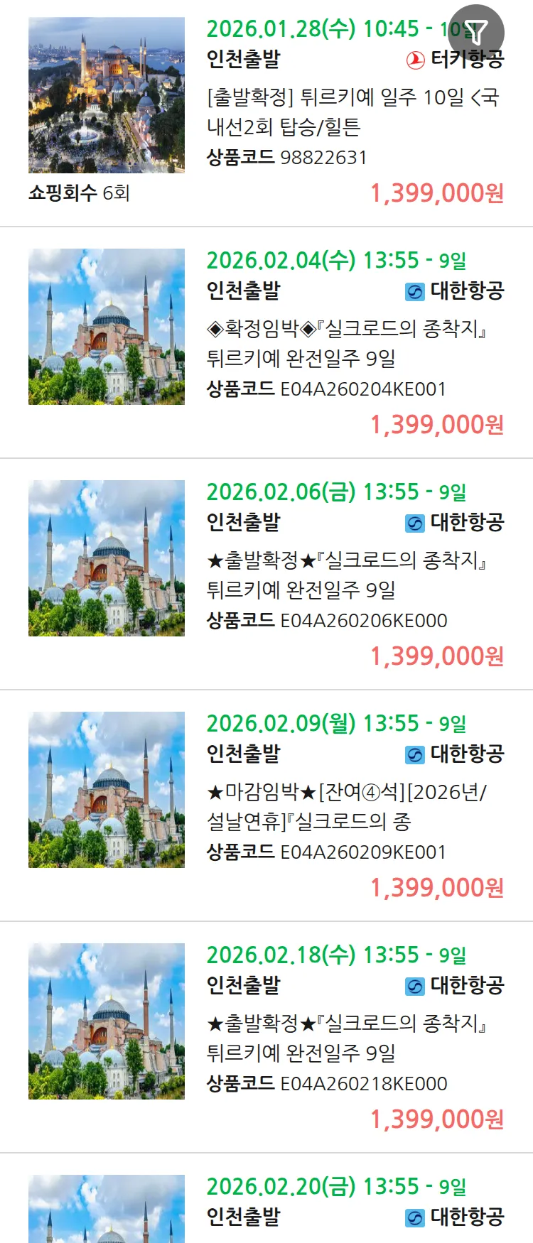 (12월 30일(화)) 땡처리 99.9% 확정 패키지