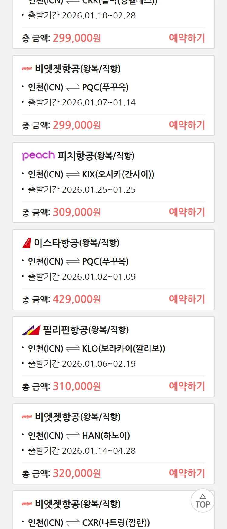 (12월 30일(화)) 땡처리 99.9% 확정 패키지