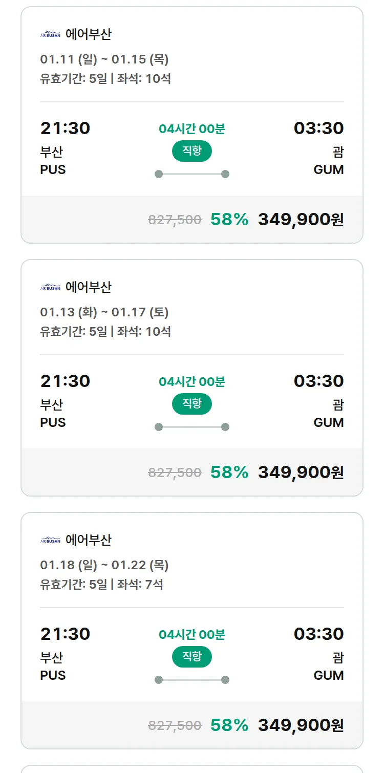 (12월 30일(화)) 땡처리 특가 항공권