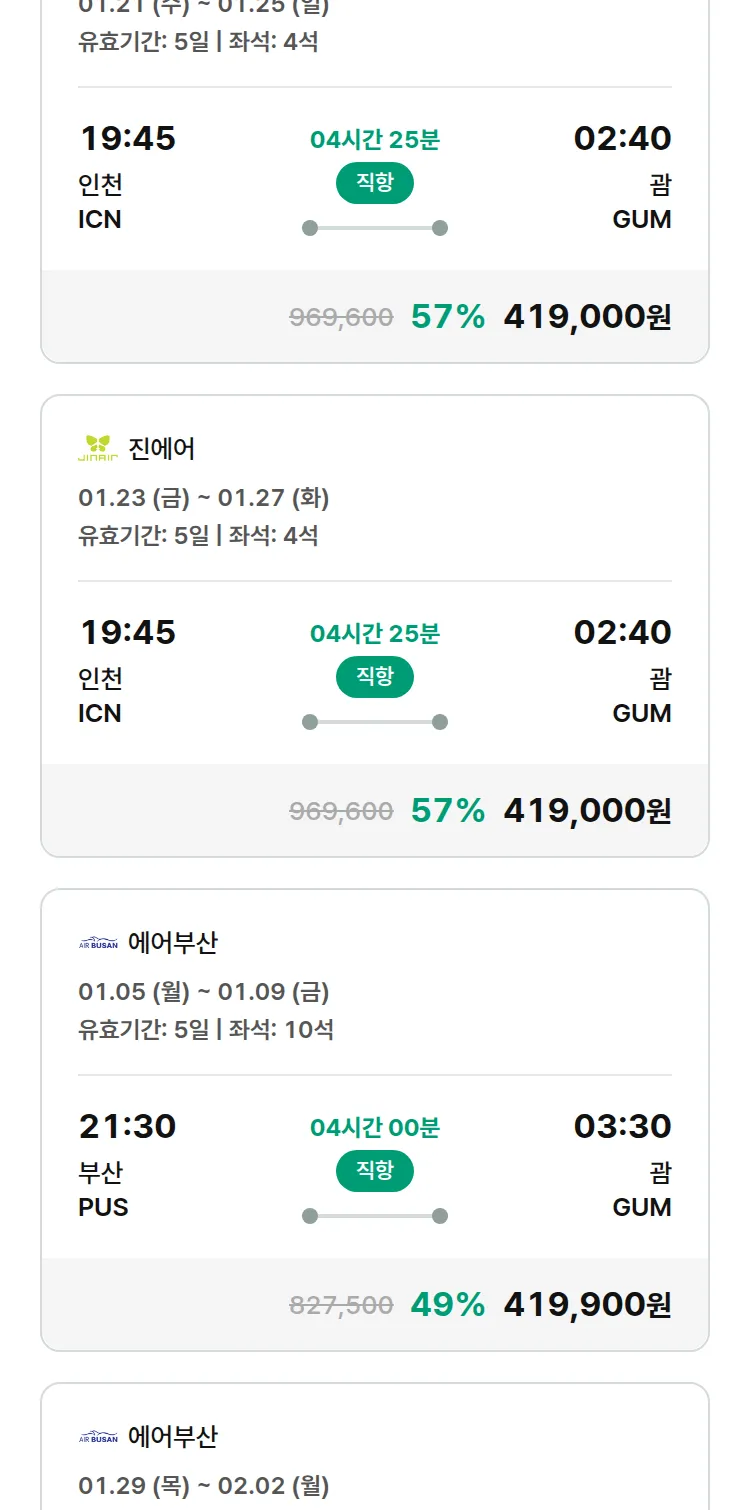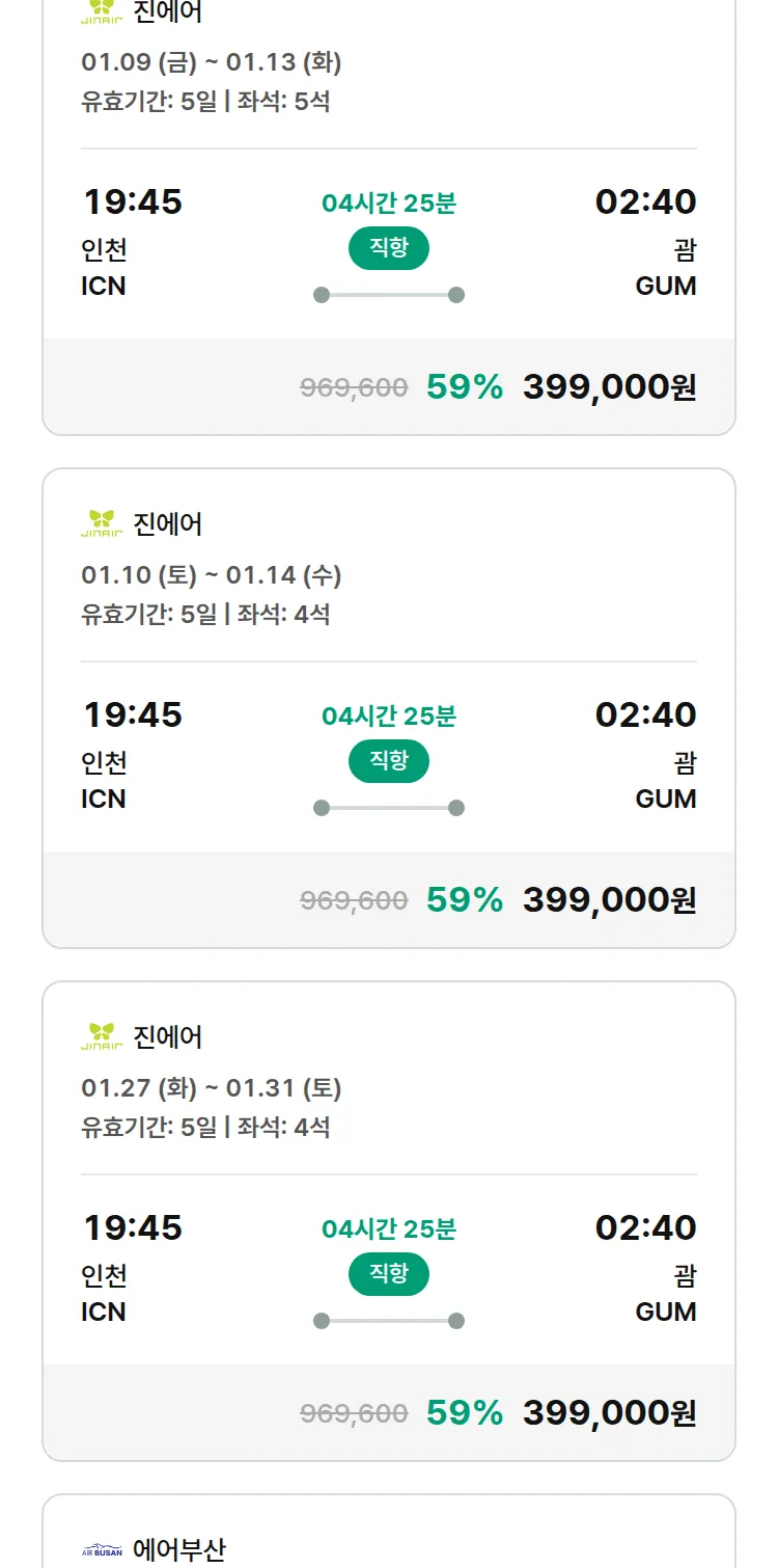 (12월 29일(월)) 땡처리 특가 항공권