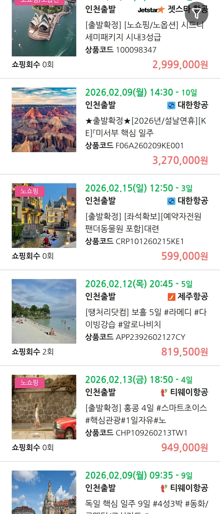 (12월 31일(수)) 땡처리 99.9% 확정 패키지