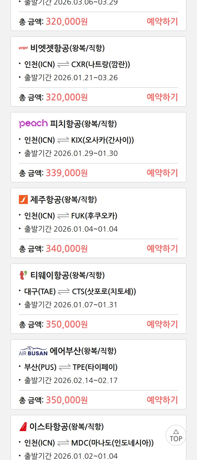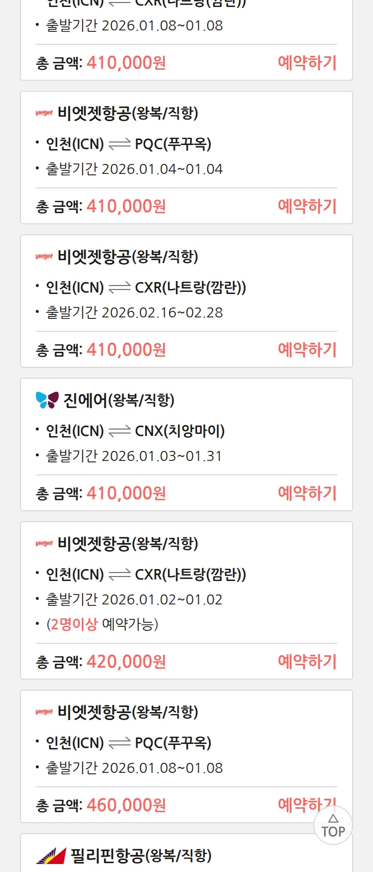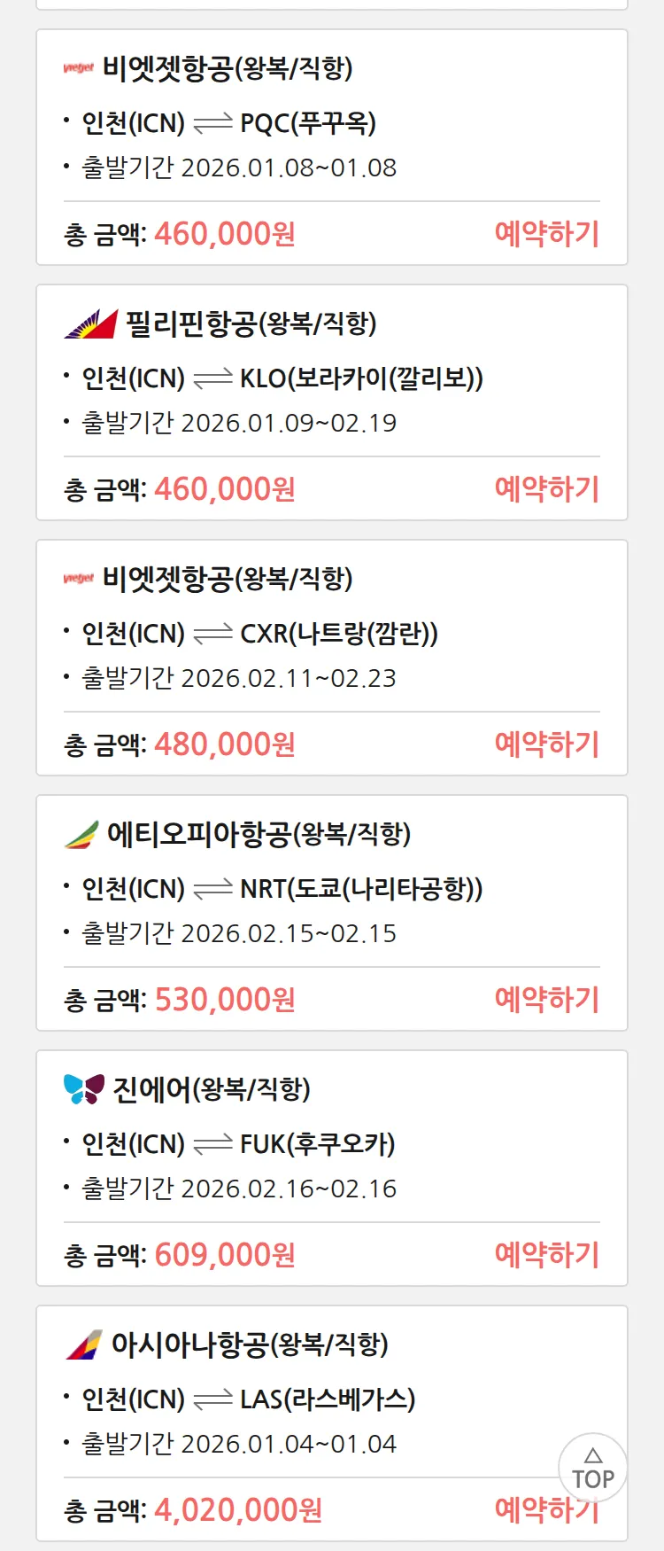 (12월 31일(수)) 모두투어 동남아 특가 항공권