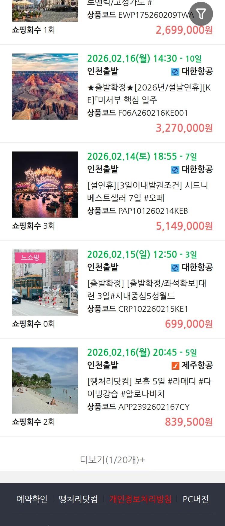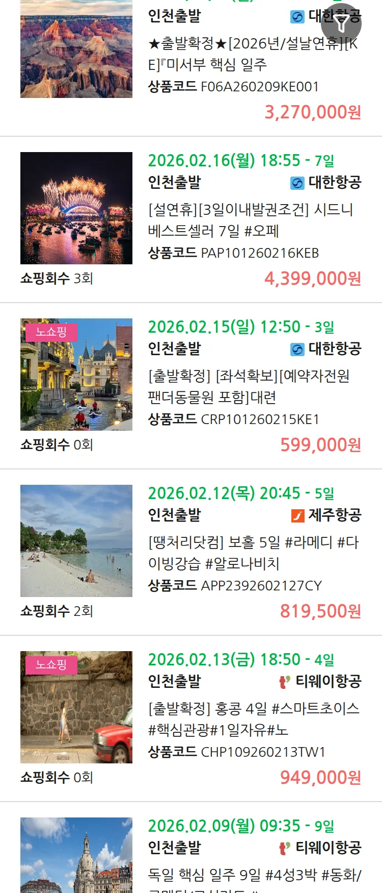 (12월 30일(화)) 땡처리 연휴 패키지 패키지