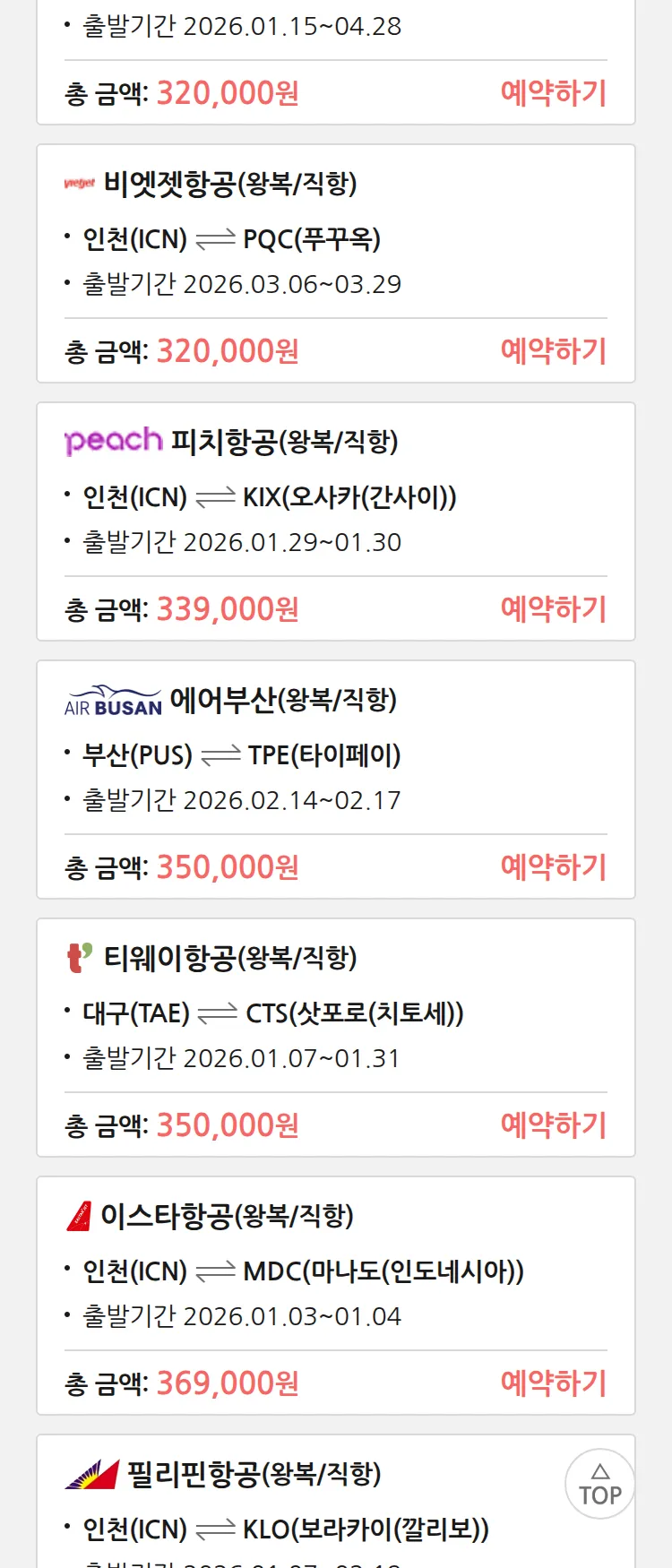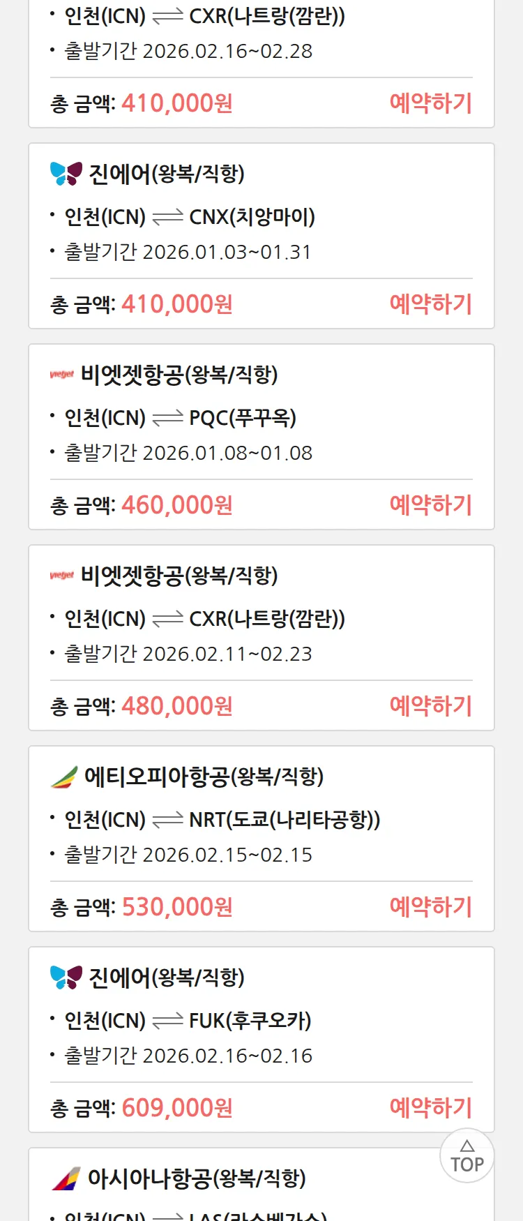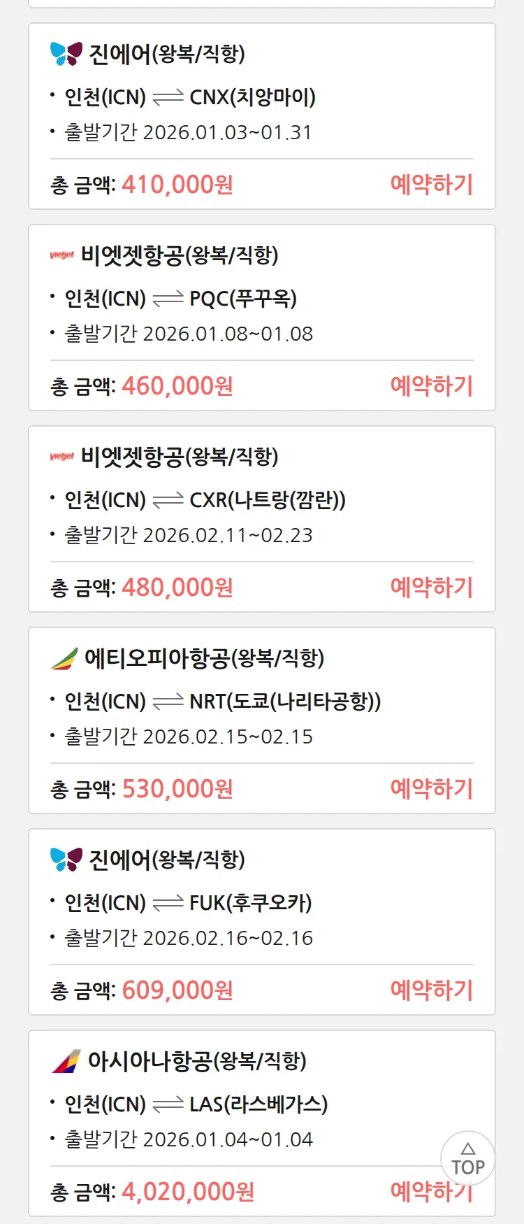 (12월 31일(수)) 모두투어 동남아 특가 항공권