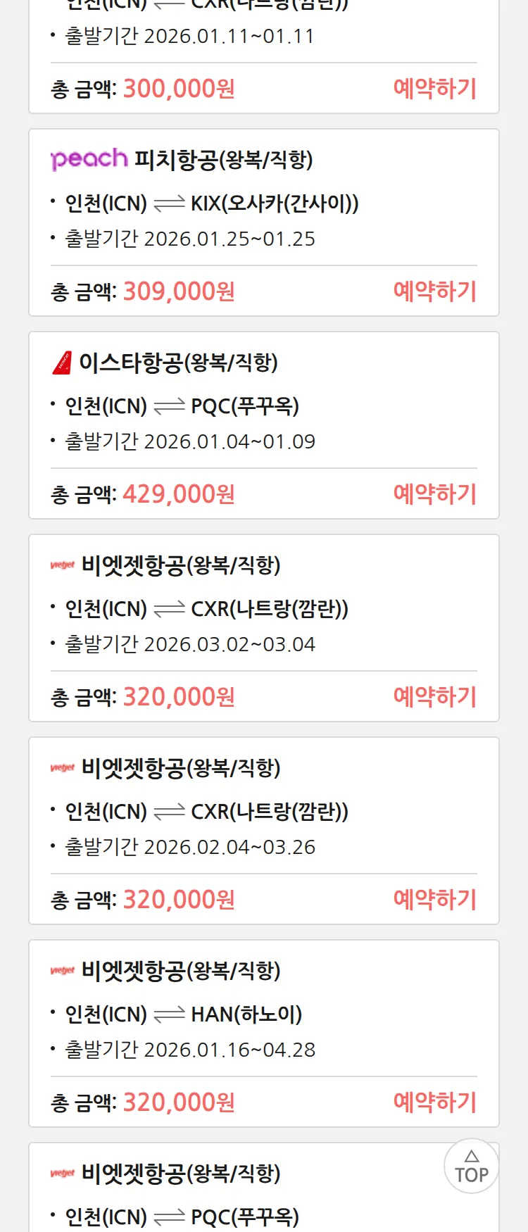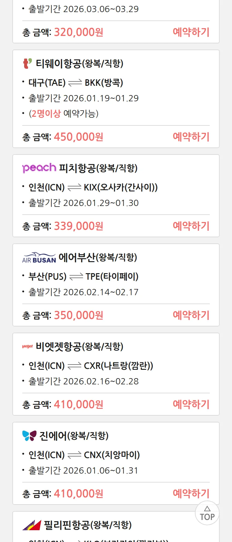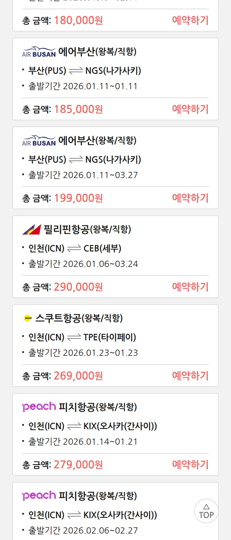 (12월 30일(화)) 땡처리 특가 항공권