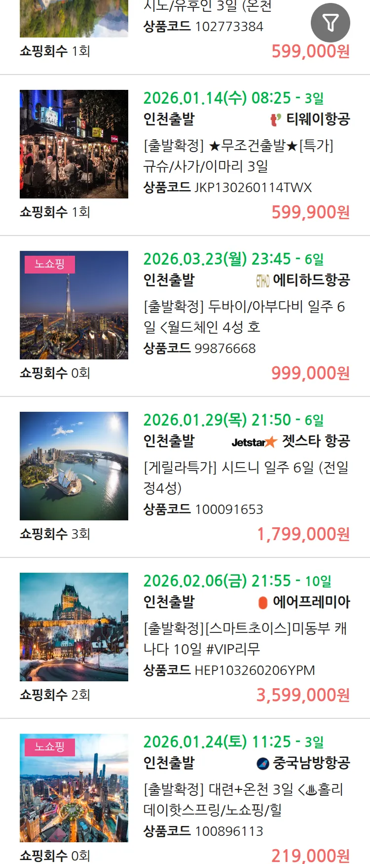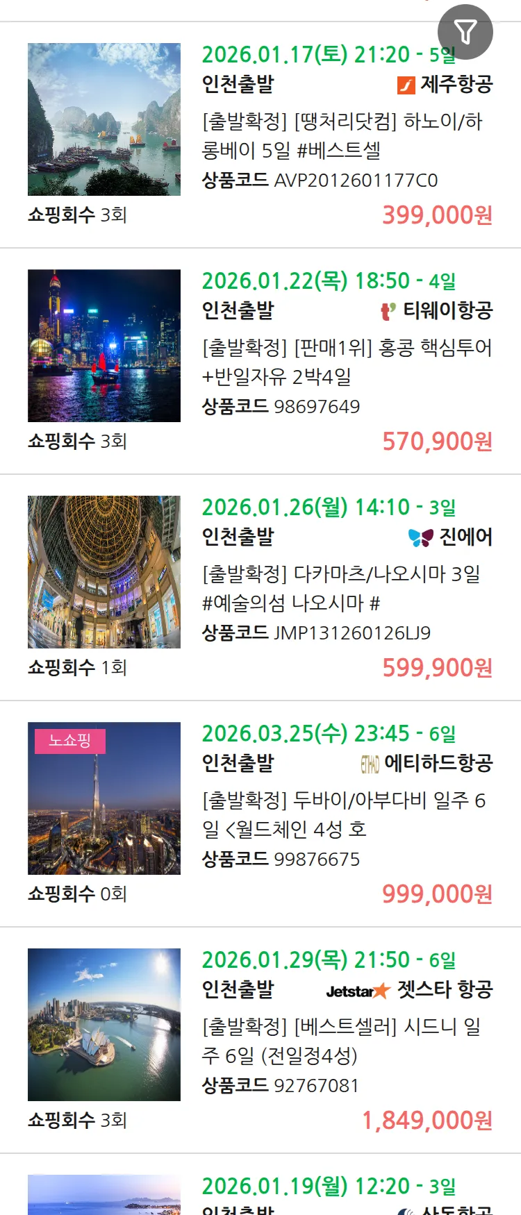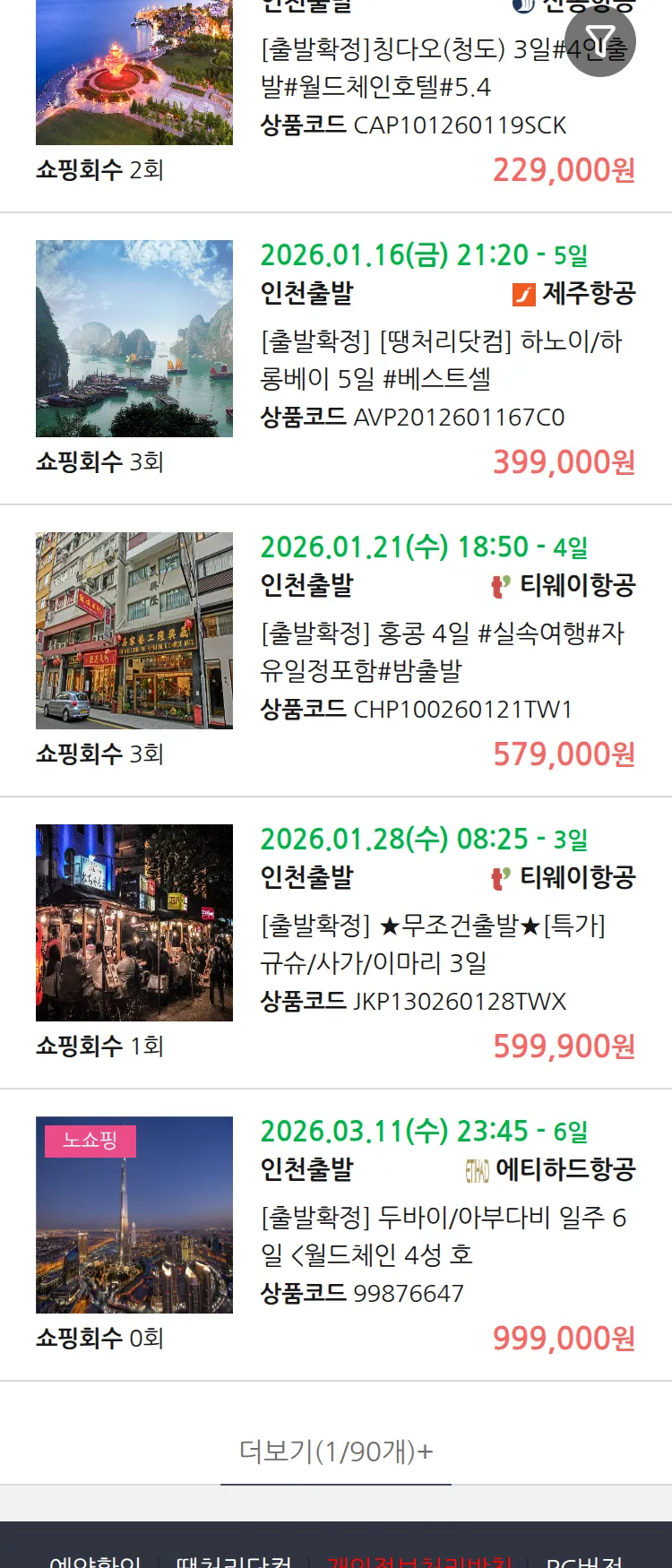 (12월 31일(수)) 땡처리 99.9% 확정 패키지