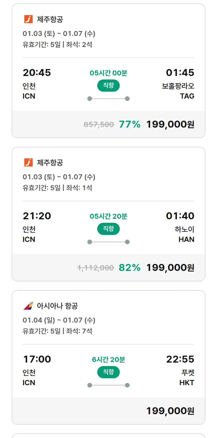 (12월 31일(수)) 모두투어 동남아 특가 항공권