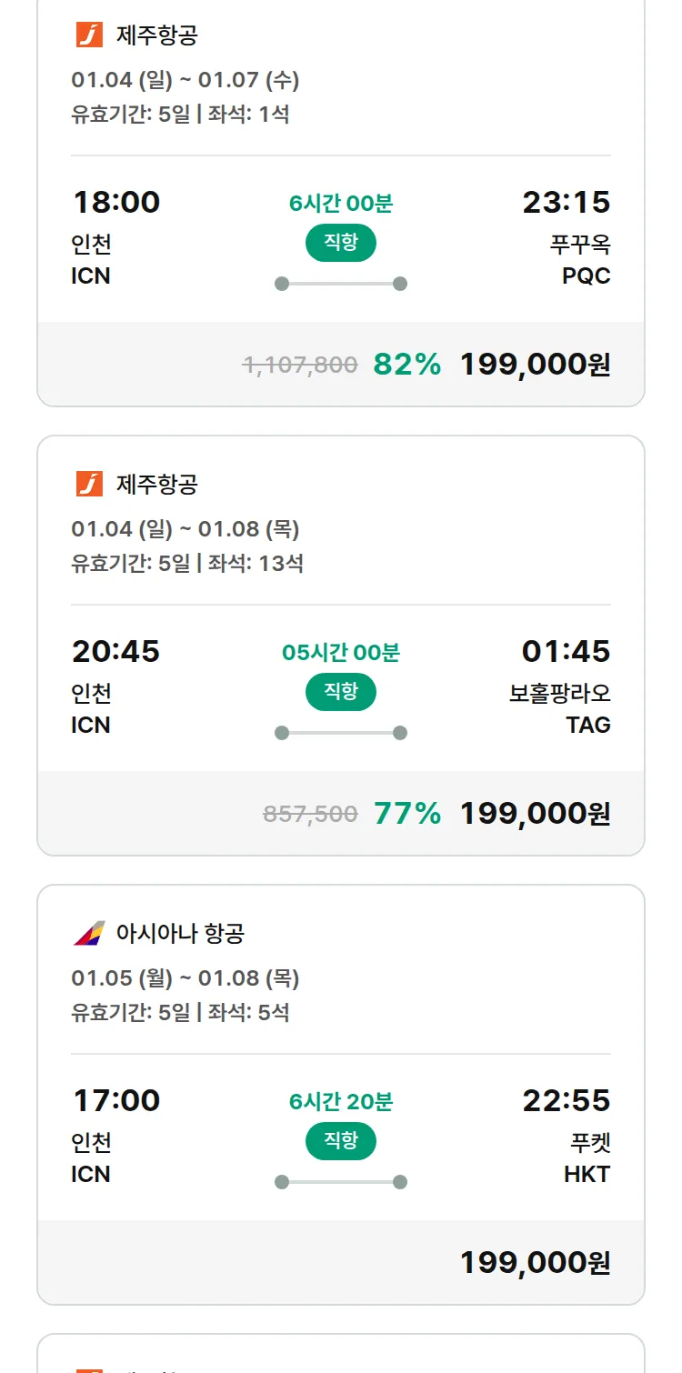 (12월 31일(수)) 땡처리 99.9% 확정 패키지