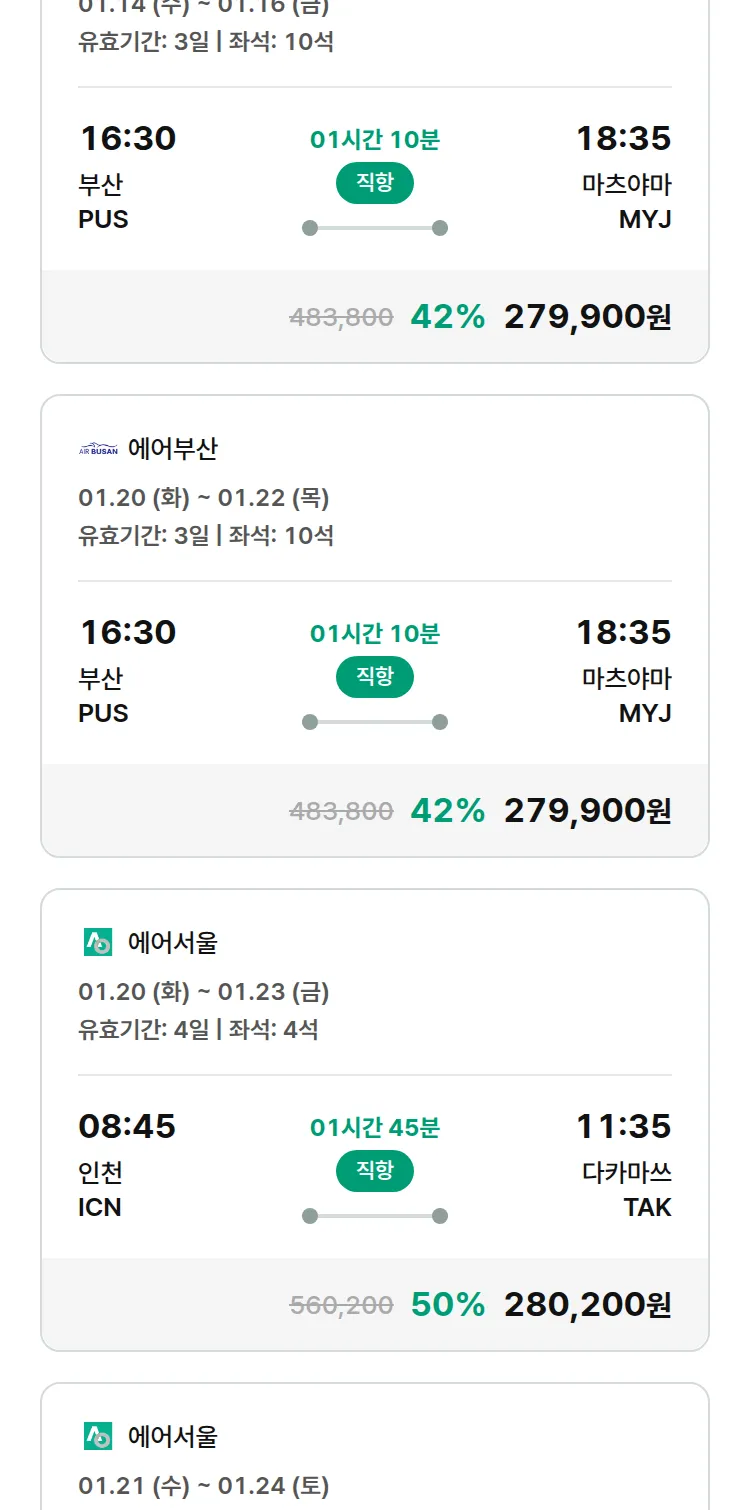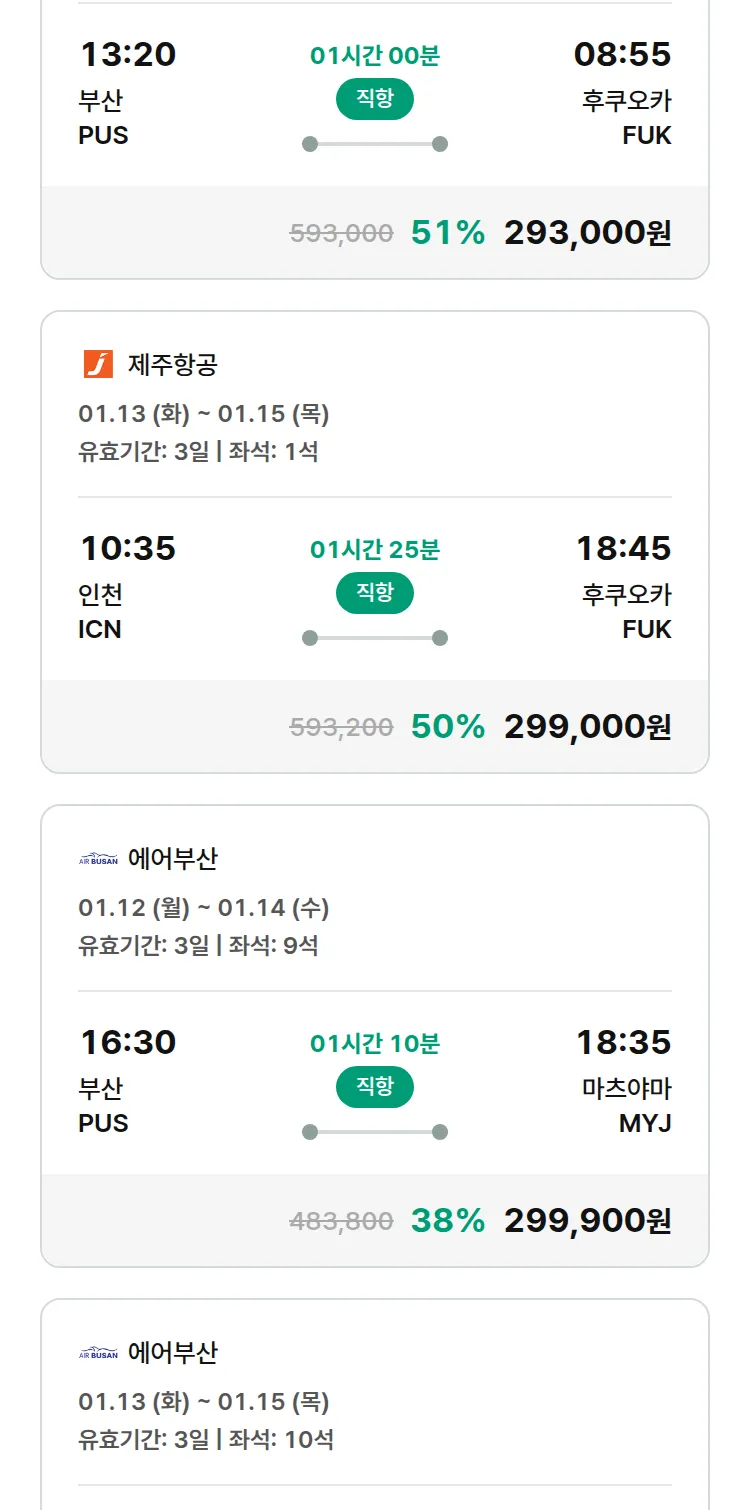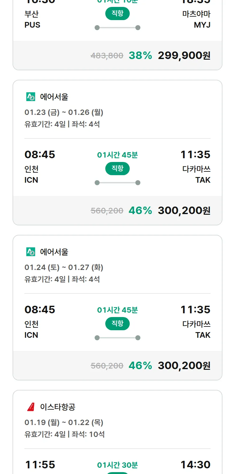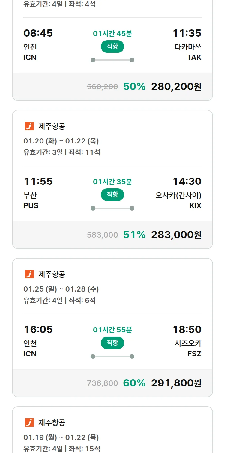 (12월 30일(화)) 땡처리 특가 항공권