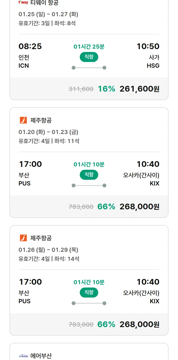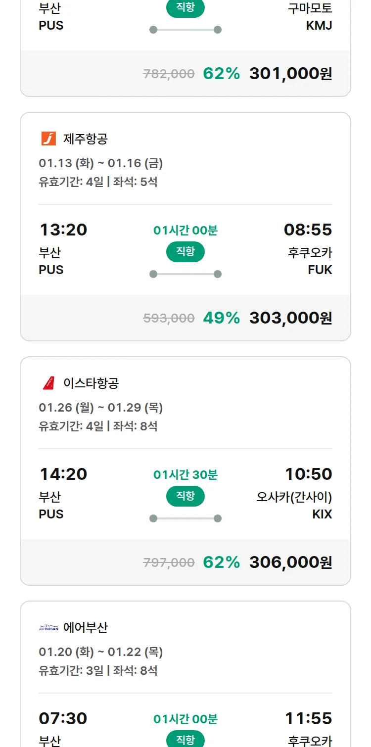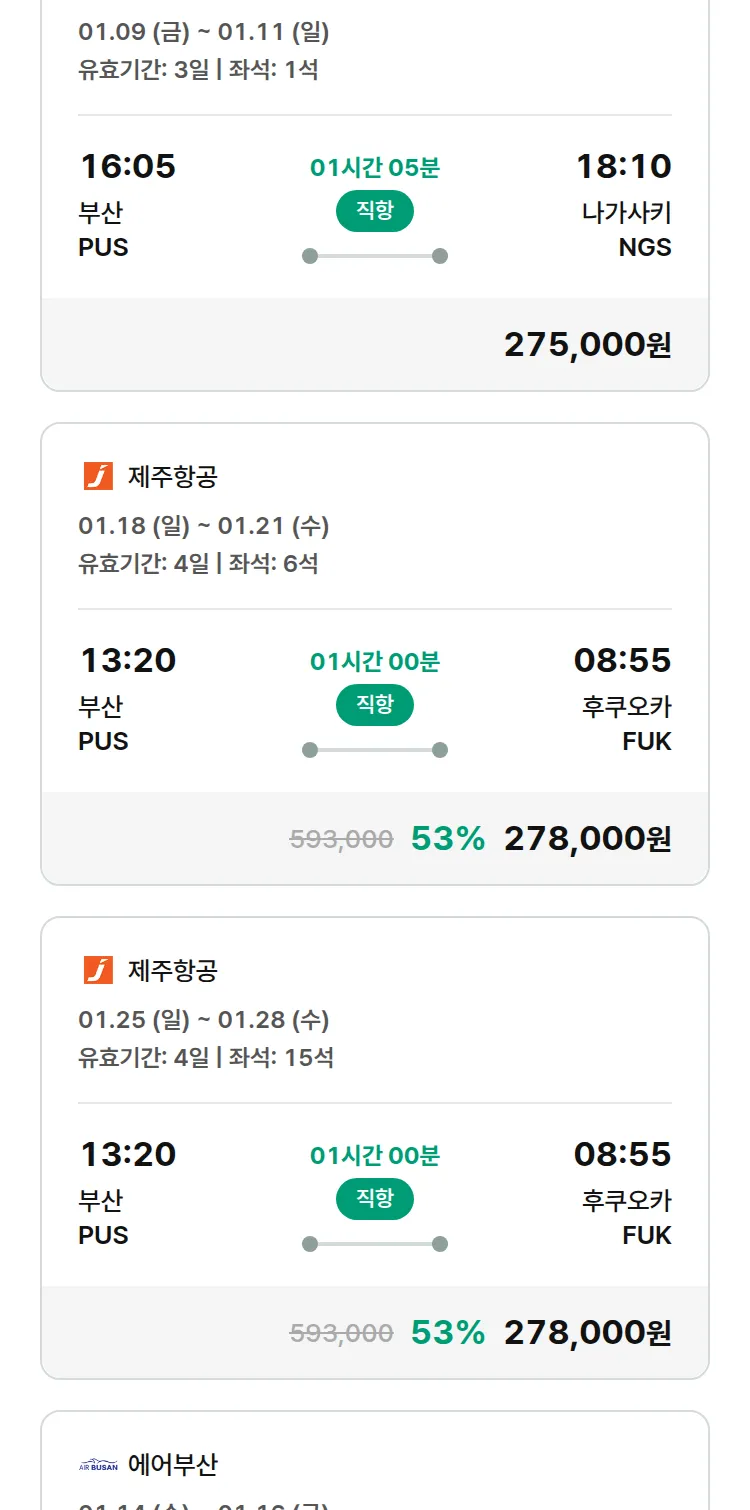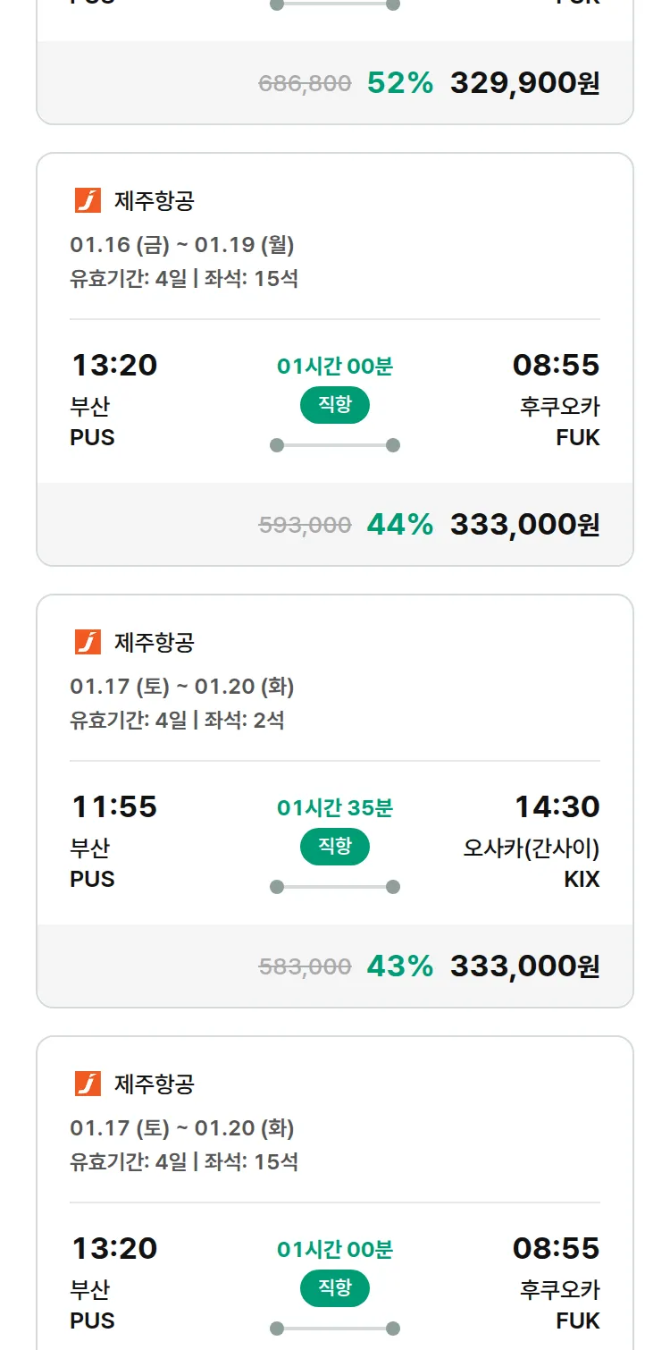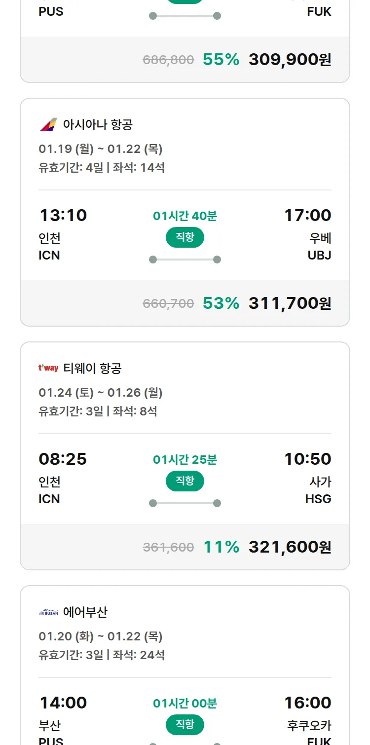 (12월 30일(화)) 땡처리 특가 항공권