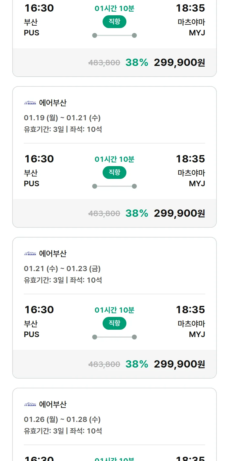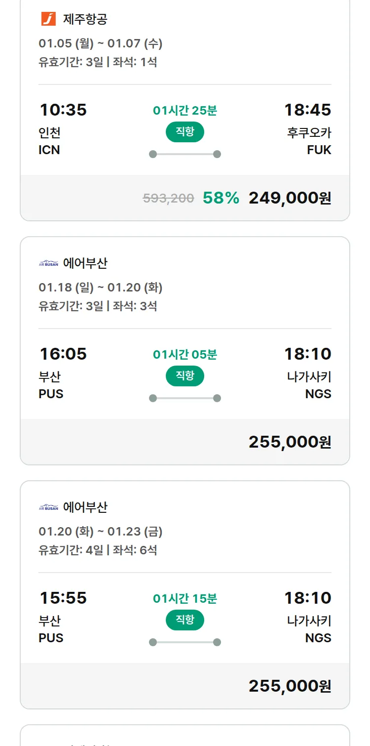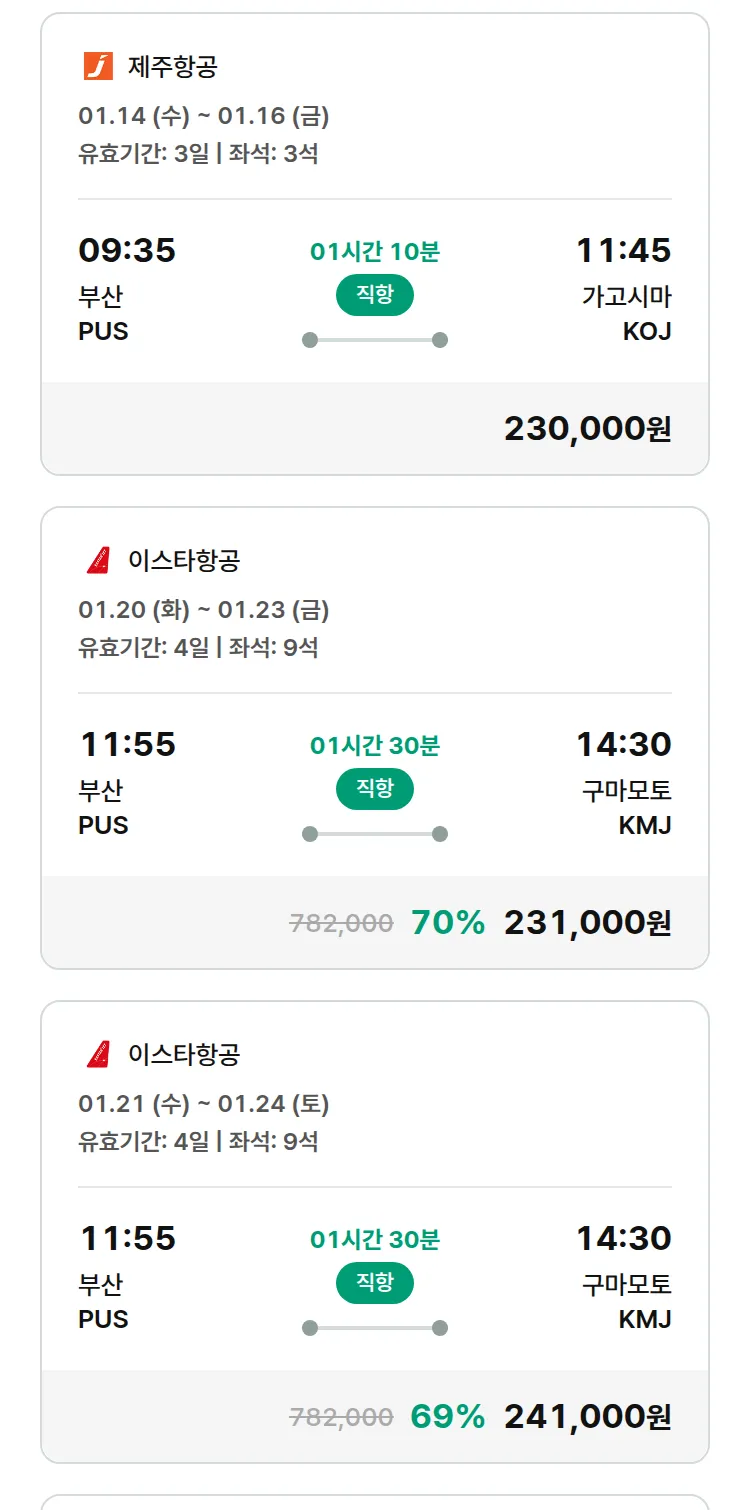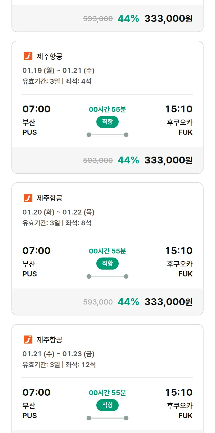 (12월 30일(화)) 땡처리 특가 항공권