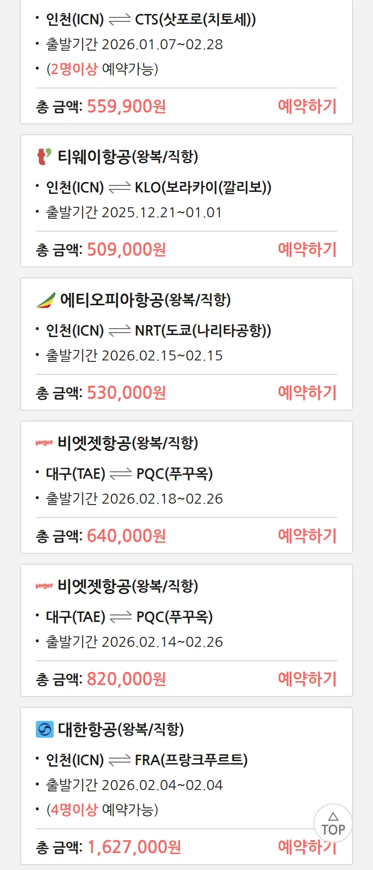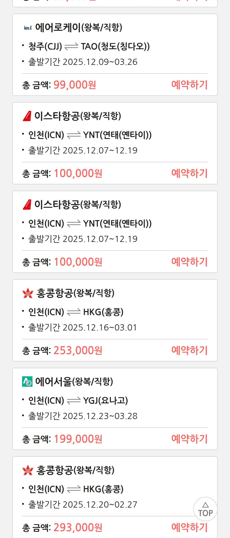 (12월2일(화)) 땡처리 99.9% 확정 패키지
